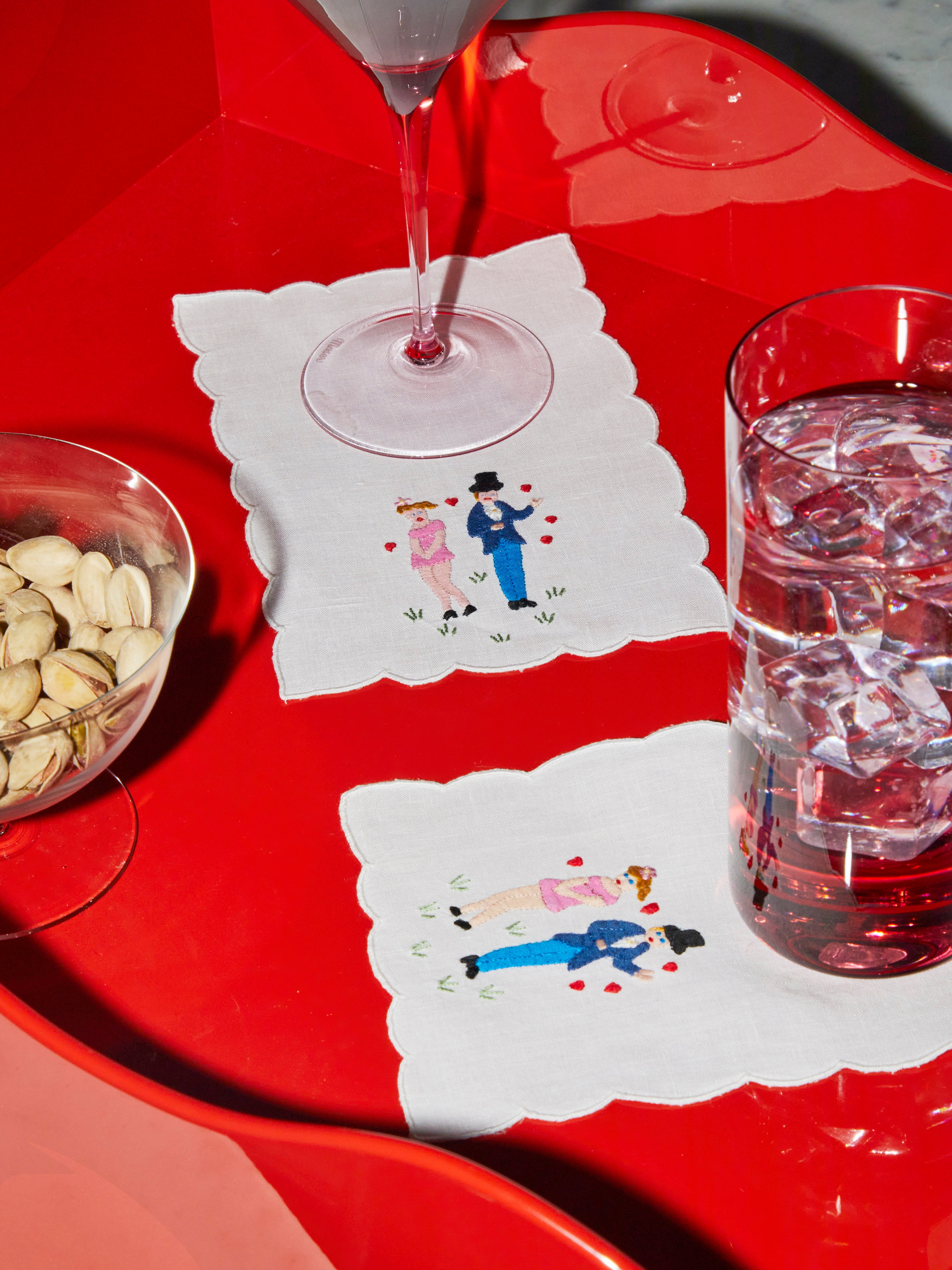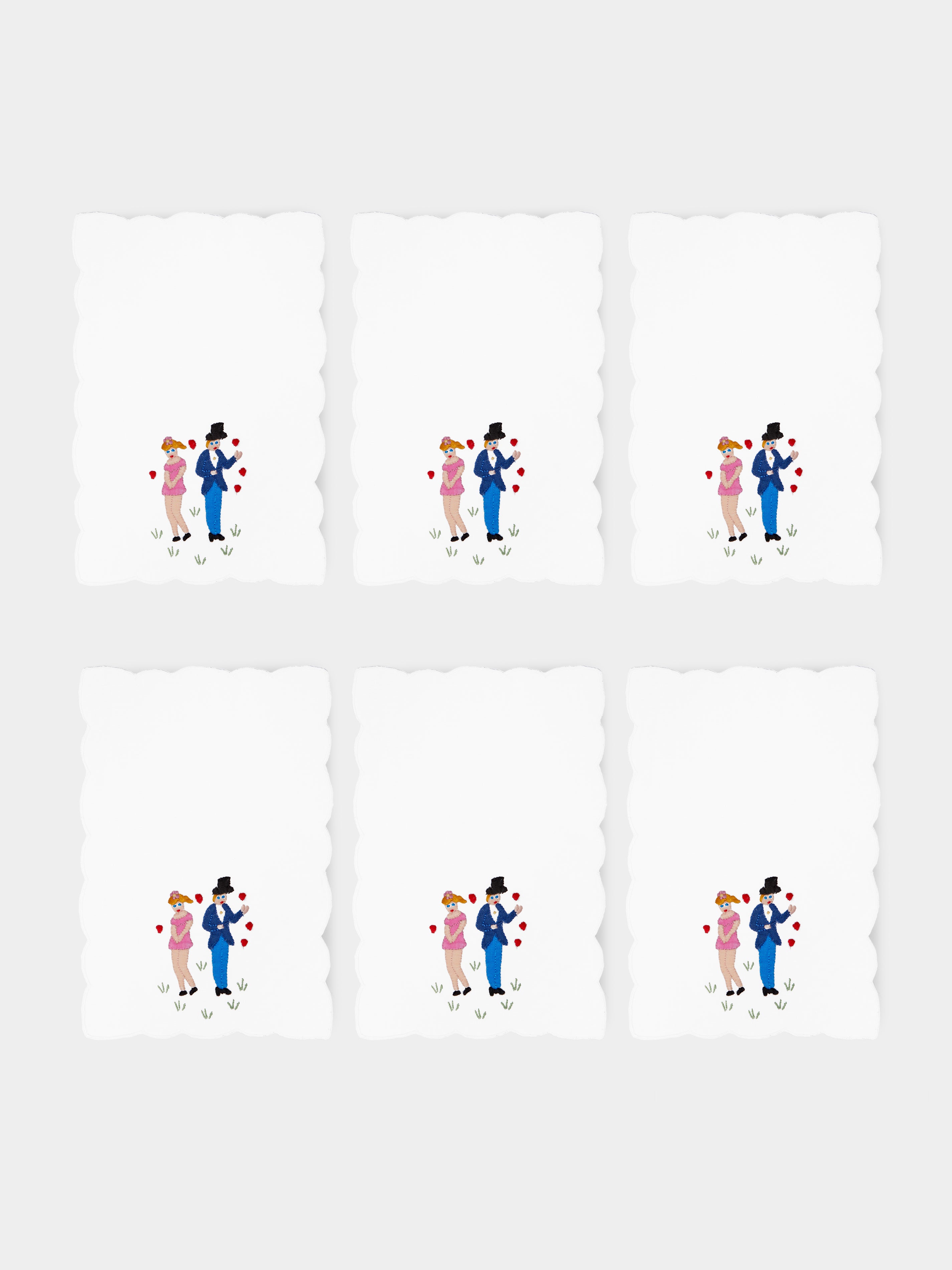 Taf Firenze Lovers Hand-Embroidered Cocktail Napkins (Set of 6)