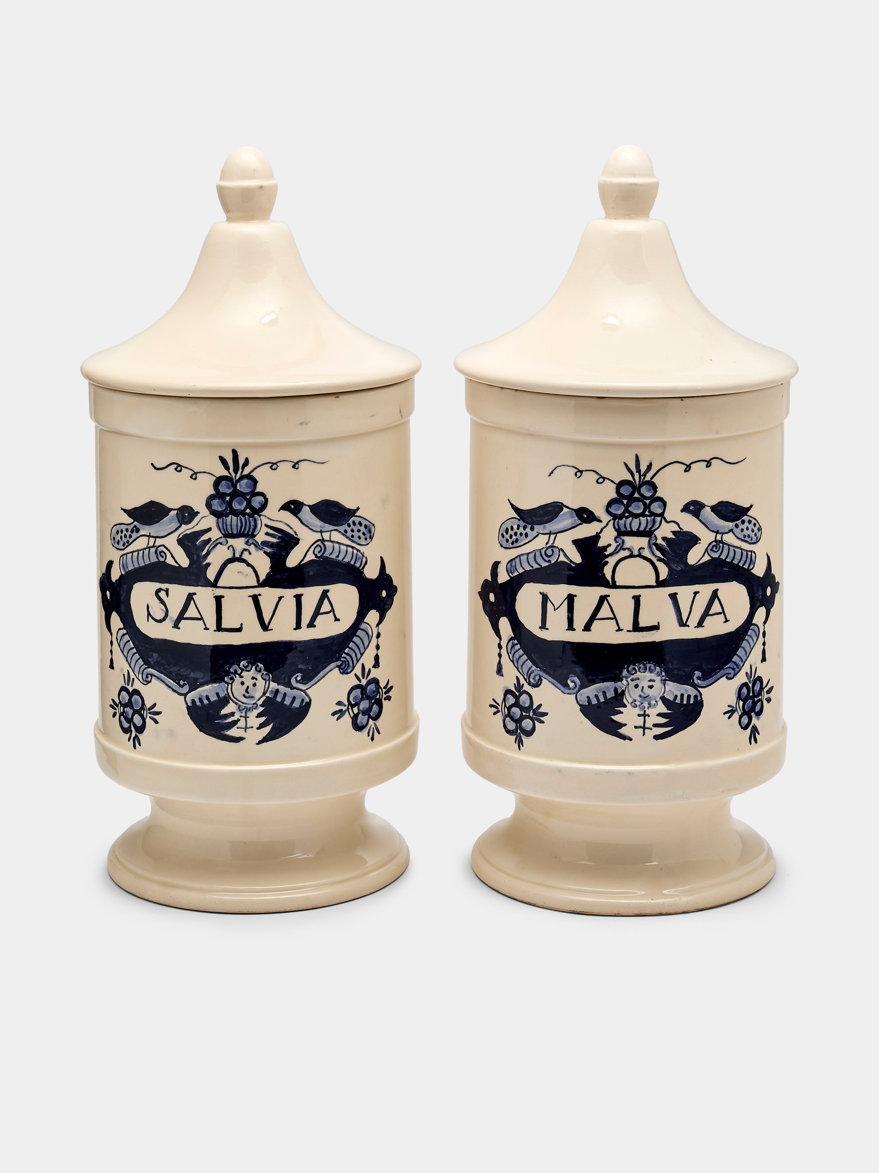 Antique and Vintage 1940s Italian Ceramic Apothecary Jars (Set of 2)