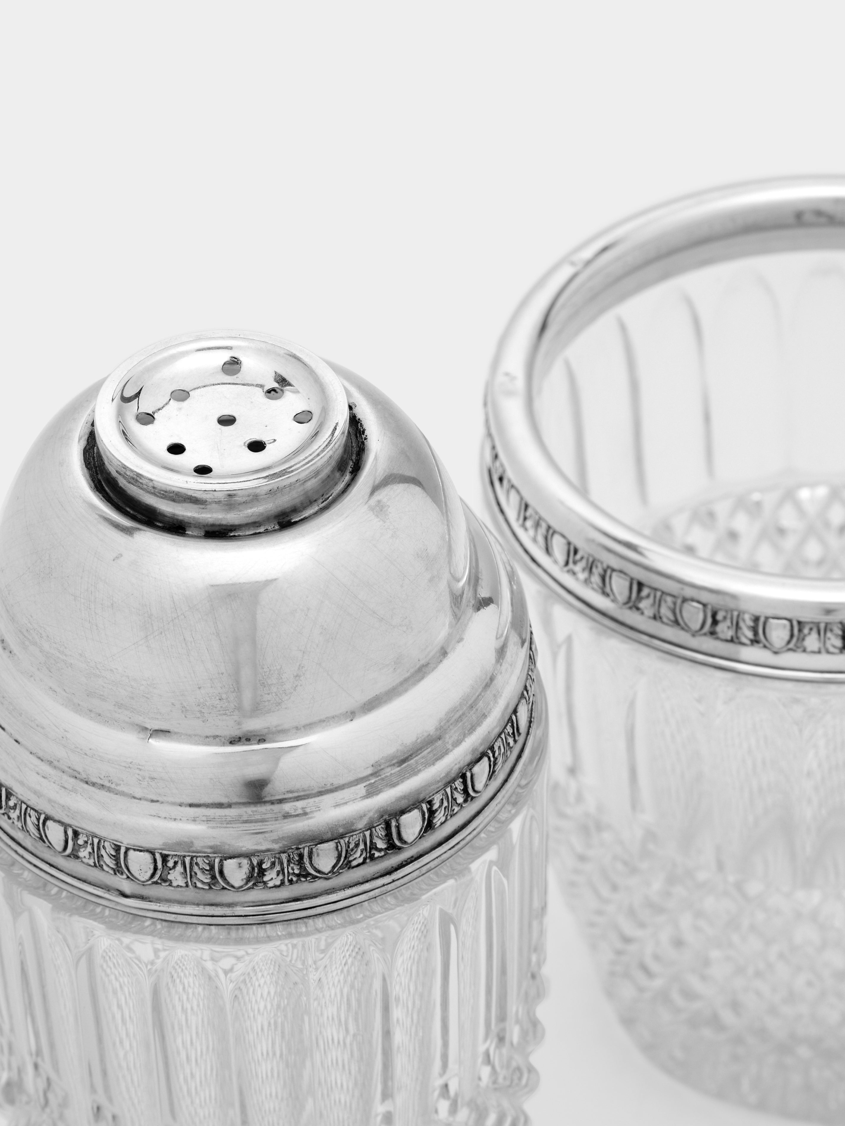Antique and Vintage 1930s Solid Silver and Crystal Cocktail Shaker and Ice Bucket Set