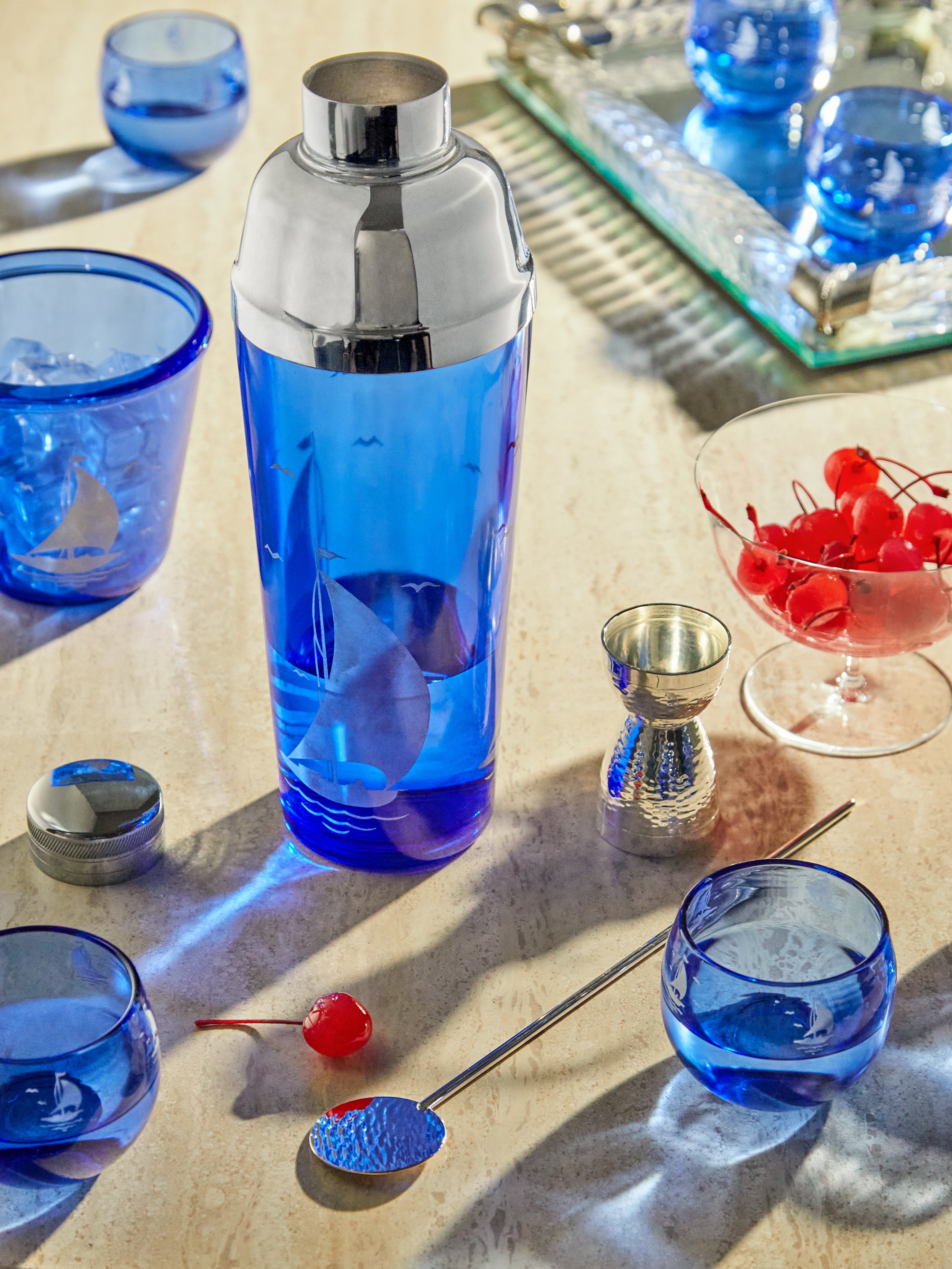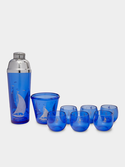Antique and Vintage 1930s Sportsman Series Sailboat Cocktail Set