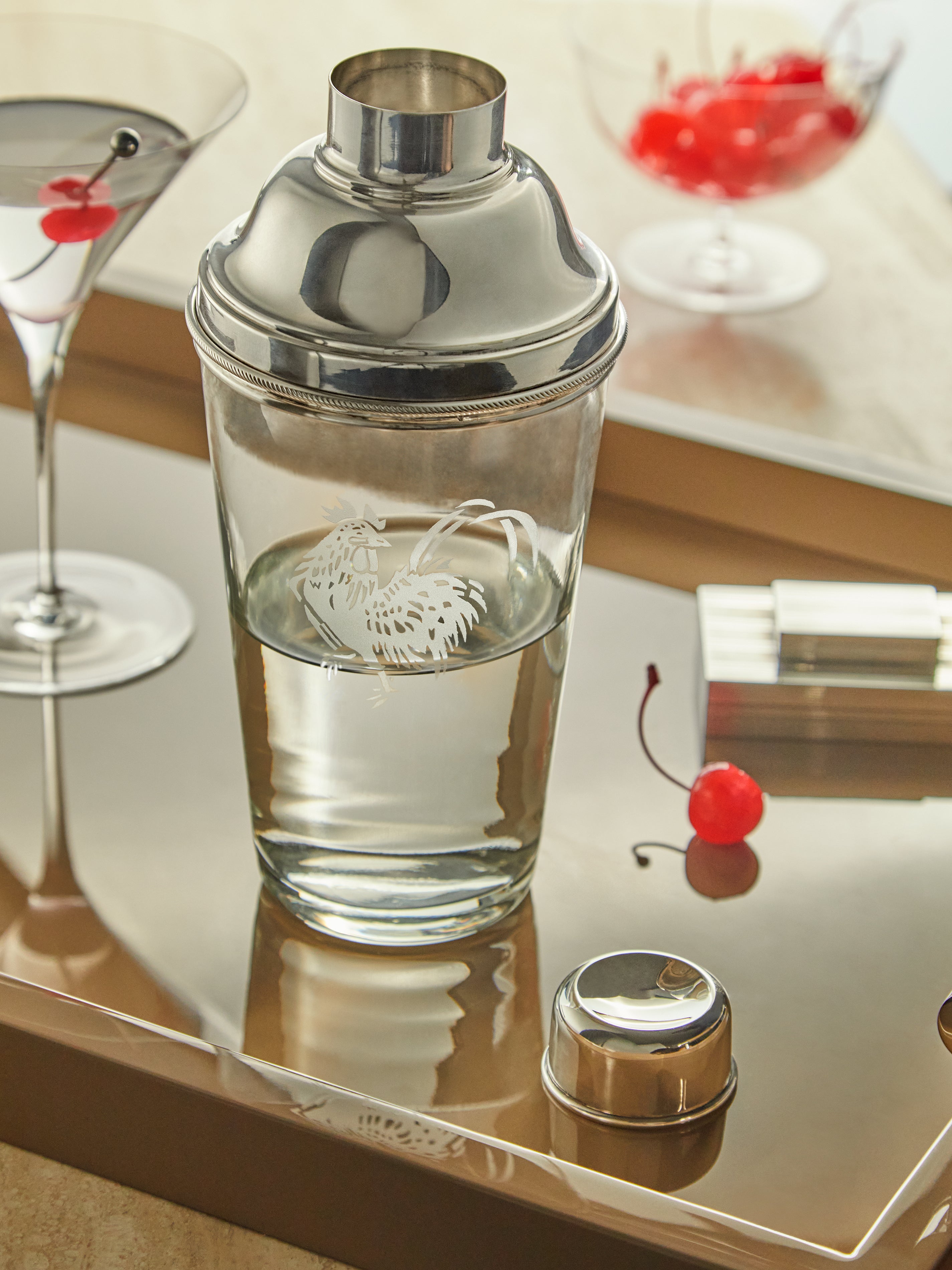 Antique and Vintage 1940s James Dixon & Sons English Cocktail Shaker with Cockerel