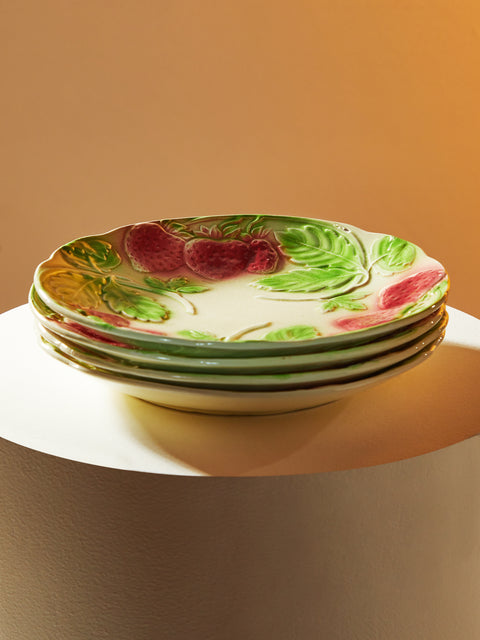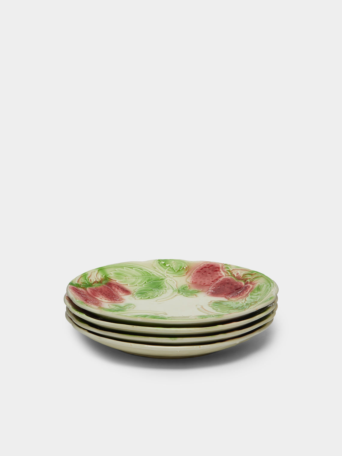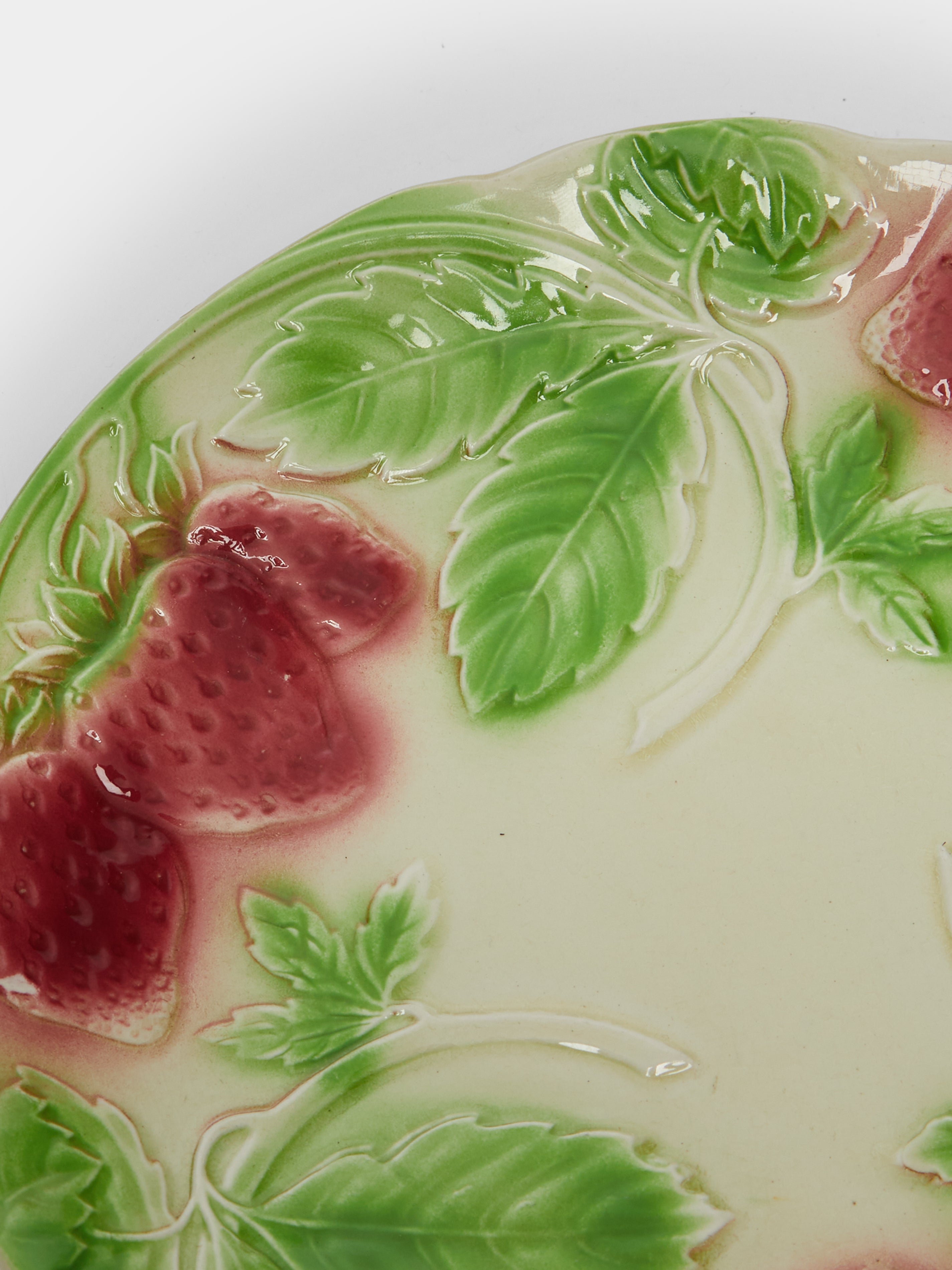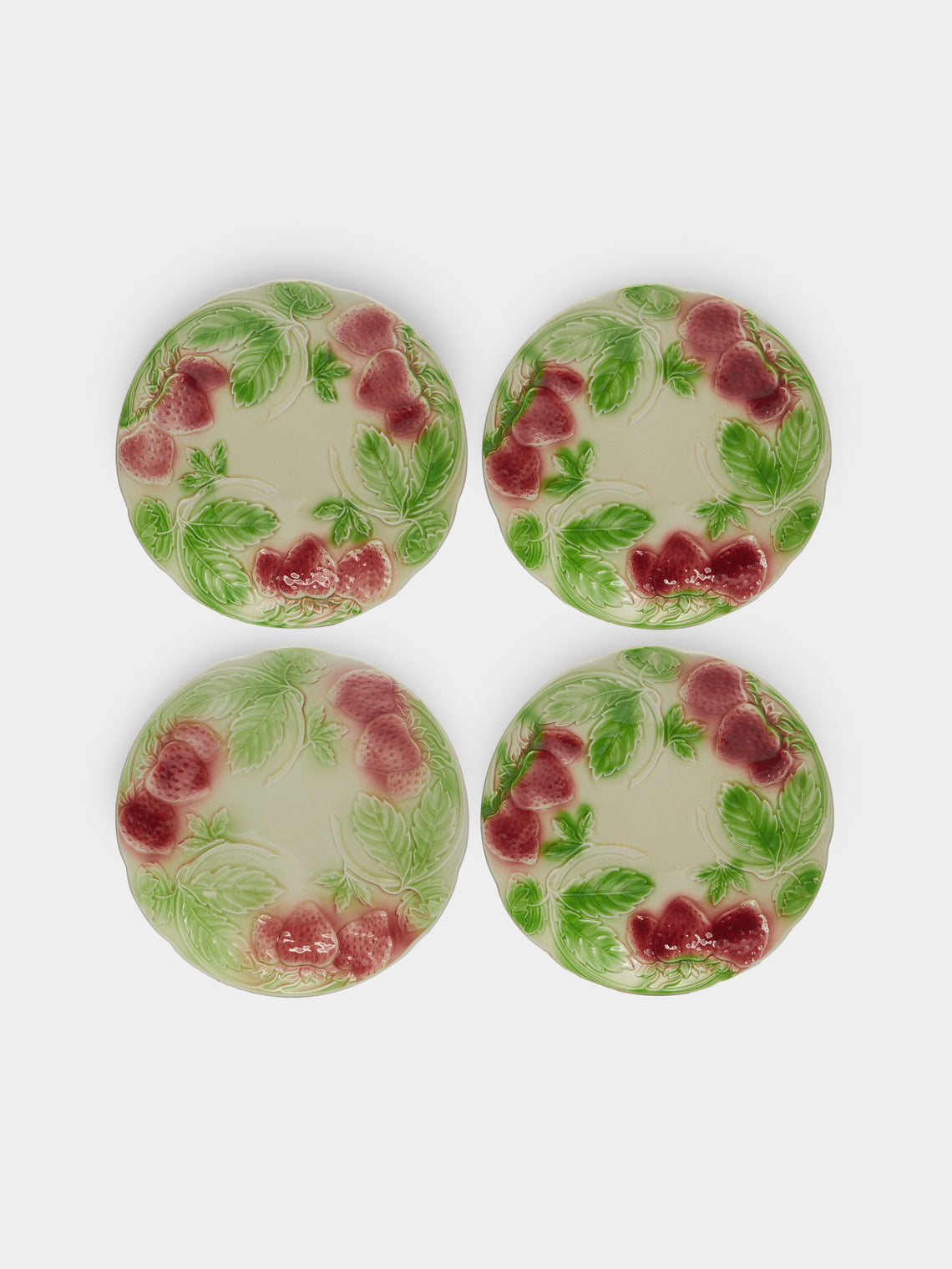Antique and Vintage 1940s Majolica Strawberry Ceramic Plates – 8in/21cm (Set of 4)