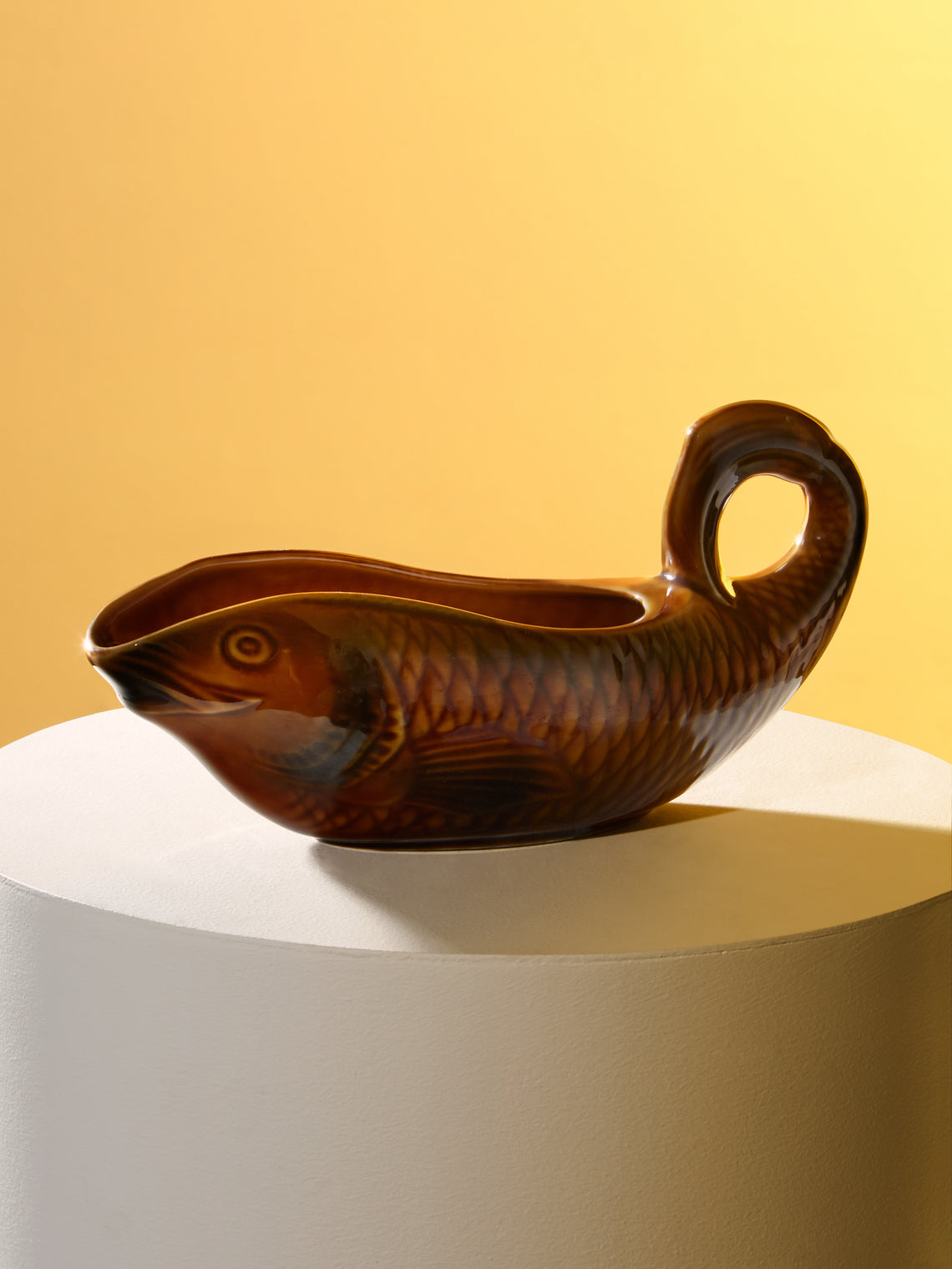 Antique and Vintage 1950s Sarreguemines Fish Ceramic Gravy Boat