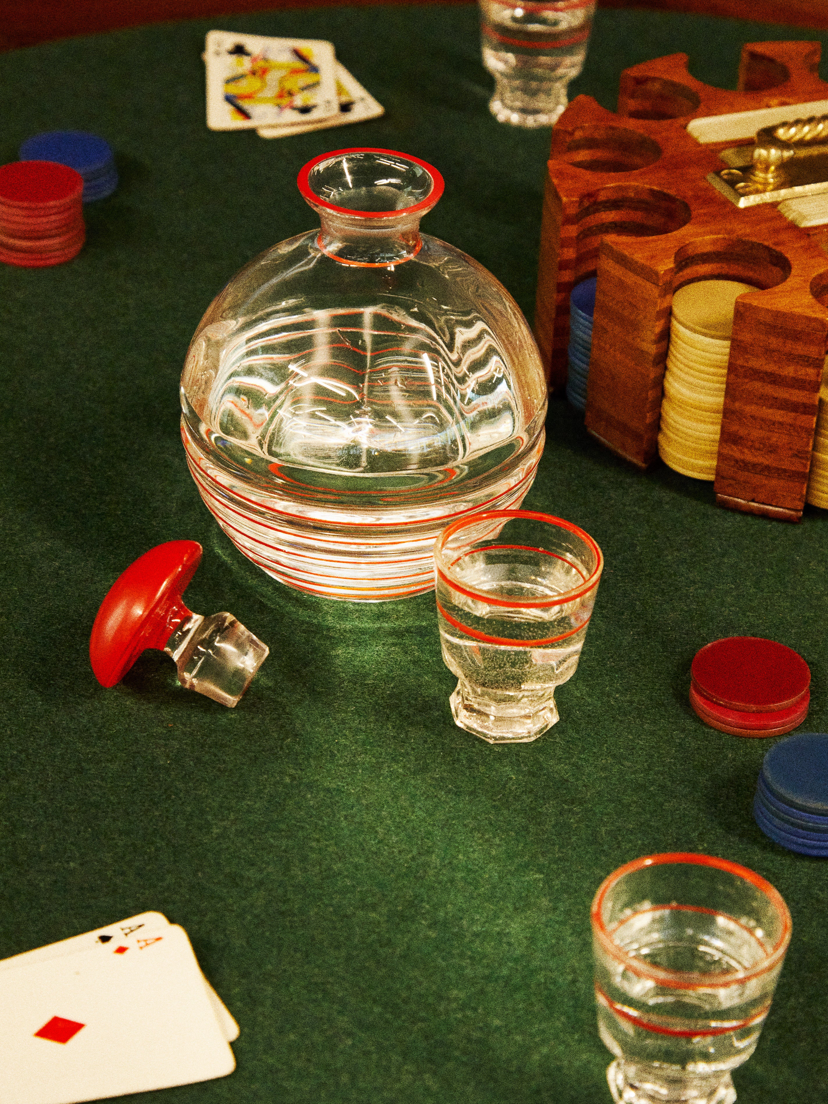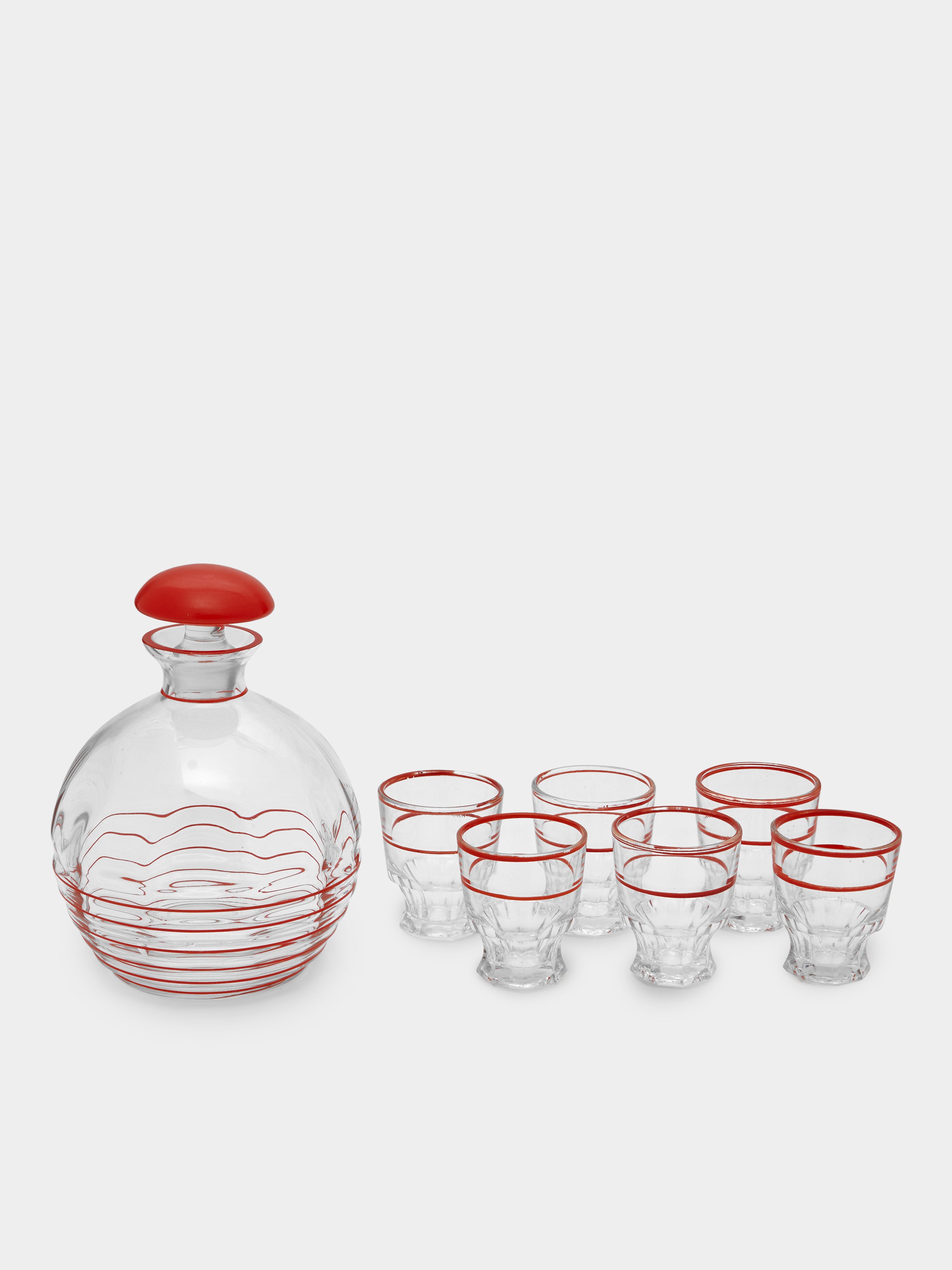 Antique and Vintage 1950s French Enamel Decanter and Tumblers (Set of 6)
