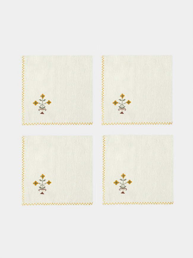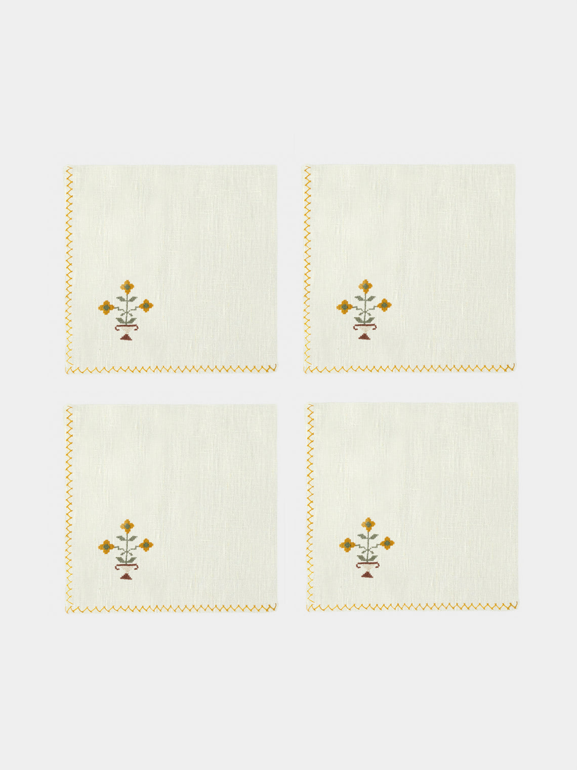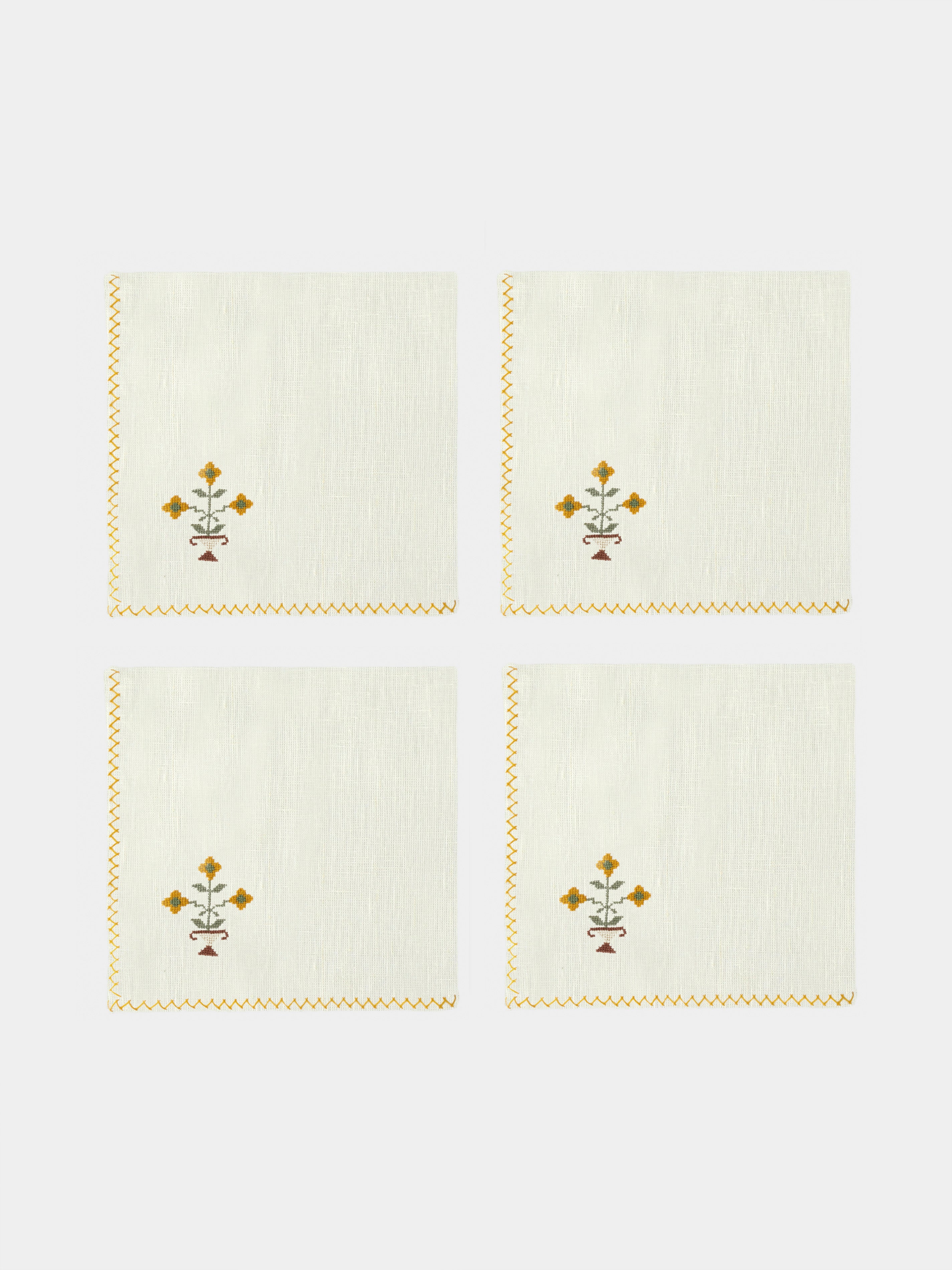 Goya Gallagher founded Anūt Cairo to emphasize the cultural heritage of Egypt, which is why every table treat—from ceramics to linen to glassware—is crafted by the hands of specialized artisans across the country. Not only does Anūt champion the maker behind each piece, but it also fosters entrepreneurship through dedicated initiatives, such as a training center, embroidery school, and artist residency scheme, all of which are intended to create sustainable paths and economic independence for underprivileged communities. Designs are testament to the art of creative collaboration and original craftsmanship, detailed with whimsical scenes inspired by Egyptian landscapes.