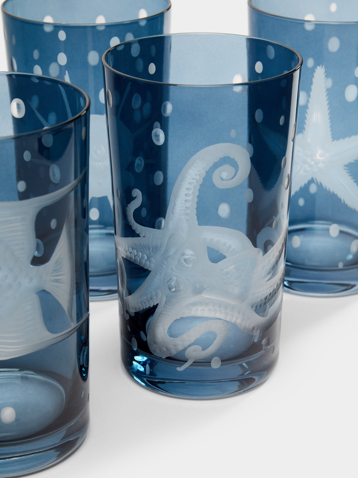 Artel Frutti di Mare Hand-Engraved Crystal Tall Tumblers – 13.5oz/400ml (Set of 6)