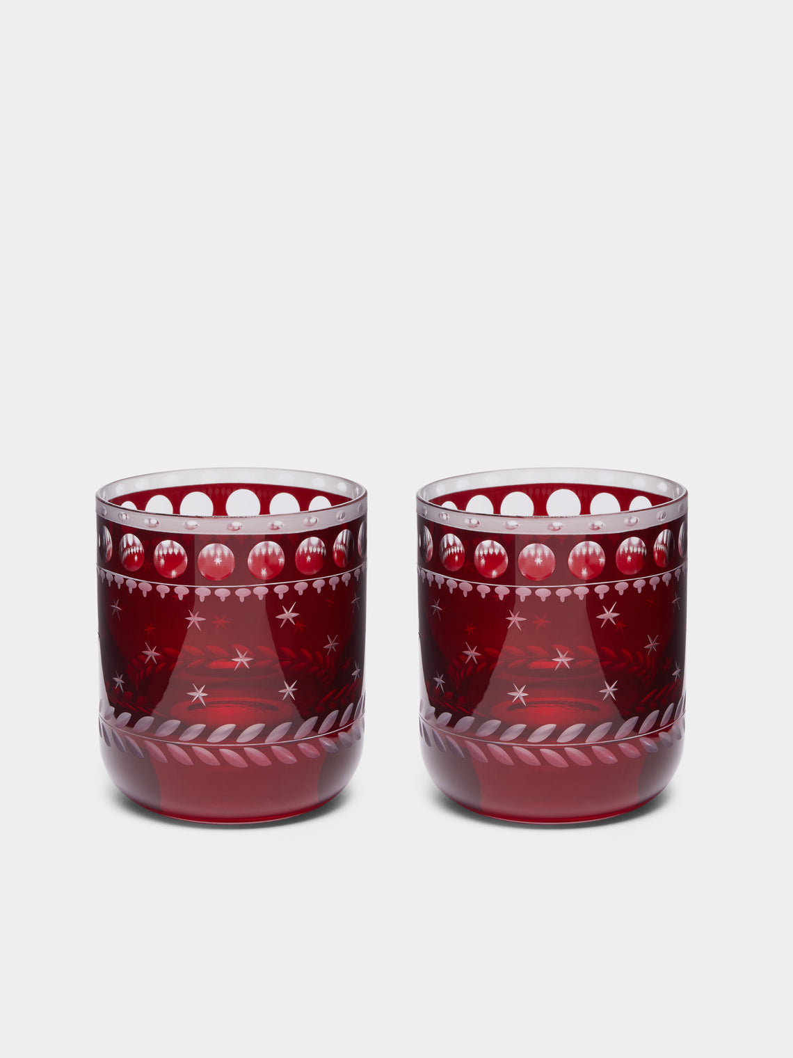 Artel Staro Hand-Engraved Crystal Votive Candle Holders (Set of 2)