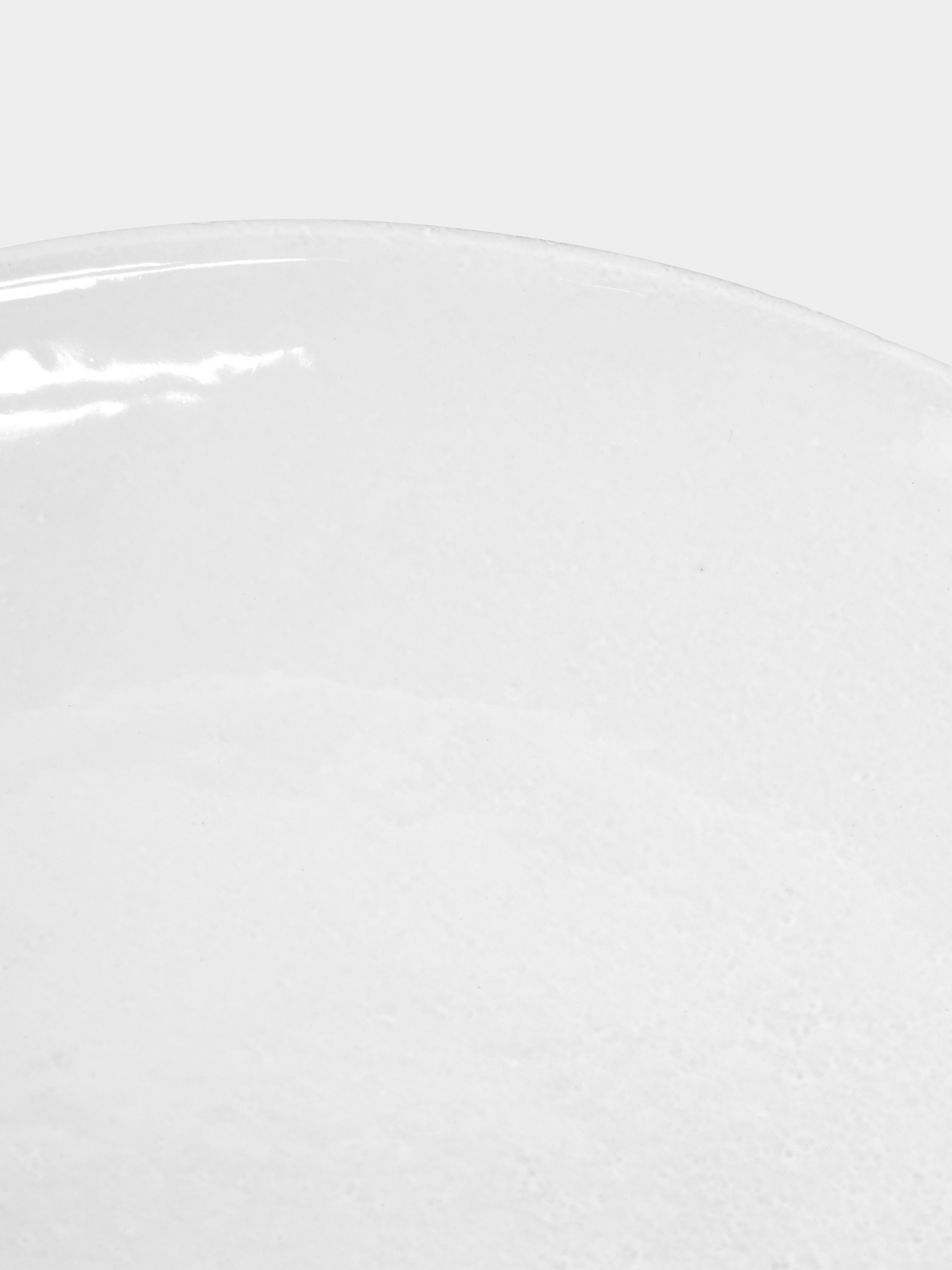 Old friends Ivan Pericoli and Benoît Astier de Villatte met at the prestigious École des Beaux-Arts in Paris, leading to the launch of Astier de Villatte in 1996. Since the beginning, they’ve been charmed with ideas of the imperfect, finding beauty in uneven glazes, dark pockmarks, and subtle ripples. But these details only emphasize the craft tale behind each piece—stories that start with a single sheet of black terracotta clay extracted from Parisian quarries. They follow traditional Roman methods to bring each "dream object" to life, shaping and inscribing each one with the potter’s initials and finishing with a high-shine white porcelain glaze.