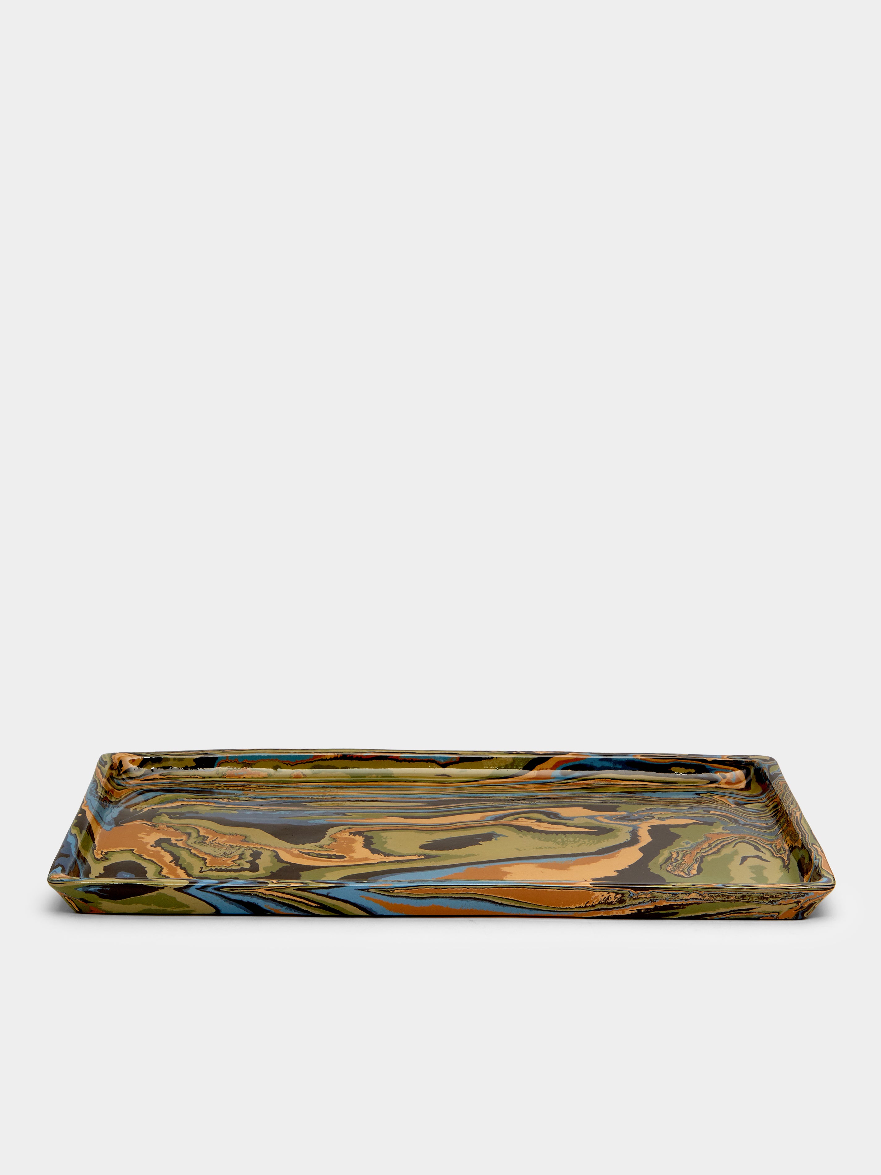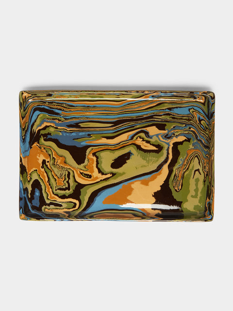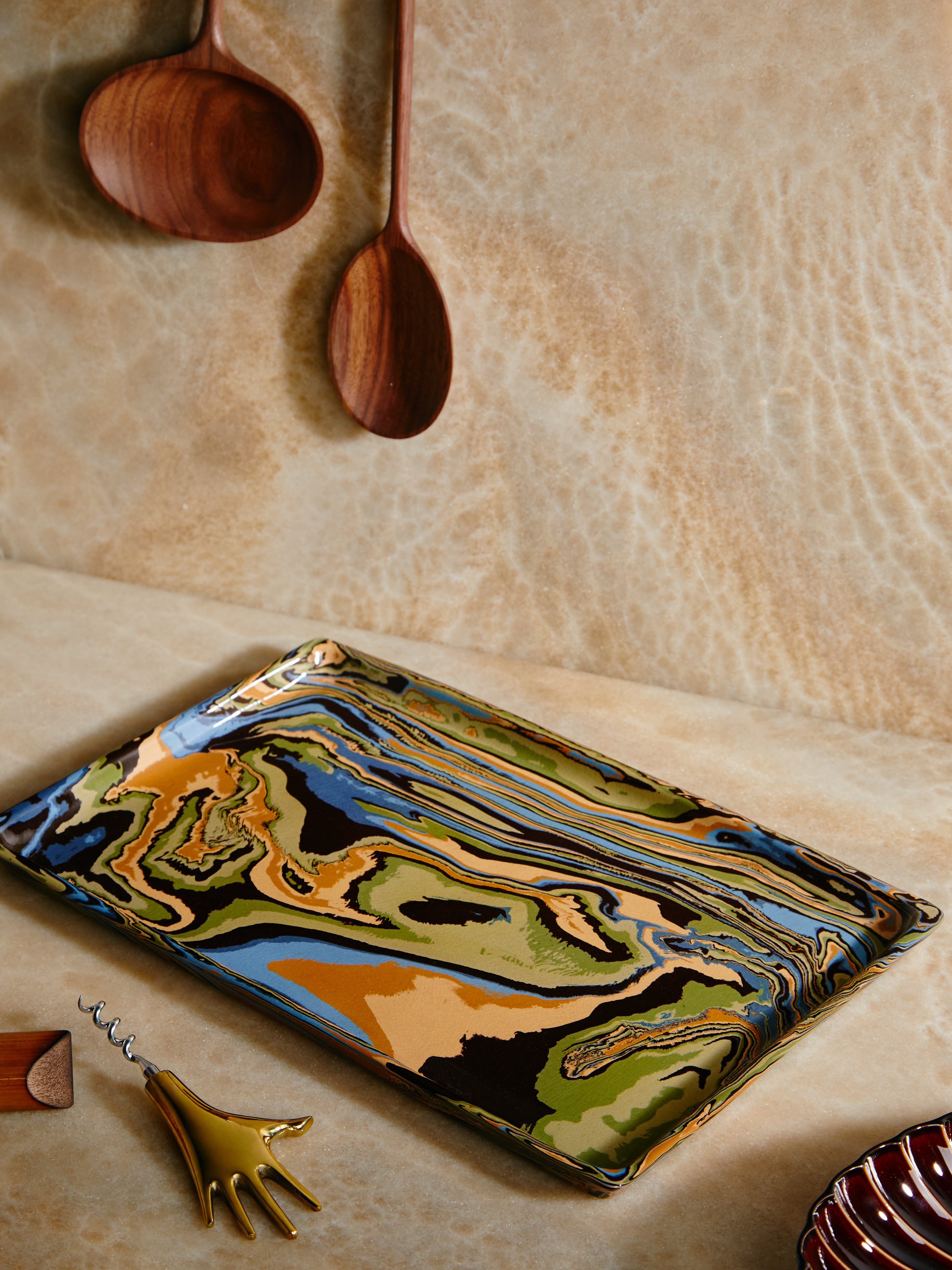 Paris-based Atelier Saint-André Perrin – made up of mother-and-daughter duo Sylvie and Elise – handcrafts signature marbled ceramics by utilising a technique Sylvie developed called stamping. The intricate process sees them swirl together various coloured oxide clays, rhythmically hand-knead the mixture, and then roll it out to reveal the unique pattern. Then, the clay is stamped and shaped into a pre-made plaster cast for it to harden, before being scraped, sanded, fired, enamelled and fired for a second time. No more than 16 pieces are created each day, making each one a loved, laboured-over product of this maker’s vision. Look out for captivating colour palettes with unique quirks that’ll elevate your table settings.