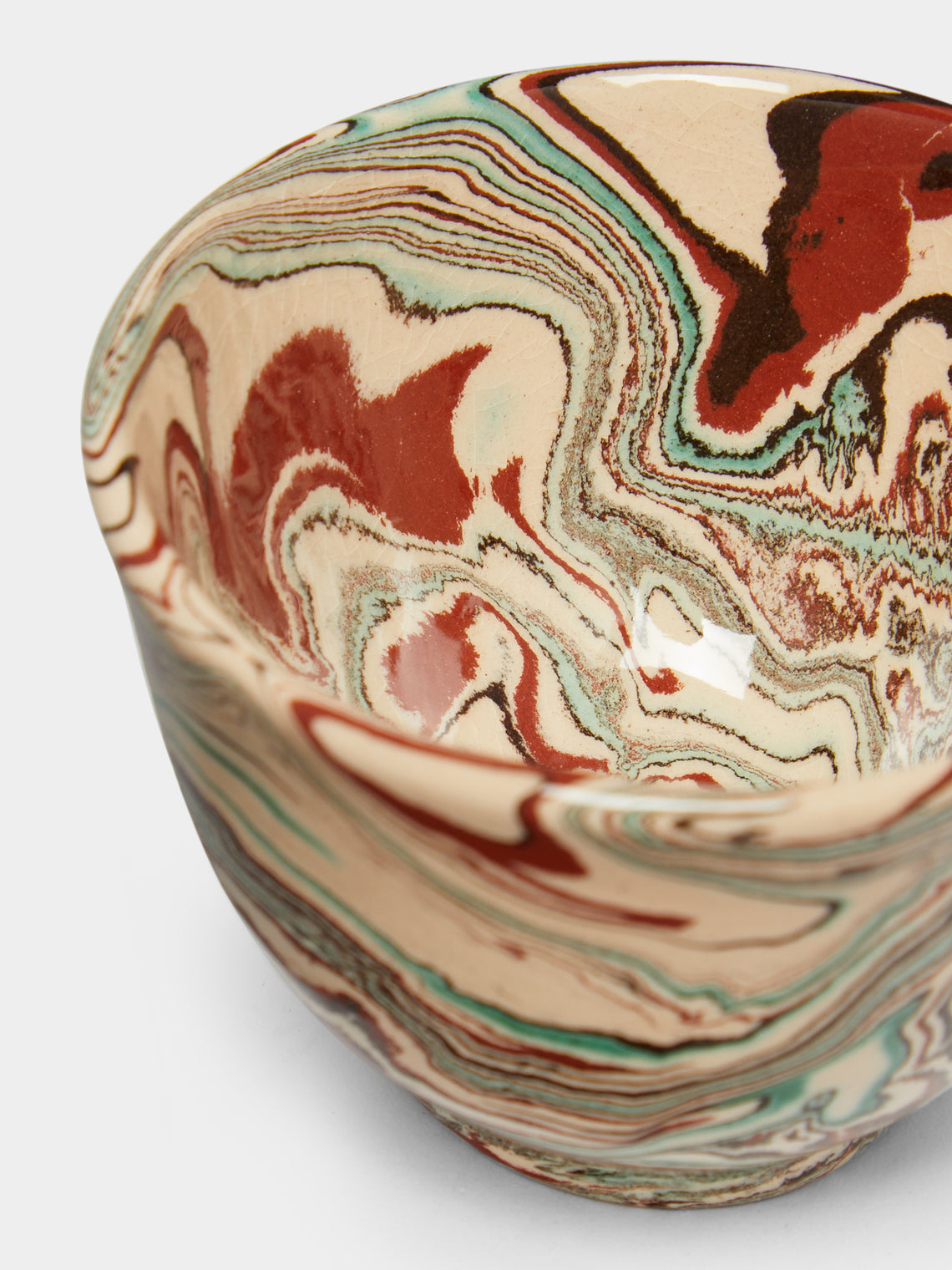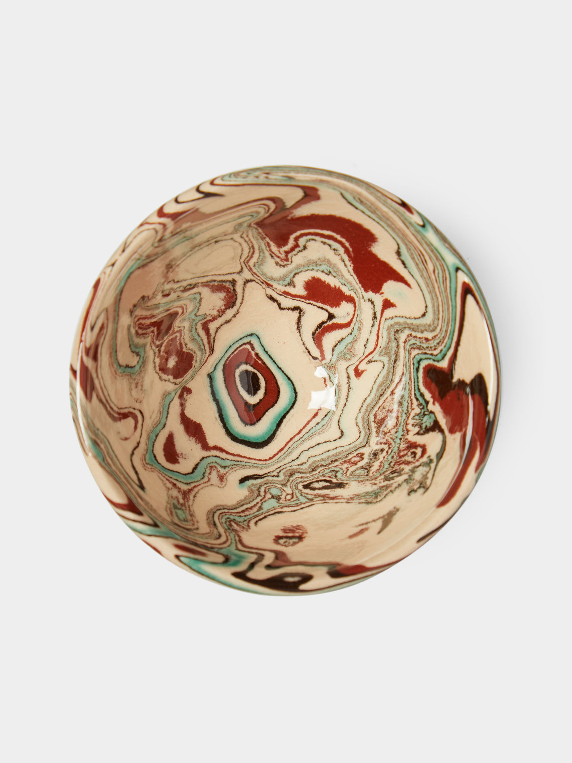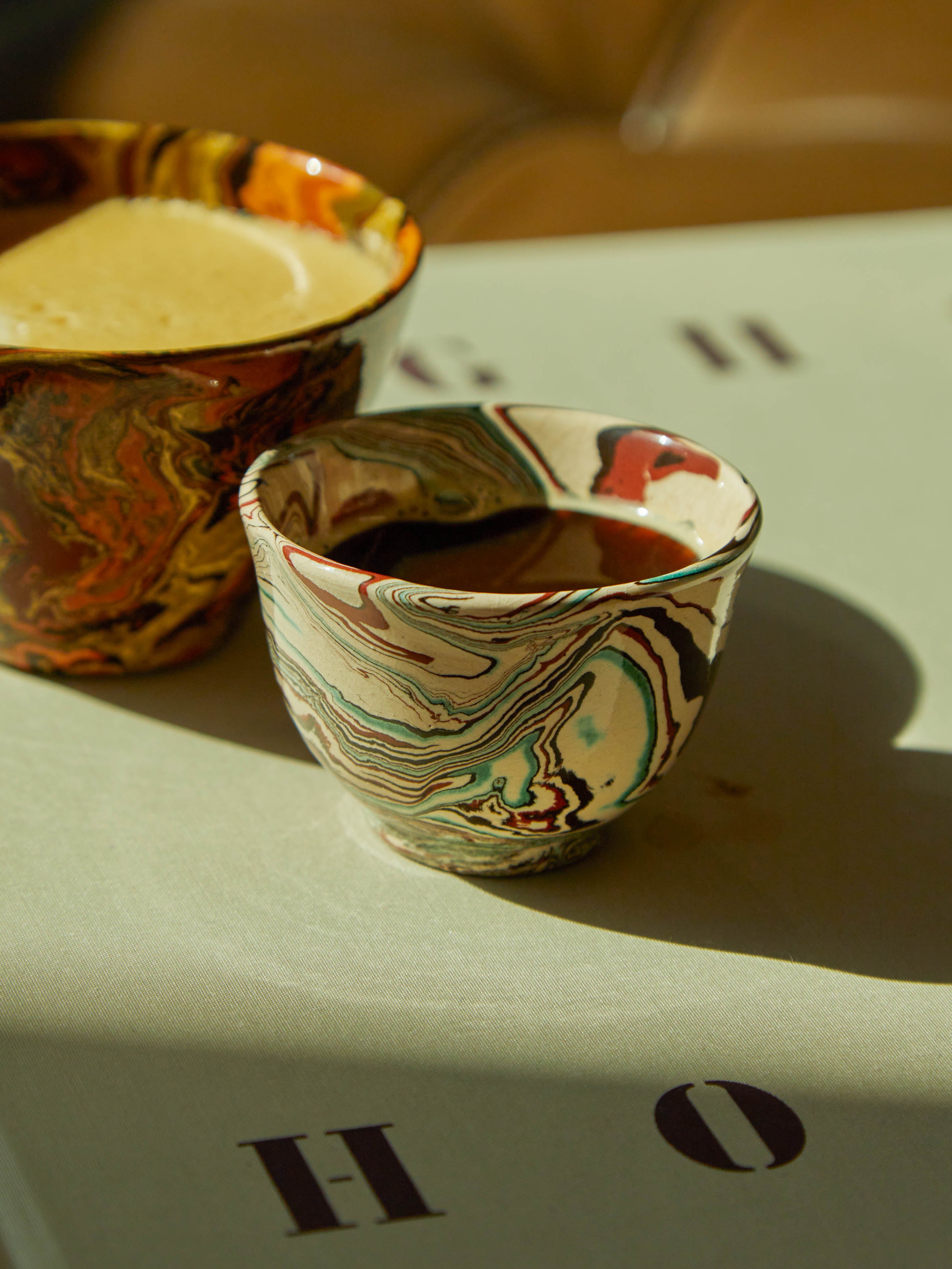 Paris-based Atelier Saint-André Perrin – made up of mother-and-daughter duo Sylvie and Elise – handcrafts signature marbled ceramics by utilising a technique Sylvie developed called stamping. The intricate process sees them swirl together various coloured oxide clays, rhythmically hand-knead the mixture, and then roll it out to reveal the unique pattern. Then, the clay is stamped and shaped into a pre-made plaster cast for it to harden, before being scraped, sanded, fired, enamelled and fired for a second time. No more than 16 pieces are created each day, making each one a loved, laboured-over product of this maker’s vision. Look out for captivating colour palettes with unique quirks that’ll elevate your table settings.
