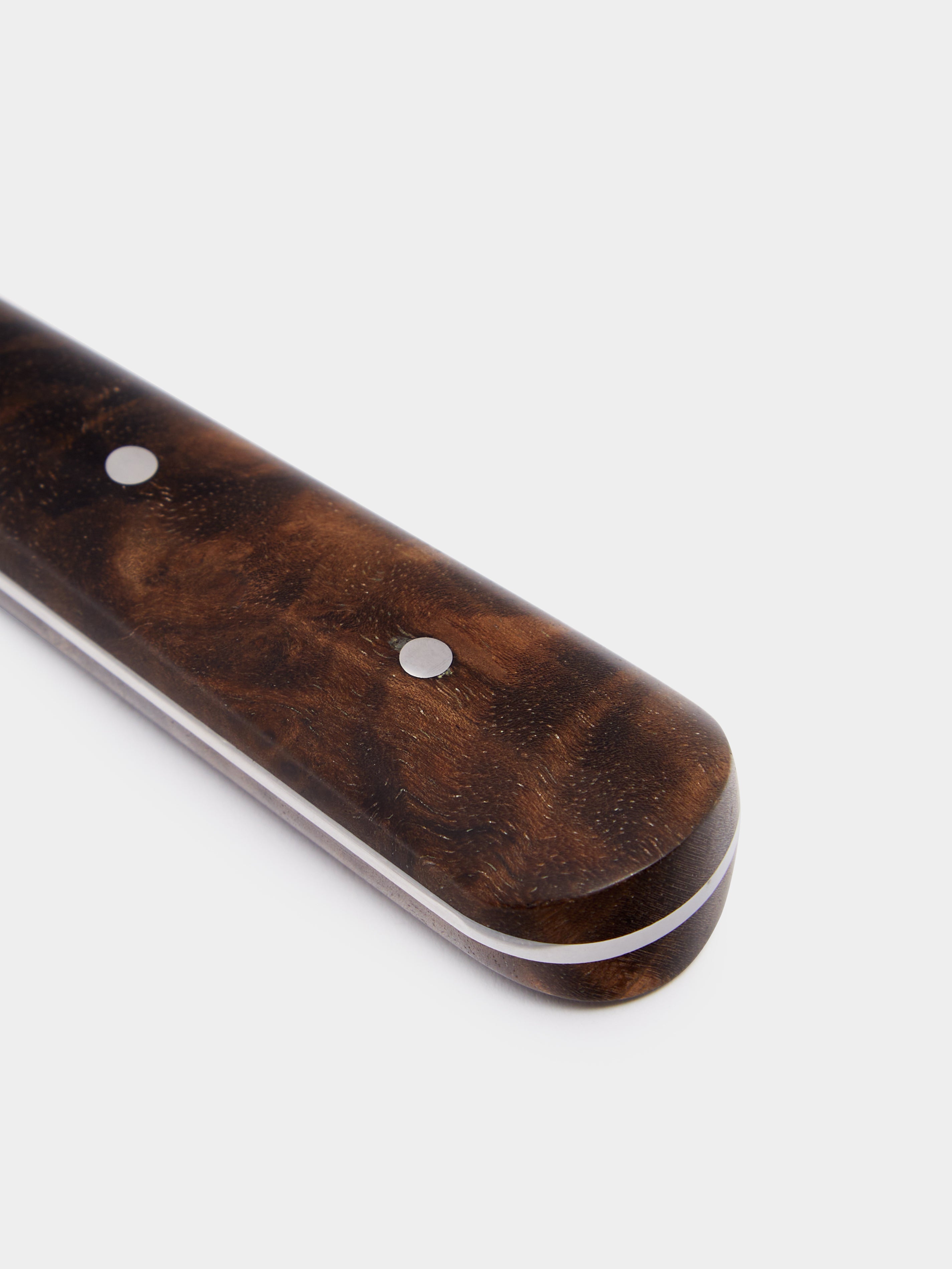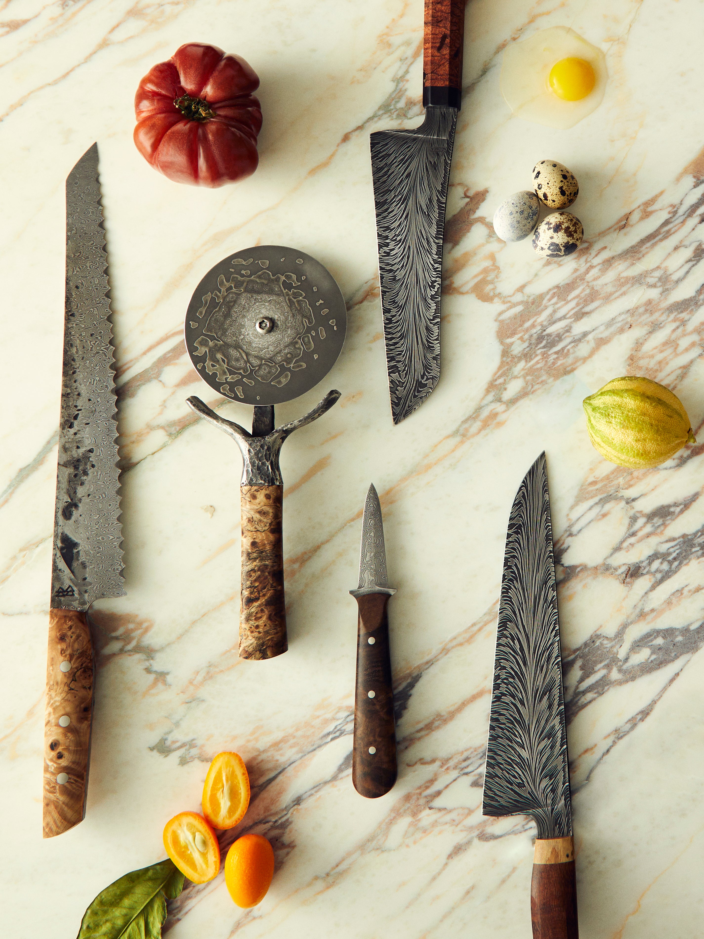 Chef and farmer Ben Bodman doesn't recall a moment in his life where he didn’t feel the solid grip of a knife in his hand. While working at L’Enclume in the Lake District, he became fascinated with knife-making and built his own coal forge from an ancient 50-gallon oil drum. Now, he hand-forges super-fine carbon steel knives in his workshop on his family farm in Wiltshire, repeatedly sharpening blades on a whetstone and perfecting each one with a glossy wax to ensure they last a lifetime. Look out for limited edition pieces that are exclusive to ABASK.