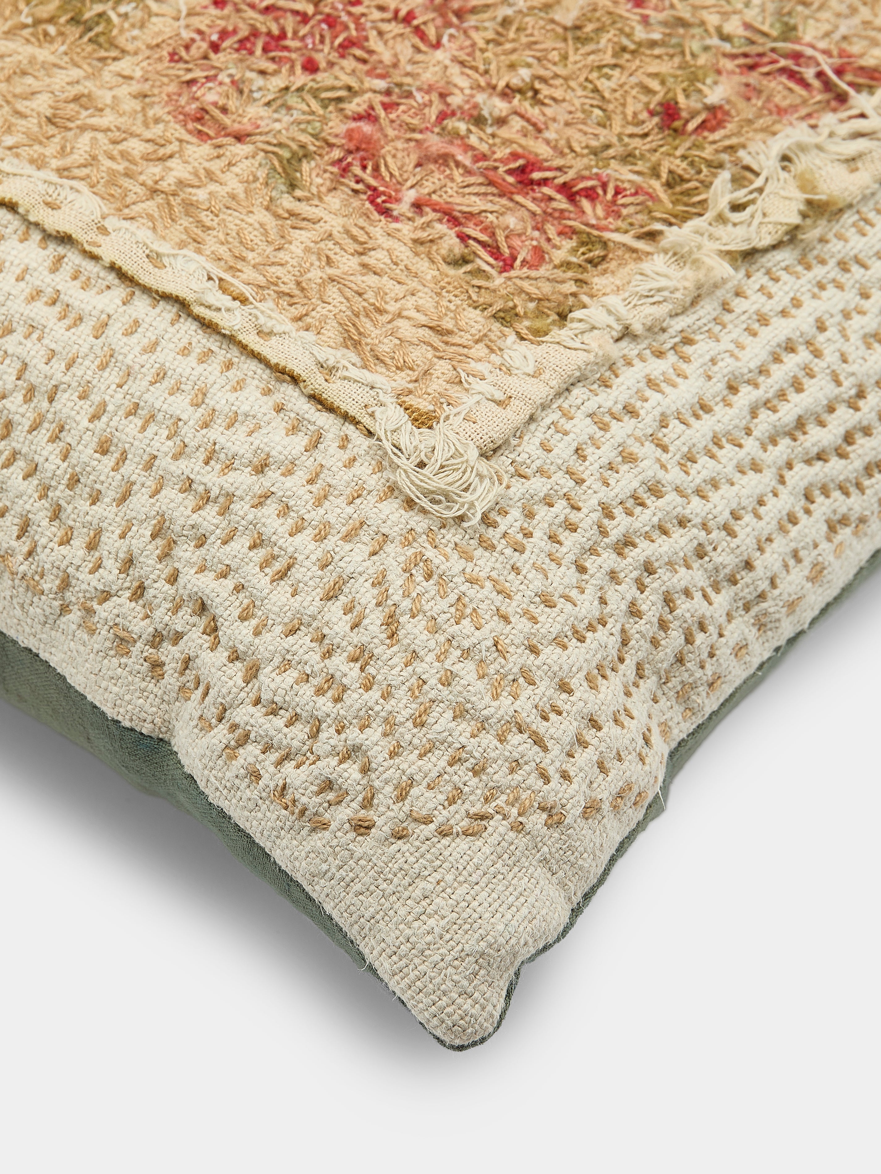 By Walid 19th-Century French Needlepoint Wool and Damask Cushion (19in/48cm)