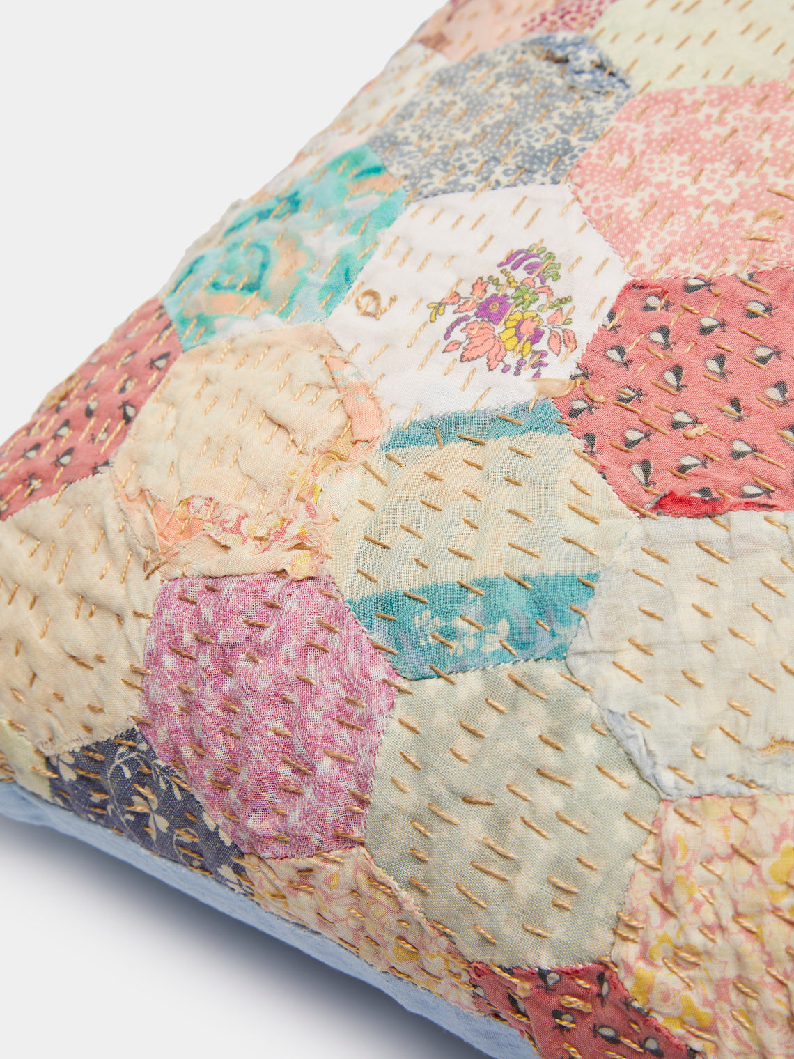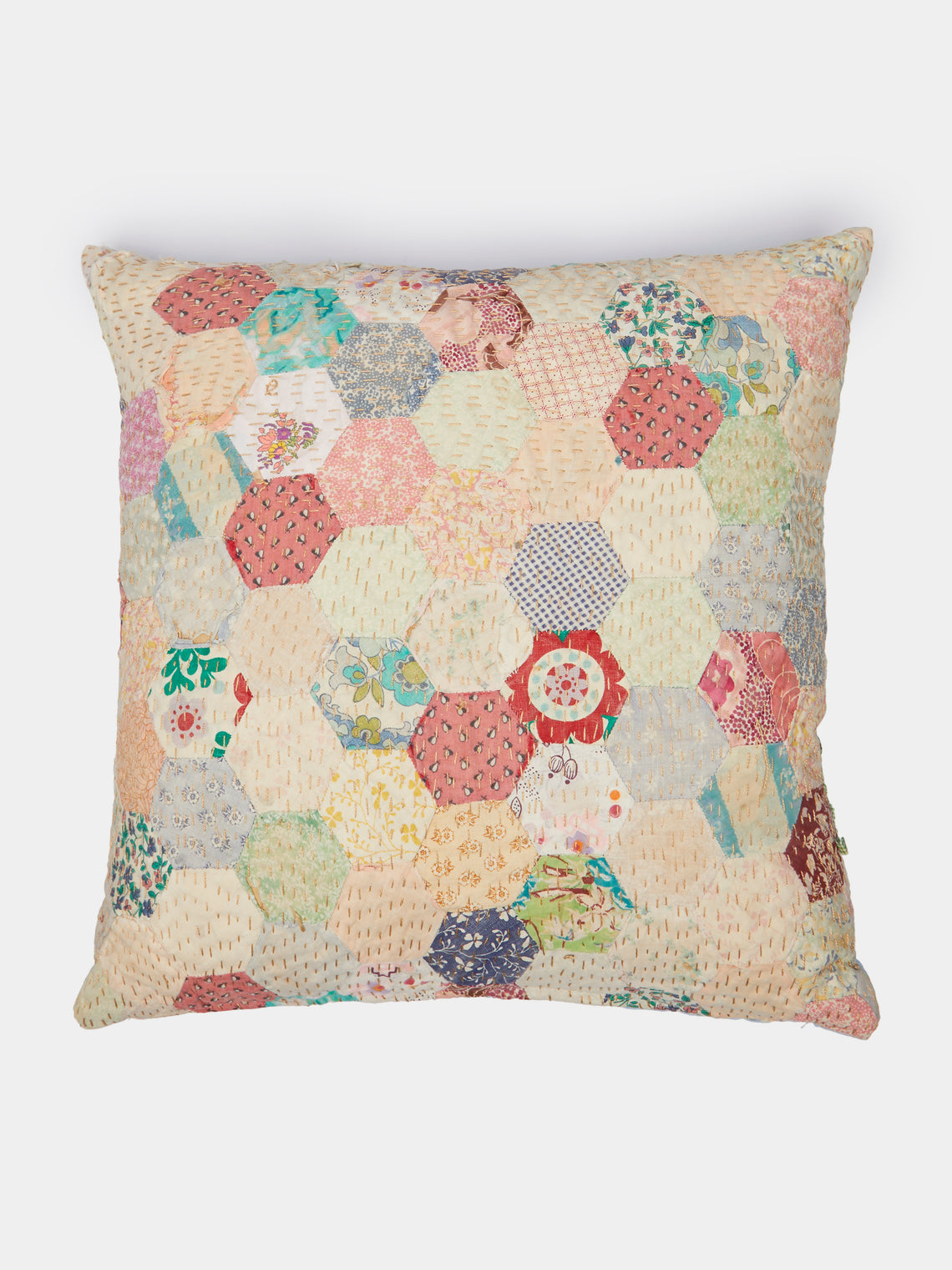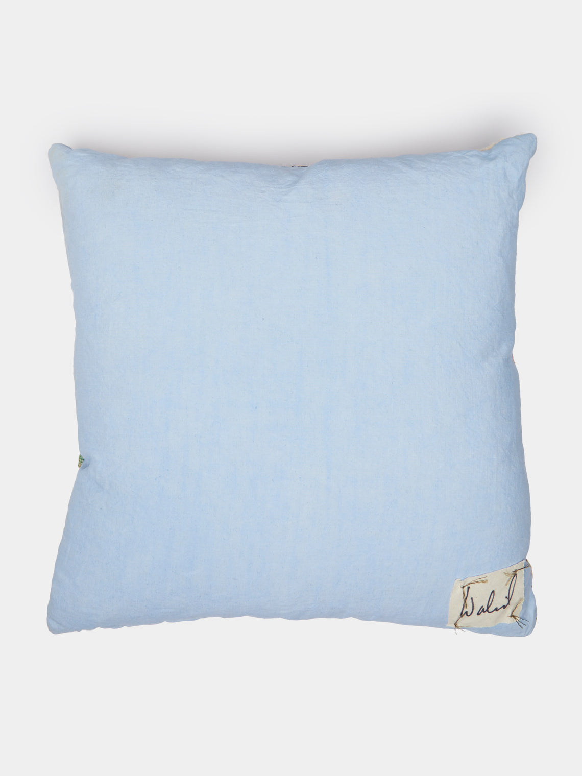 By Walid 19th-Century Log Cabin Patchwork Linen Cushion (16.5in/42cm)