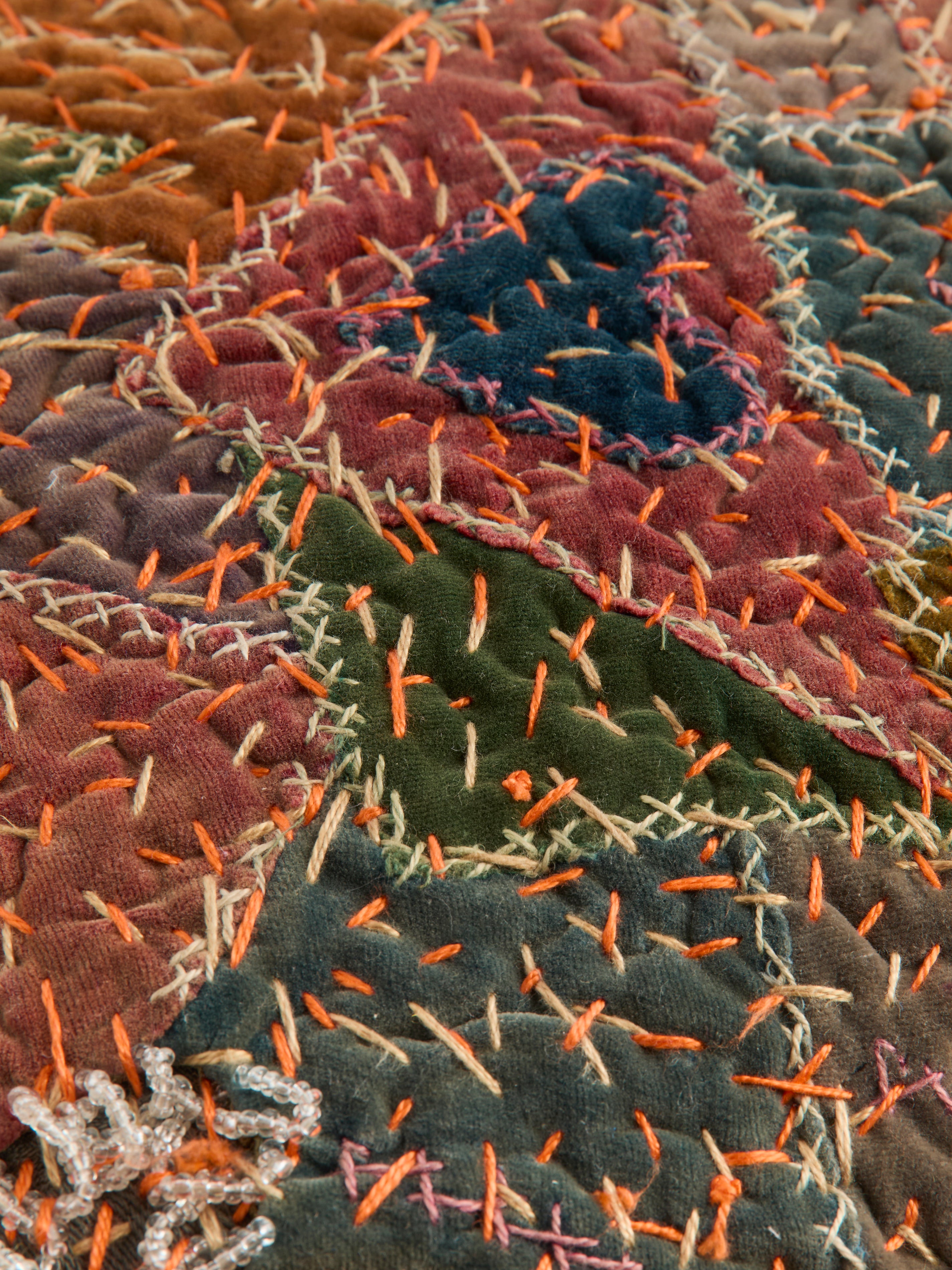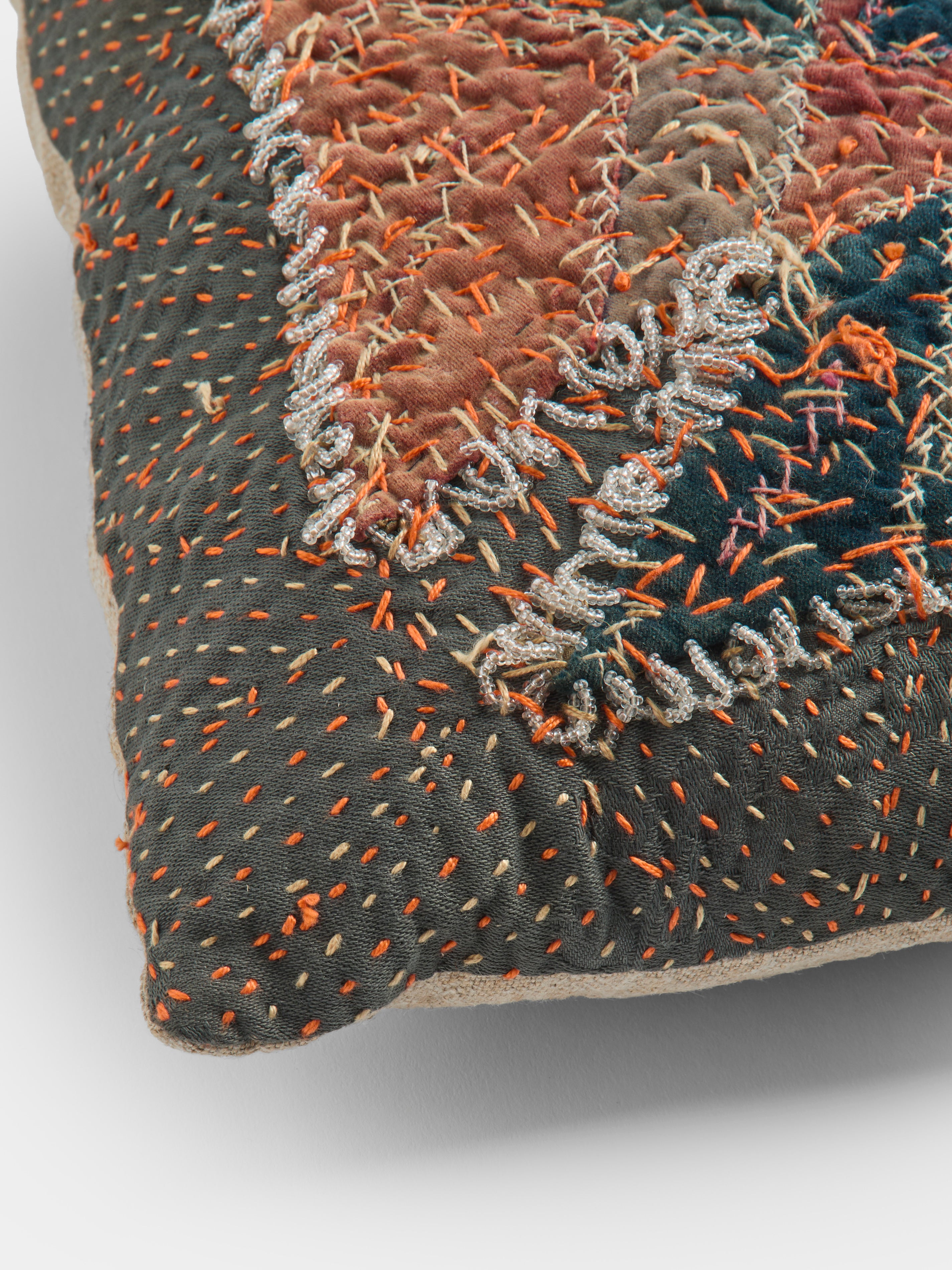 By Walid 19th-Century Silk, Velvet and Linen Patchwork Cushion (13.5in/35cm)