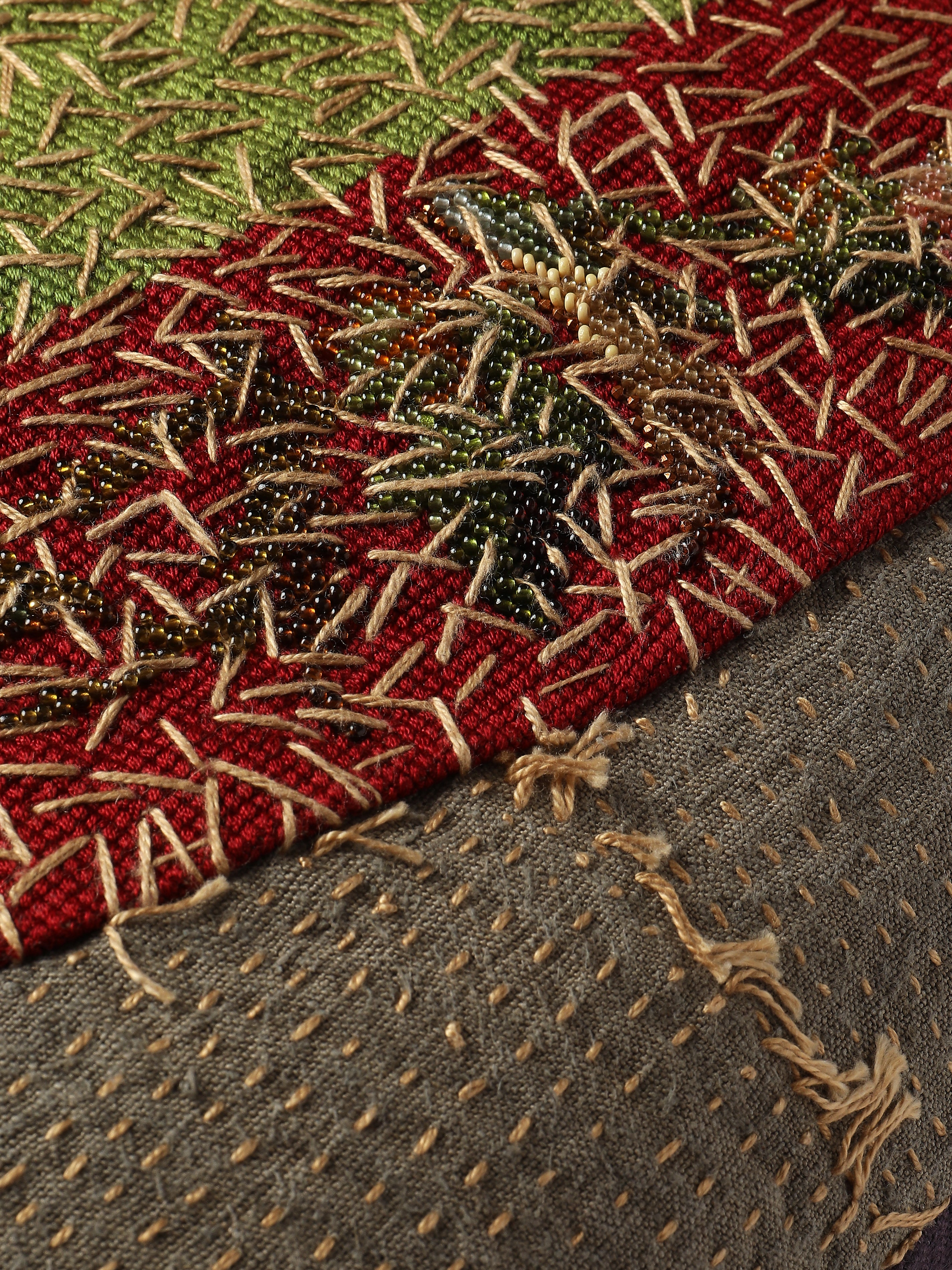 By Walid 19th-Century Victorian Beaded and Needlepoint Linen Cushion (25.5in/62cm)