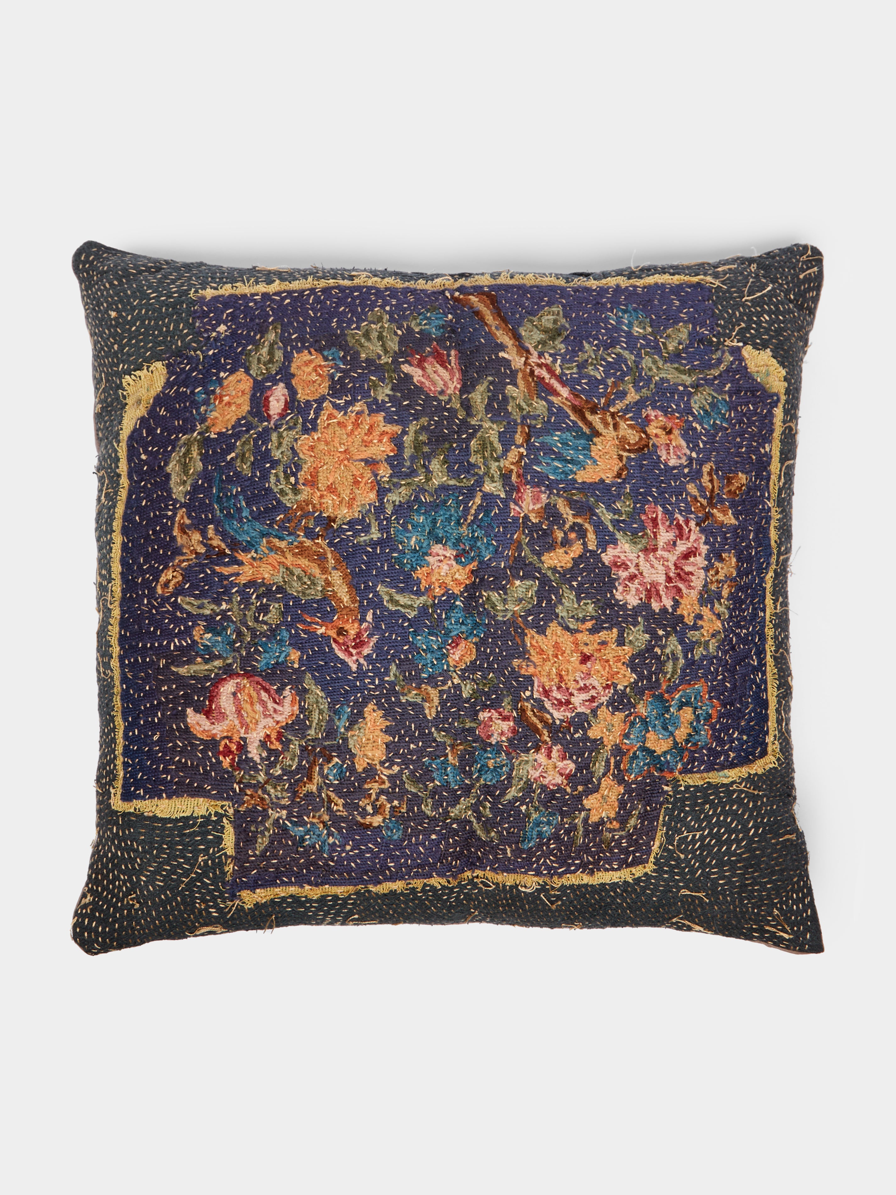 By Walid 19th-Century Needlepoint Wool Floral Cushion (25in/64cm)