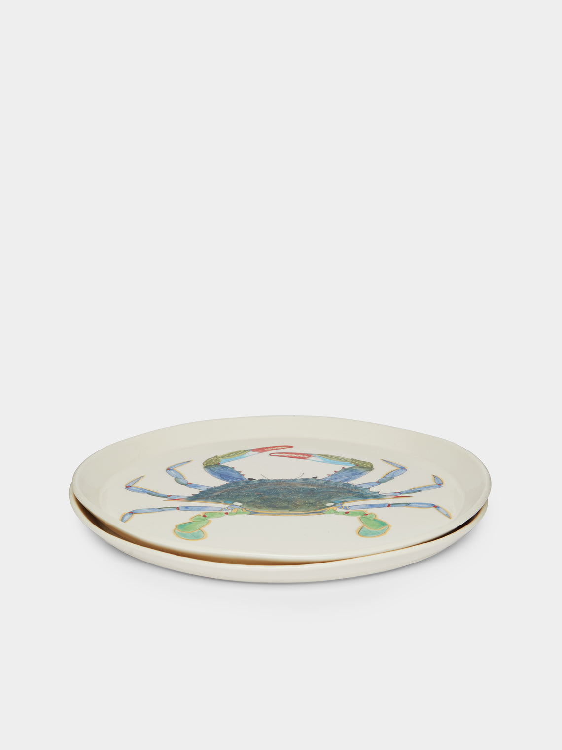 Casa Adams Crab Hand-Painted Porcelain Dinner Plates – 11in/28cm (Set of 2)