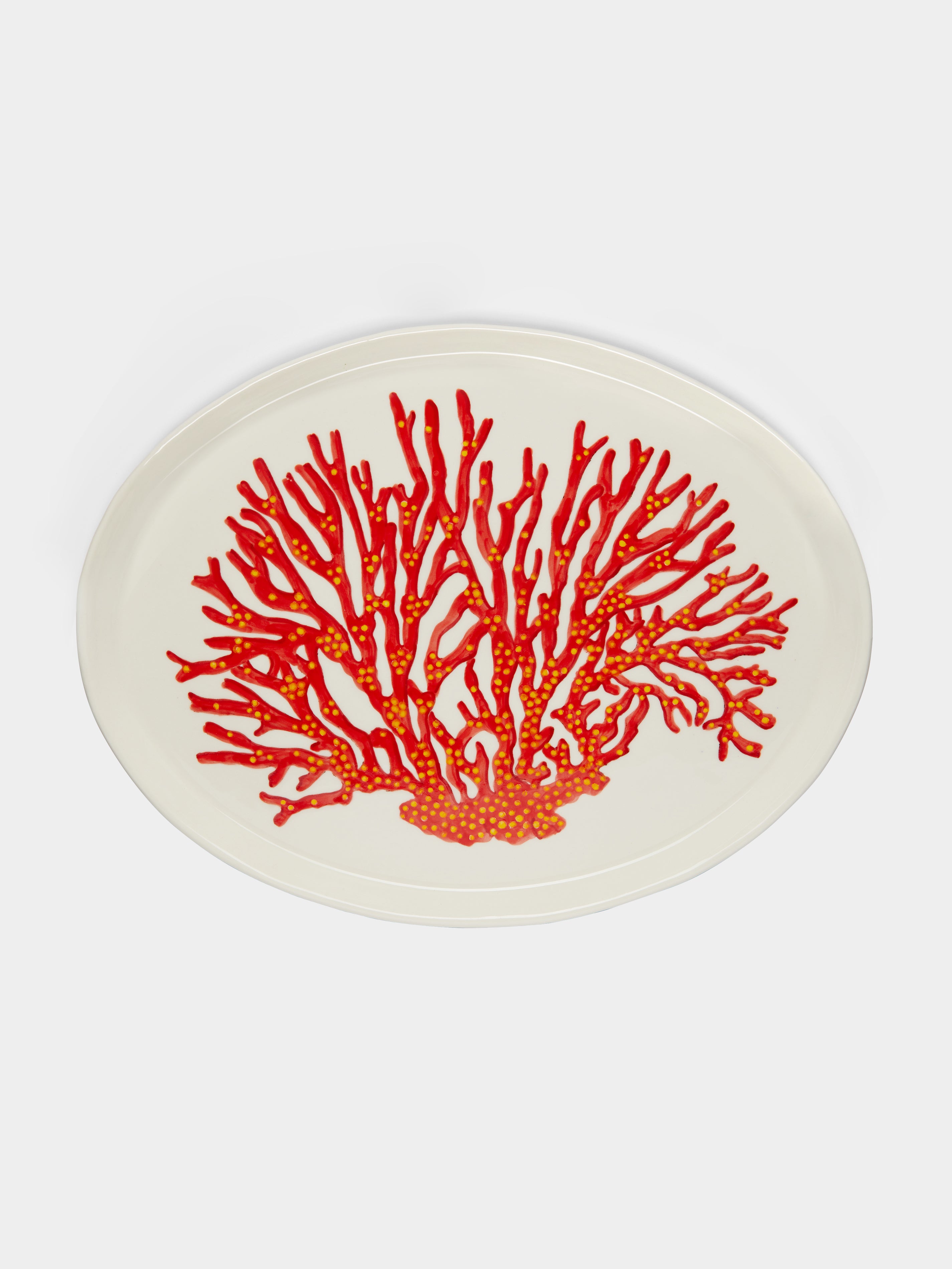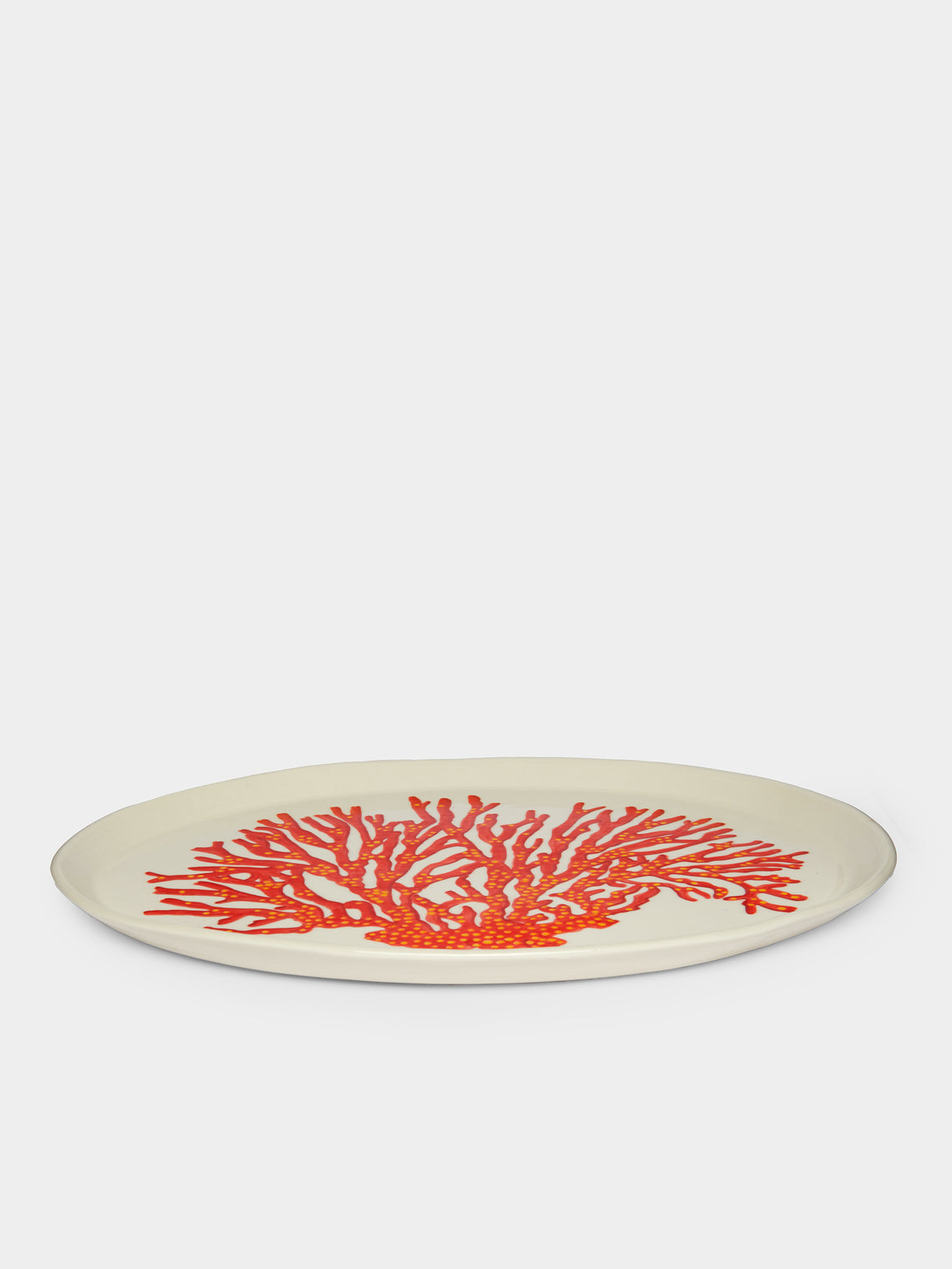 Casa Adams Mopsella Zimmeri Hand-Painted Porcelain Oval Serving Platter