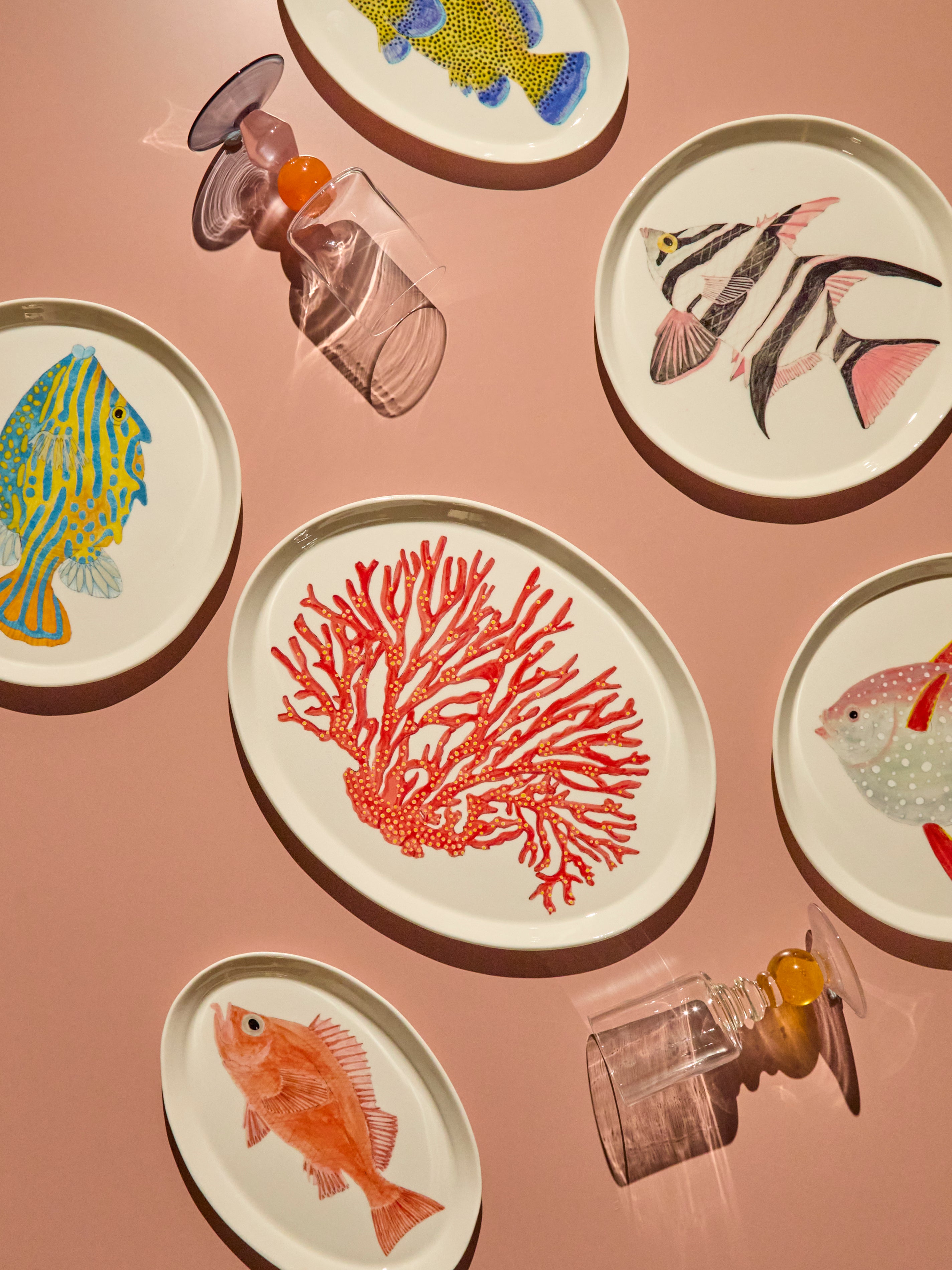 Casa Adams’ beautiful artwork, sketched by founder Araceli, is inspired by the hand-coloured natural history copperplate engravings of the 18th century. Her whimsical illustrations are monoprinted onto Australian porcelain, which is fired, painted and finished by hand using watercolour-like washes of underglaze – a meticulous technique mastered and executed in-house by Araceli and her husband, Dominic. Her approach is environmentally conscious and considered at every turn, from the biodiverse line-up of sea creatures she spotlights to the regenerative energy used to power her all-electric workspace in Sydney. Her reverence for nature runs so deep that she plants a native tree or shrub for each piece sold.