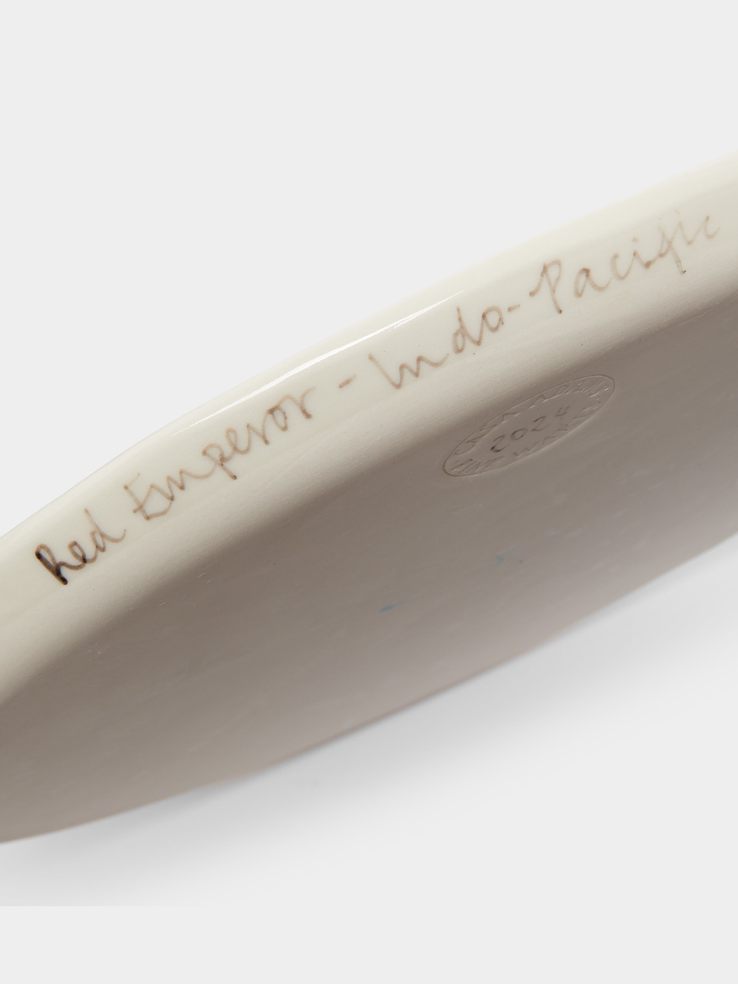 Casa Adams’ beautiful artwork, sketched by founder Araceli, is inspired by the hand-coloured natural history copperplate engravings of the 18th century. Her whimsical illustrations are monoprinted onto Australian porcelain, which is fired, painted and finished by hand using watercolour-like washes of underglaze – a meticulous technique mastered and executed in-house by Araceli and her husband, Dominic. Her approach is environmentally conscious and considered at every turn, from the biodiverse line-up of sea creatures she spotlights to the regenerative energy used to power her all-electric workspace in Sydney. Her reverence for nature runs so deep that she plants a native tree or shrub for each piece sold.