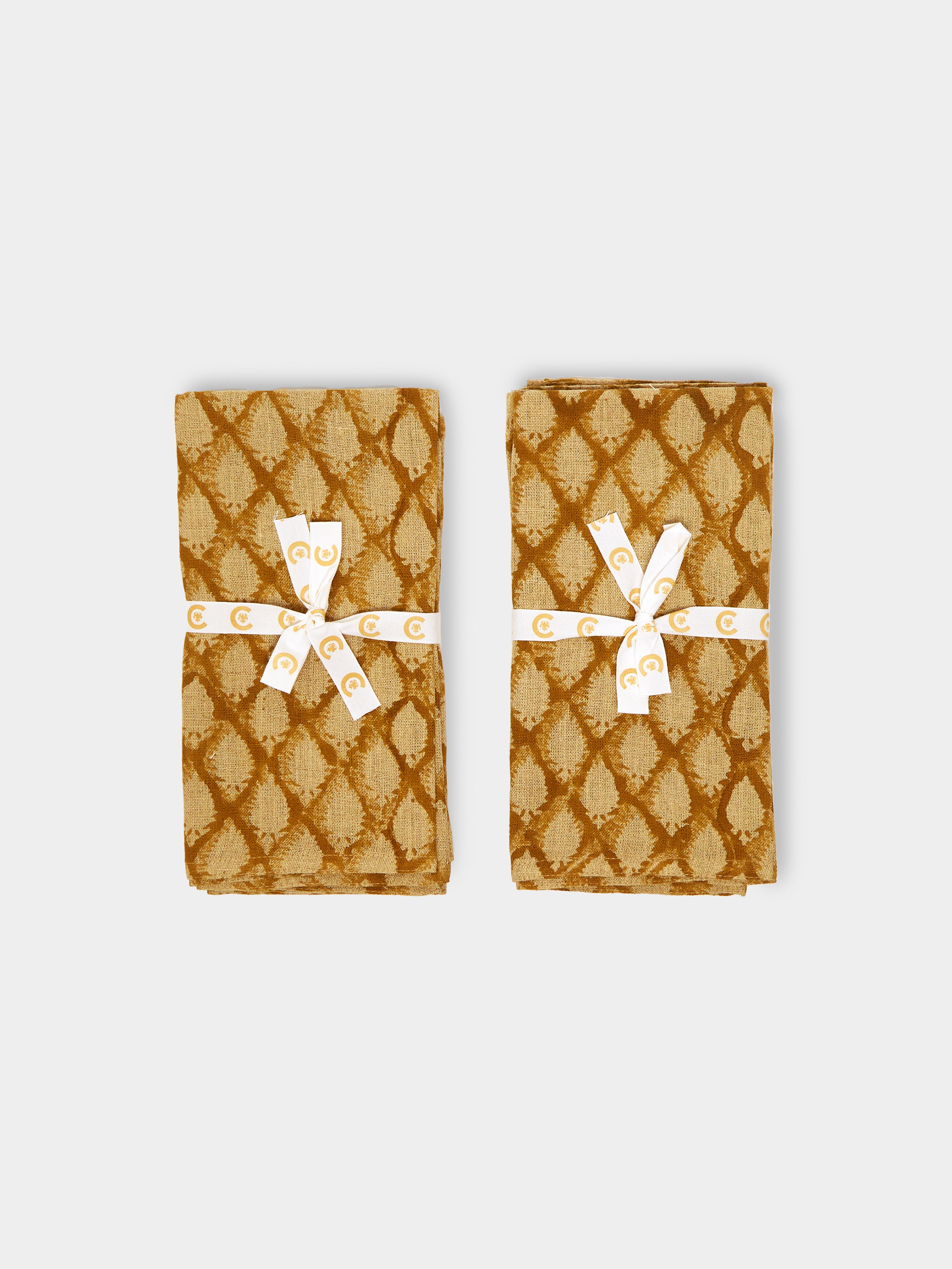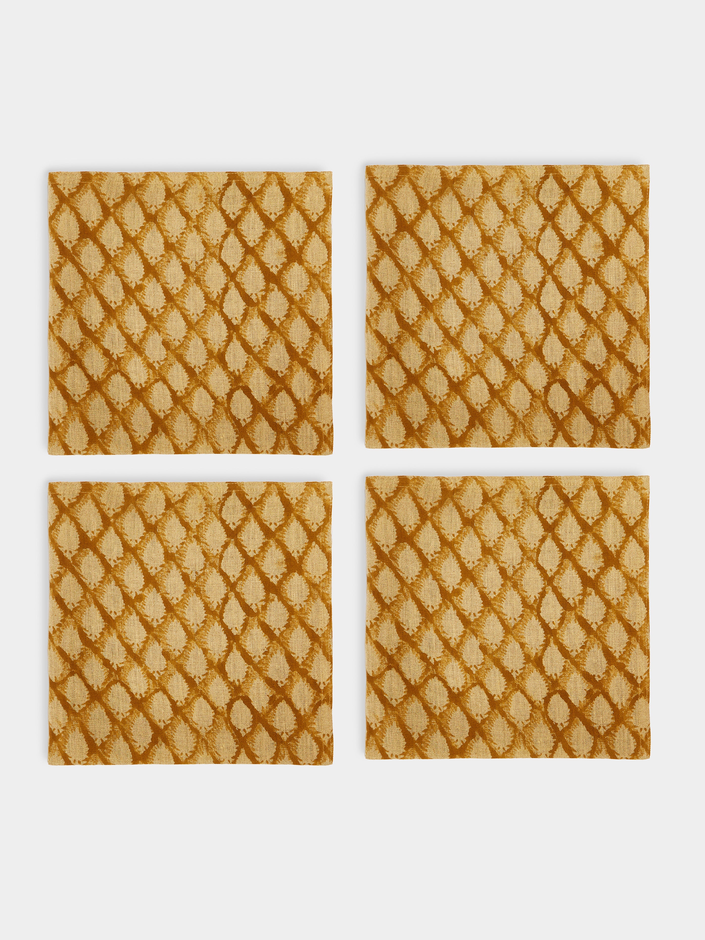 Chamois Cypress Block-Printed Linen Napkins (Set of 4)