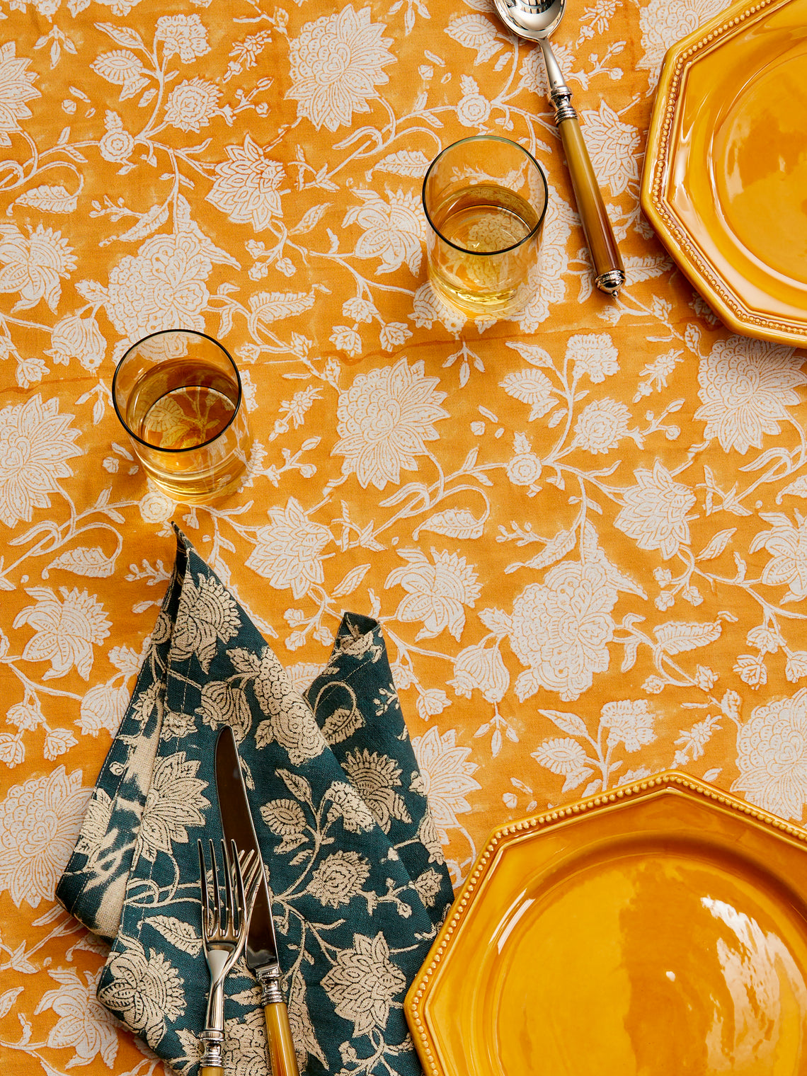 Indian Rose Block-Printed Cotton Rectangular Tablecloth (138in/3.5m)150cm (w) x 350cm (l) / 58.6" (w) x 136.7" (l)