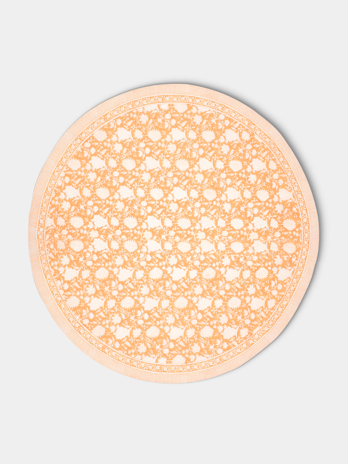 Chamois Indian Rose Block-Printed Cotton Round Tablecloth (86.5in/2.2m)