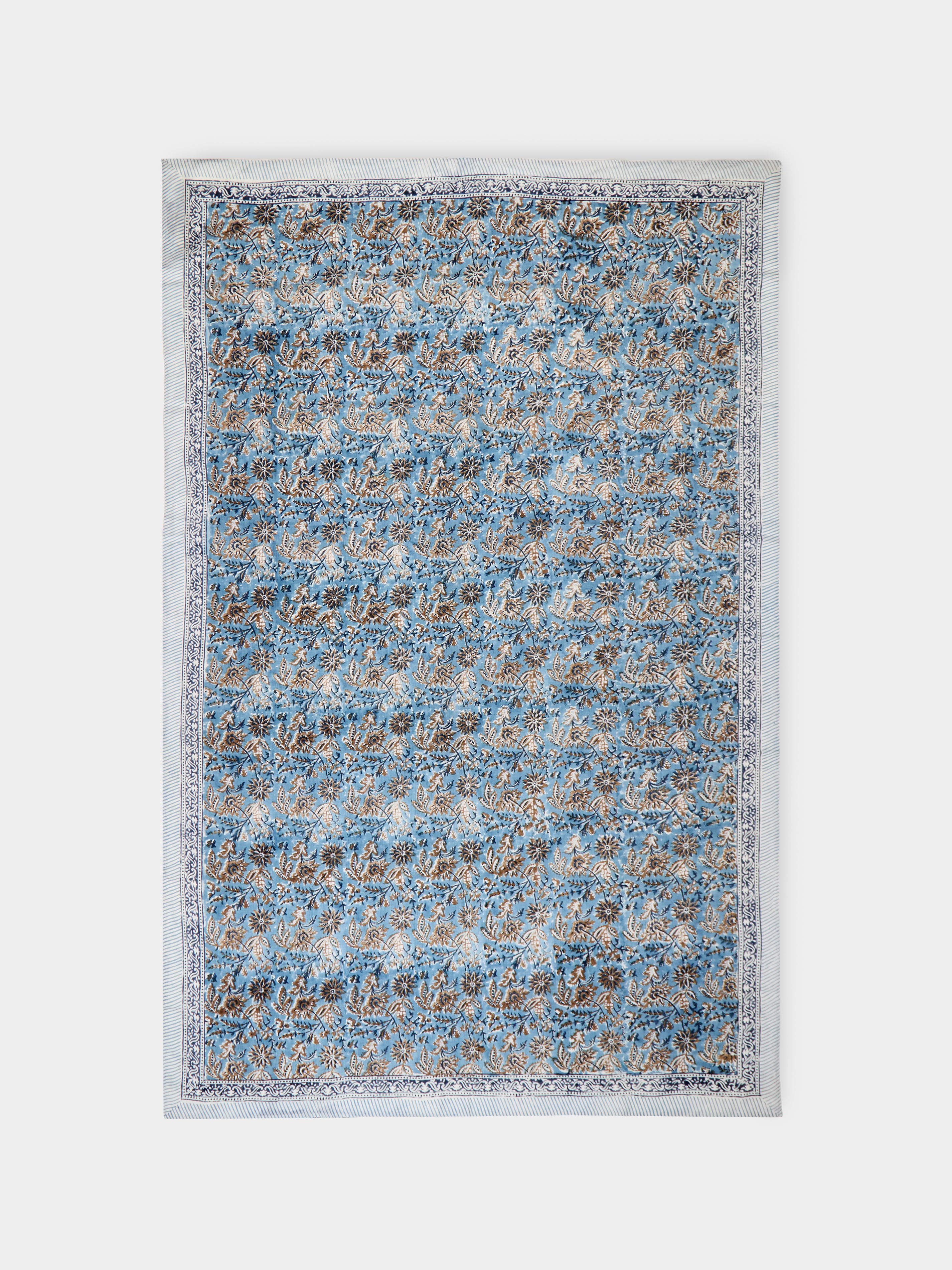 Chamois Indian Summer Block-Printed Linen Rectangular Tablecloth (90.5in/2.3m)