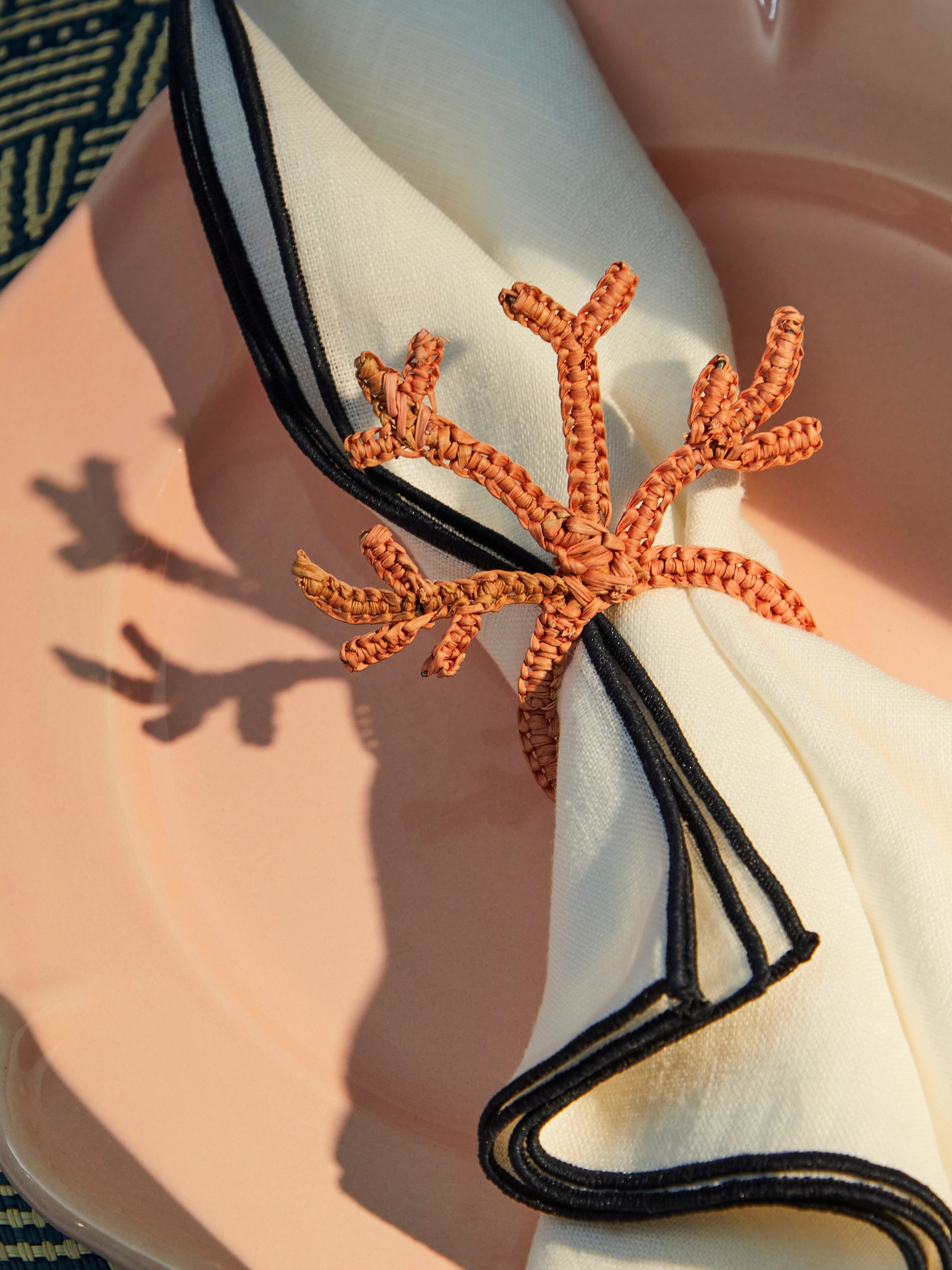Coral Handwoven Iraca Palm Napkin Rings (Set of 4)10cm (h) x 8cm (w) / 3.9" (h) x 3.1" (w)