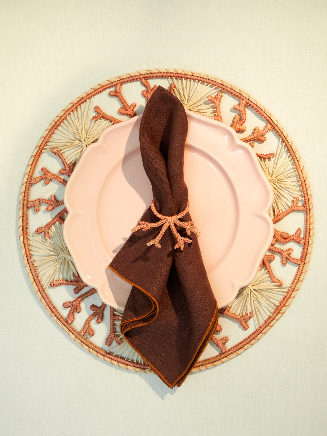 Coral Handwoven Iraca Palm Napkin Rings (Set of 4)10cm (h) x 8cm (w) / 3.9" (h) x 3.1" (w)