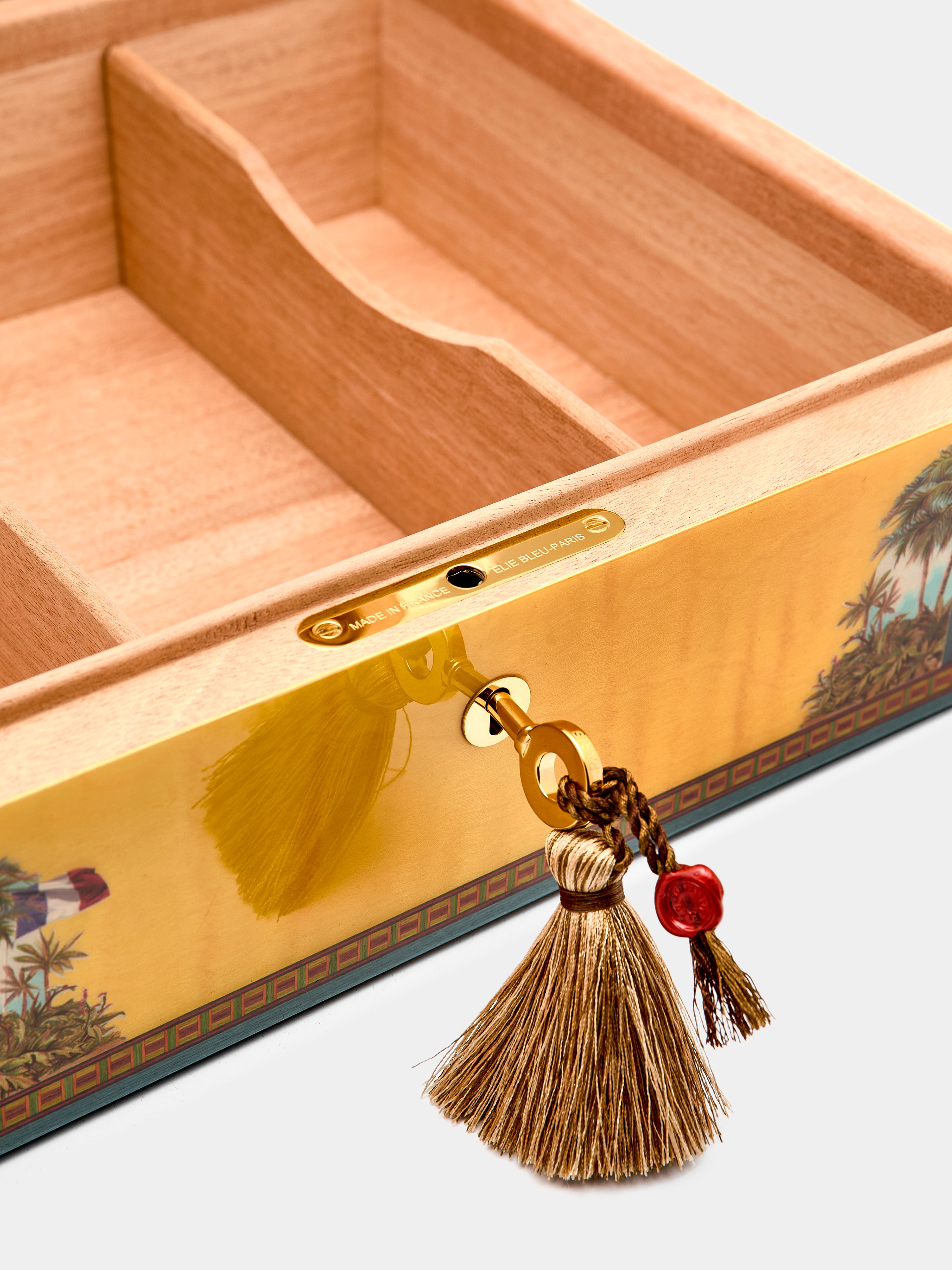 Elie Bleu is a household name for its humidors, but they aren’t the only field of expertise for this maker. No matter what its boxes are guarding – from jewellery and watches to poker and pens – they’re always handmade to exacting standards, taking four to six months to come to fruition. Every story starts with a mass cut of timber that’s sourced from across the globe, before expert craftspeople have their way with it in the workshop just outside of Paris; perhaps they’re lacquering it by hand, or maybe they’re piecing it together via Boulle marquetry. Whatever they’re rustling up, rest assured that the final result will be a product of expert savoir-faire, as has been the case since its founding in 1976.