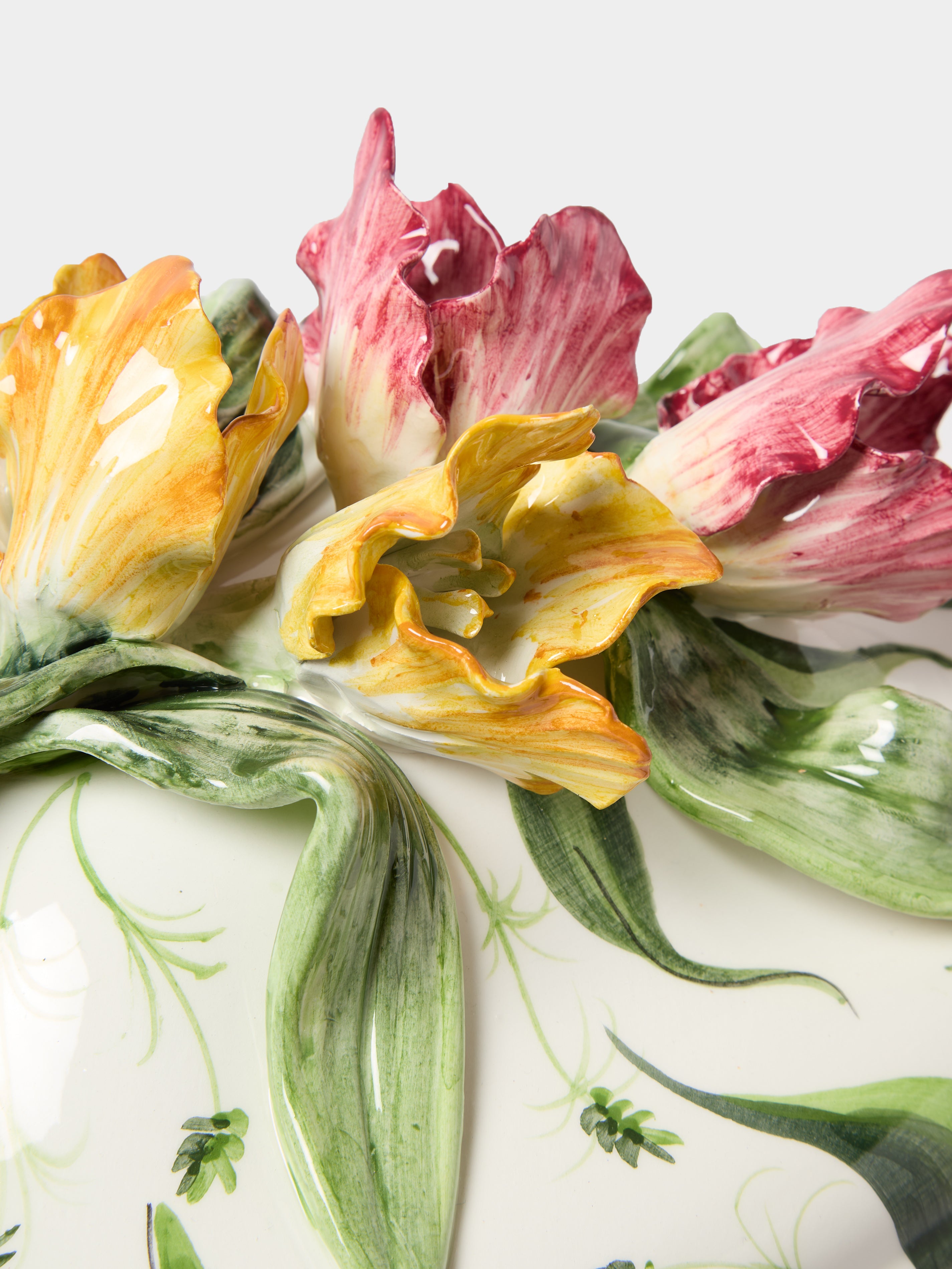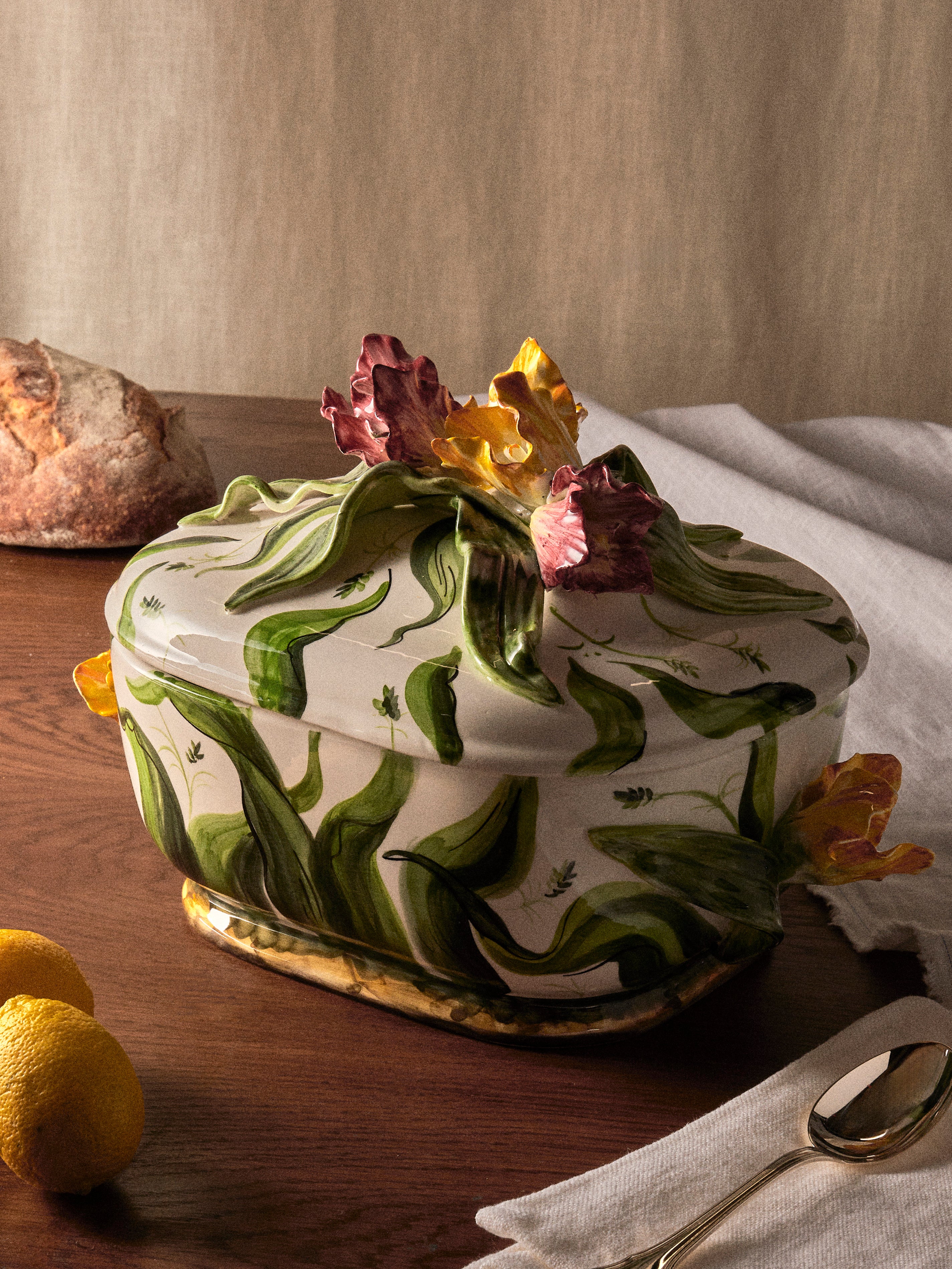 Fioravola Tulips Hand-Painted Majolica Ceramic Tureen with Platter