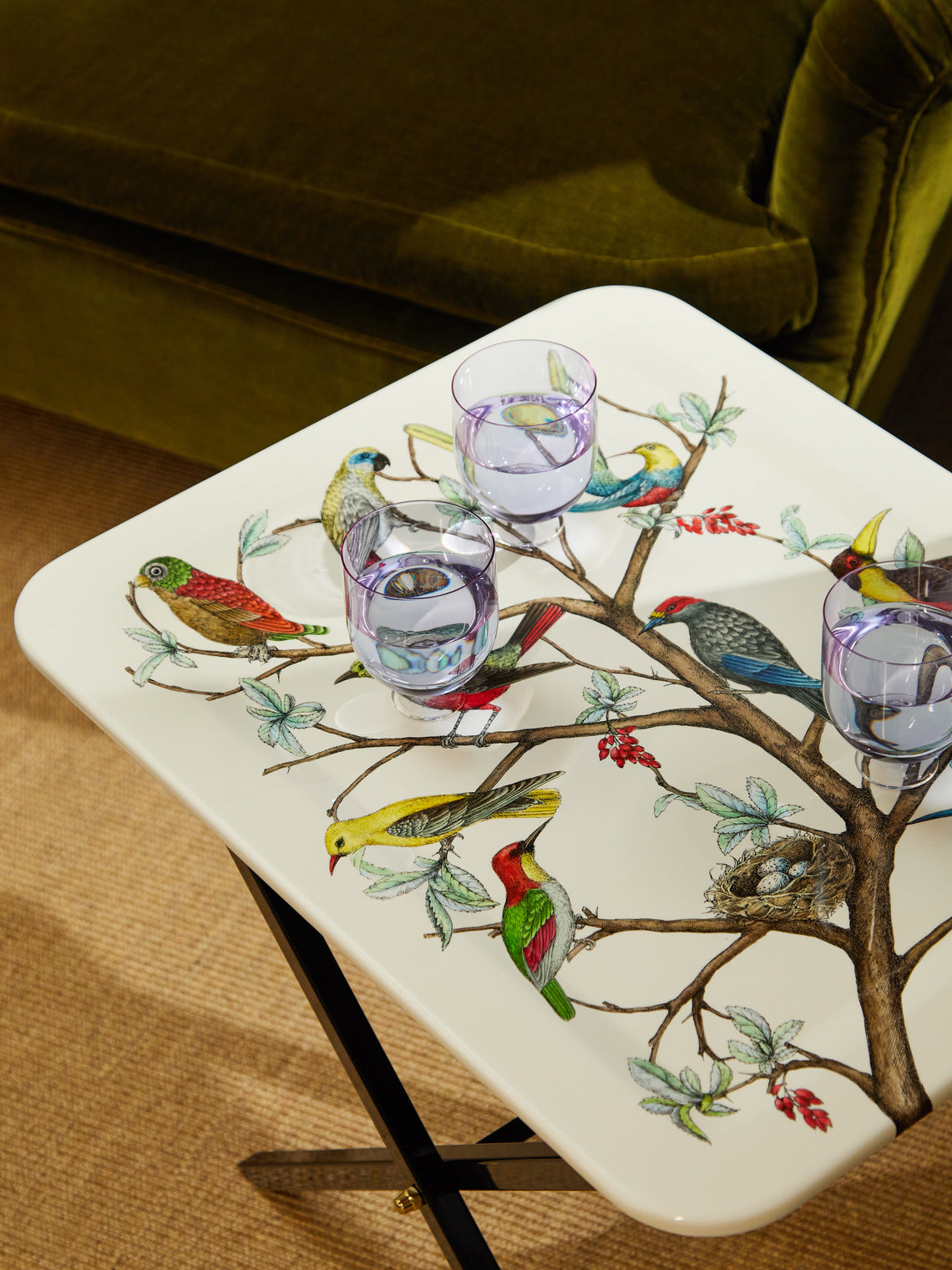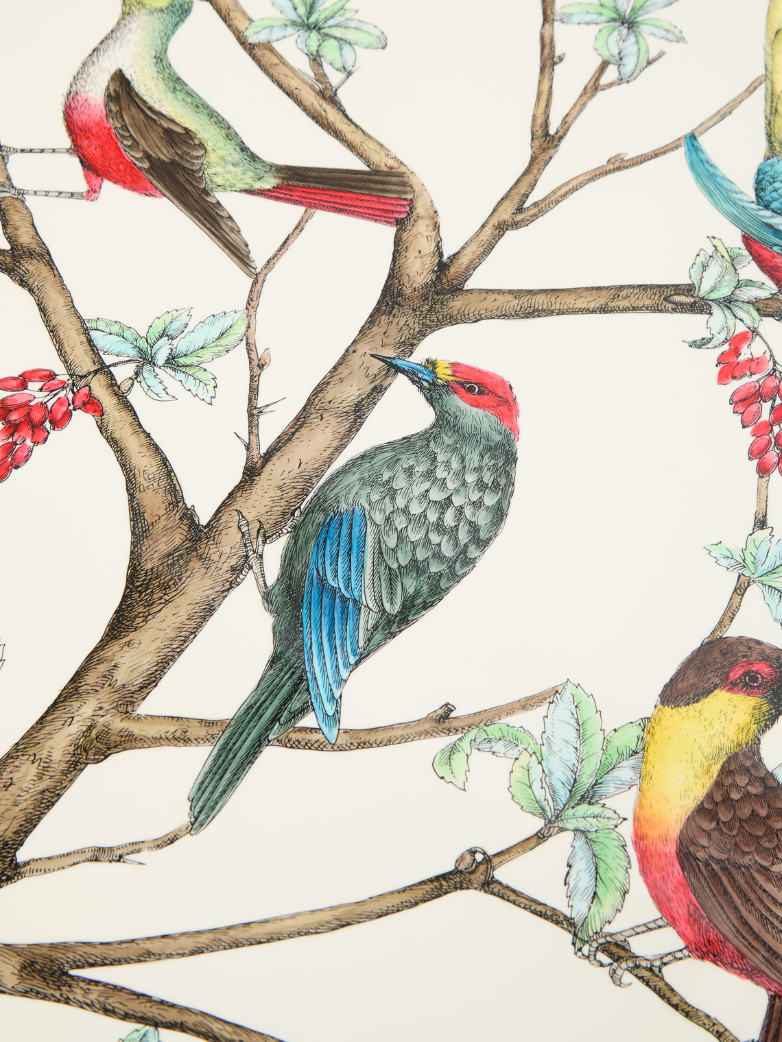 Fornasetti Uccelli Hand-Painted Wood Tray (23.5in/60cm)