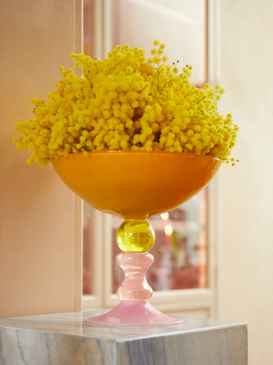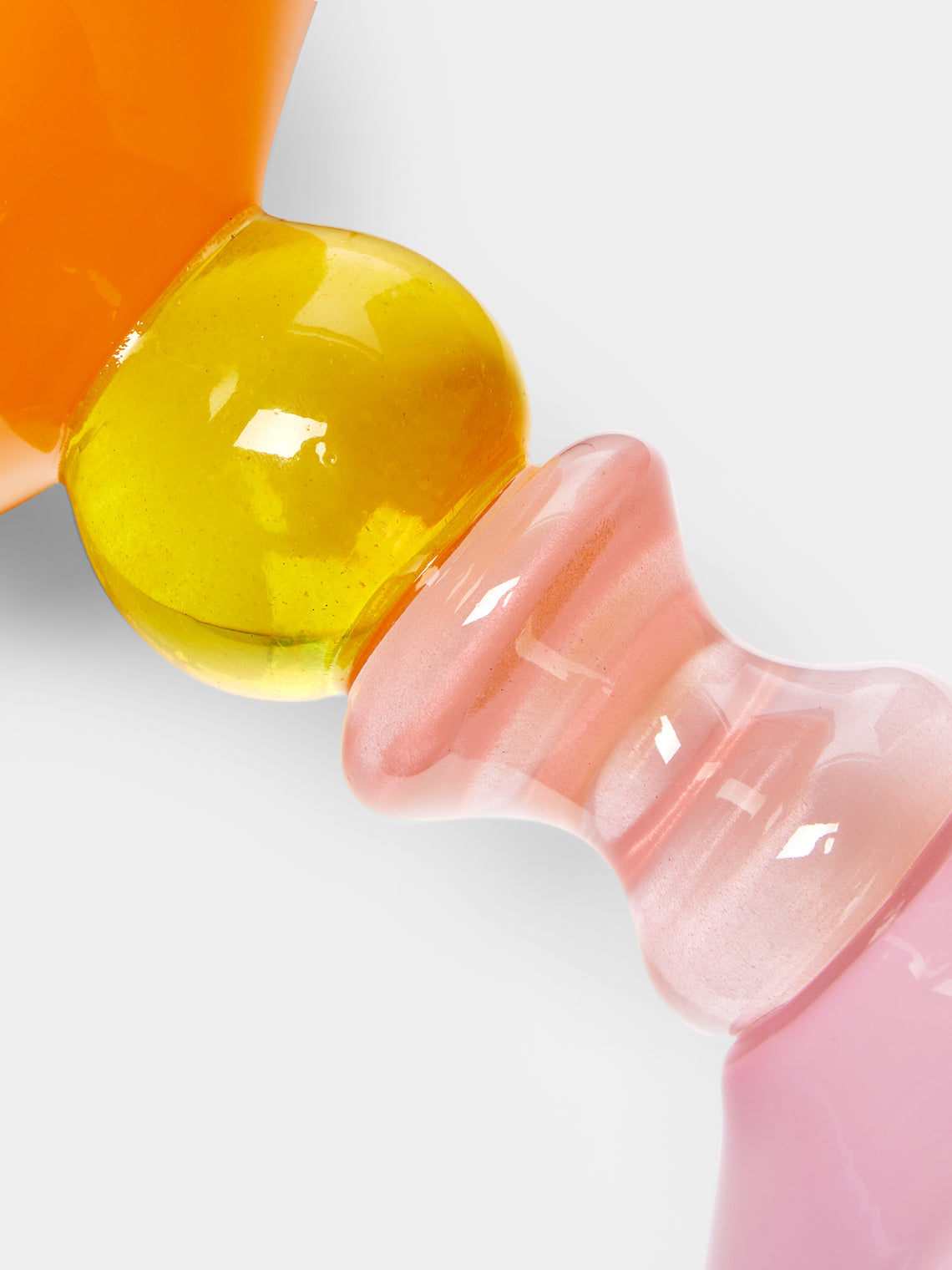 Before launching Gather in early 2020, Phoebe Stubbs worked part-time in the glass industry for around 13 years. During this time, she honed her expertise on the subject, specialising in everything from the act of hand-blowing to the science behind it. She works from her London-based studio where she takes inspiration from specific cultural moments – such as the ceramic tableware spotted in Dutch still life paintings – and repurposes them via a modern-day lens through candy-shop colour palettes and exaggerated details.