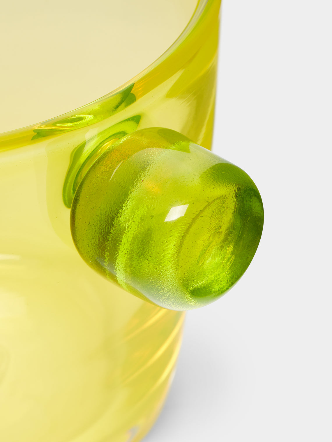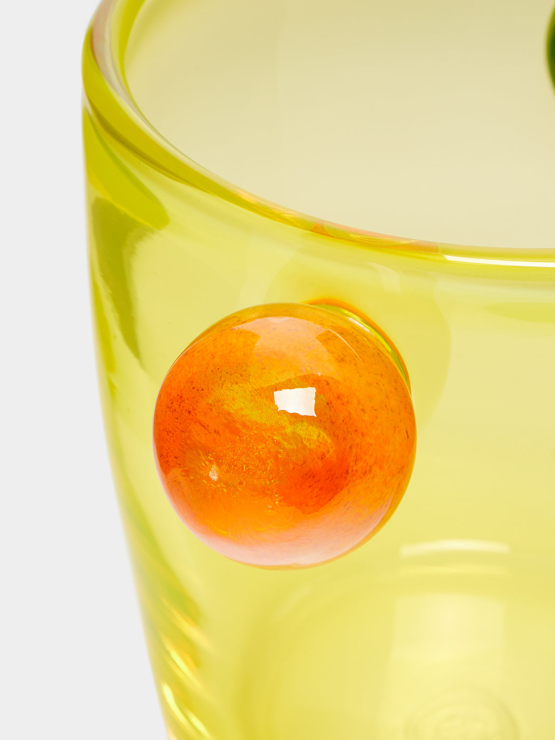 Before launching Gather in early 2020, Phoebe Stubbs worked part-time in the glass industry for around 13 years. During this time, she honed her expertise on the subject, specialising in everything from the act of hand-blowing to the science behind it. She works from her London-based studio where she takes inspiration from specific cultural moments – such as the ceramic tableware spotted in Dutch still life paintings – and repurposes them via a modern-day lens through candy-shop colour palettes and exaggerated details.