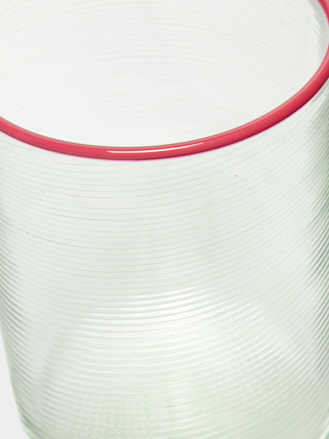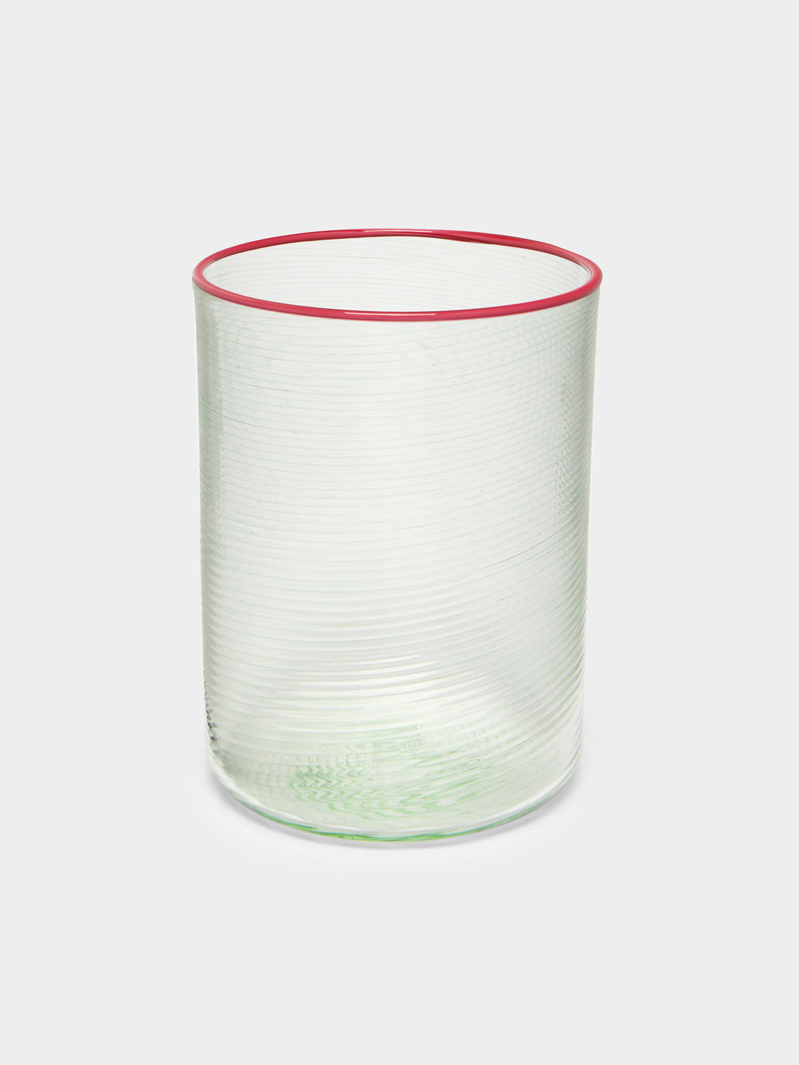 Giberto creates watercolour sketches of his designs on tracing paper, then passes them onto skilled Murano glassmakers. The Julia tumbler is hand-blown and finished in a Venetian furnace using Murano glass and a rigà-menà technique to create a teardrop effect.