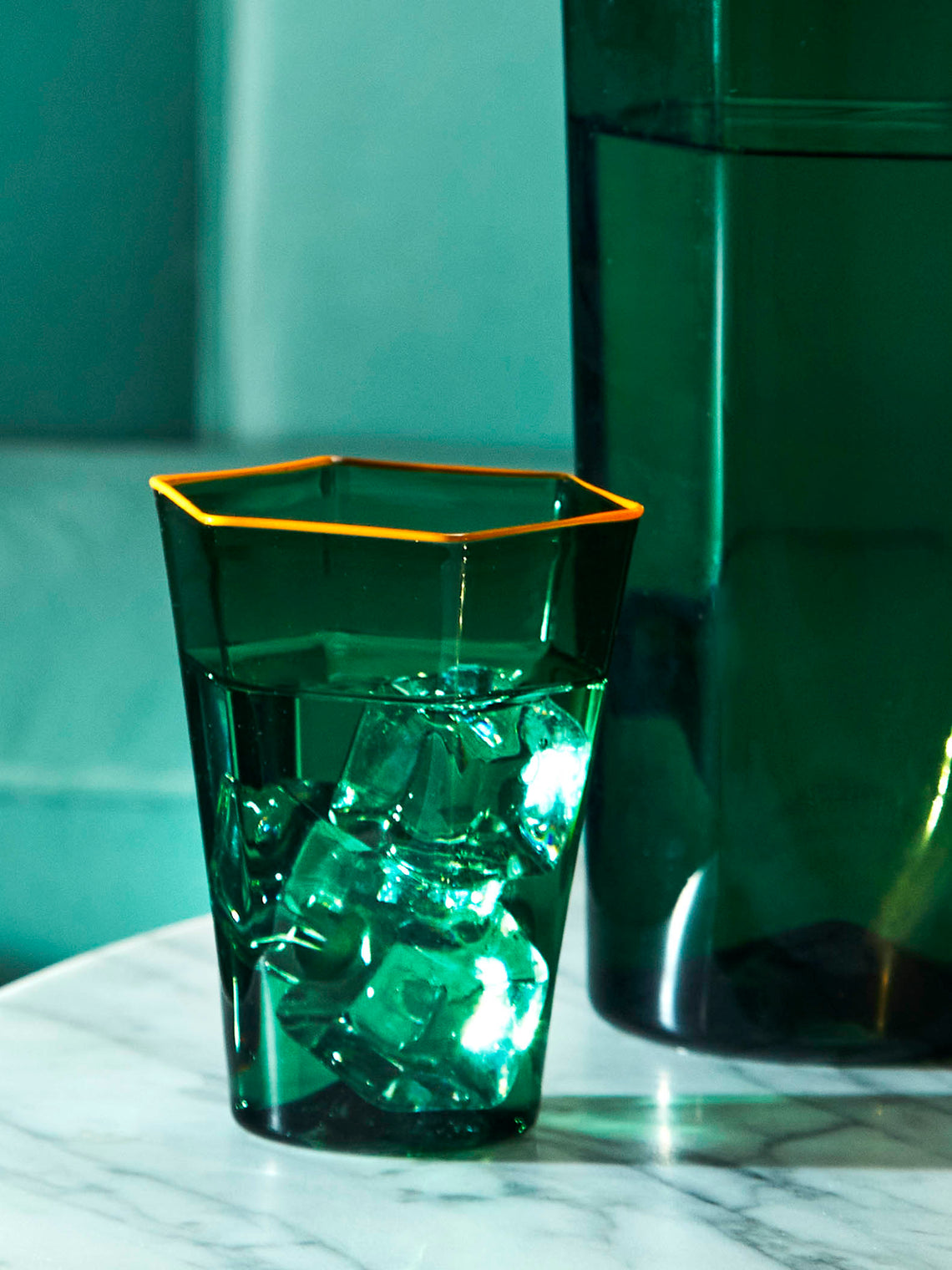 Giberto creates watercolour sketches of his designs on tracing paper, then passes them onto skilled Murano glassmakers. The Julia tumbler is hand-blown and finished in a Venetian furnace using Murano glass and a rigà-menà technique to create a teardrop effect.