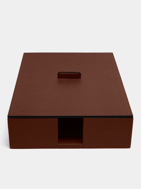 Giorgio Bagnara’s collection of handcrafted leather homeware nods to his Genoese family’s leather-making traditions from 1939. The founder of leather houses, Rabitti 1969 and Riviere, employs both hand-stitching and modern technologies to achieve artisanal excellence and great precision. From shagreen to natural calfskin leather, Giobagnara has over 200 dyed leathers, plus an inimitable collection of maple, oak and walnut wood.