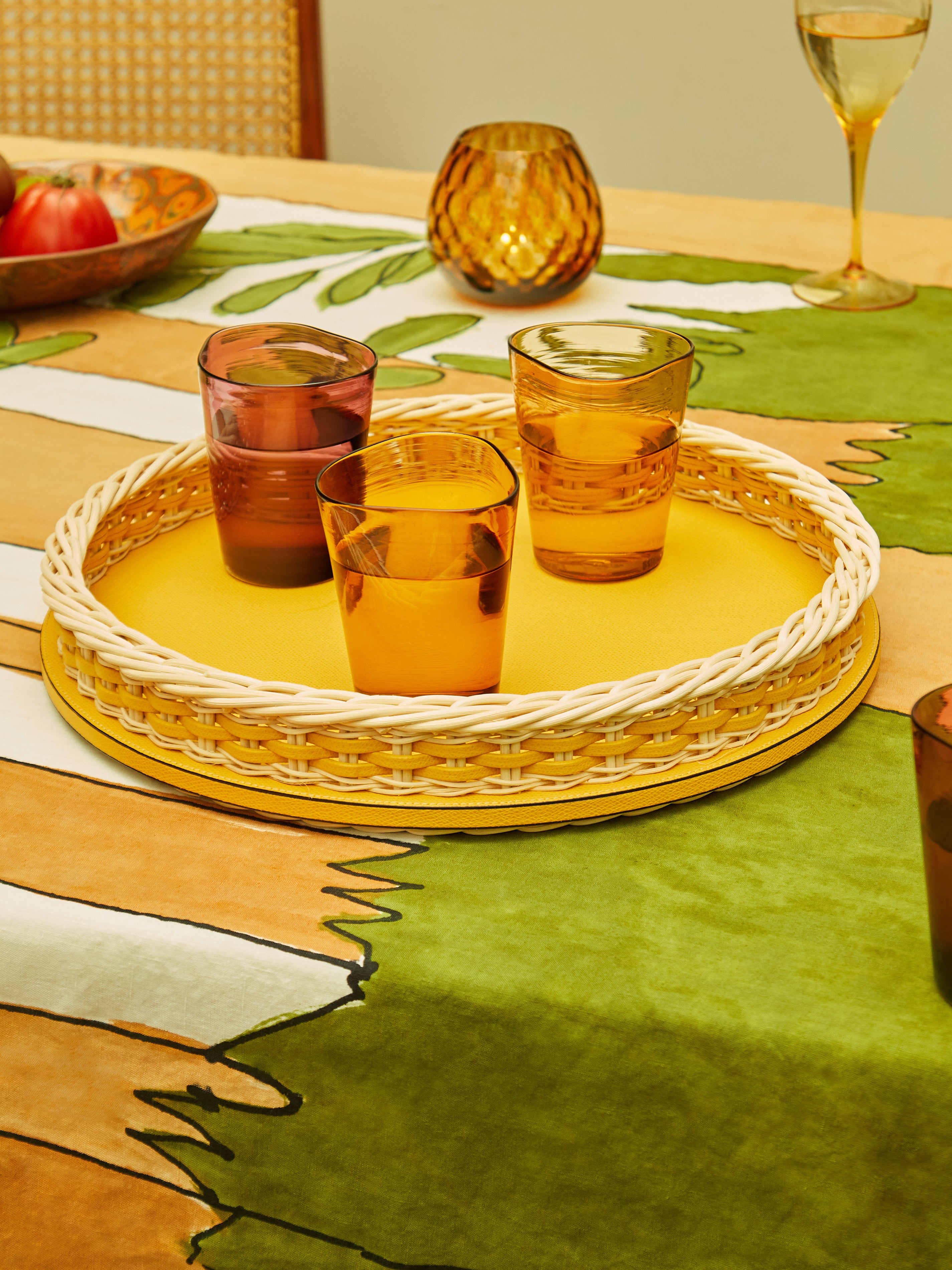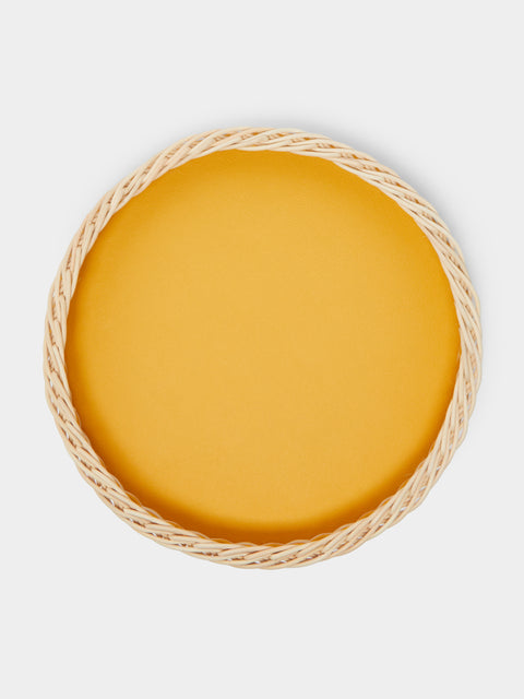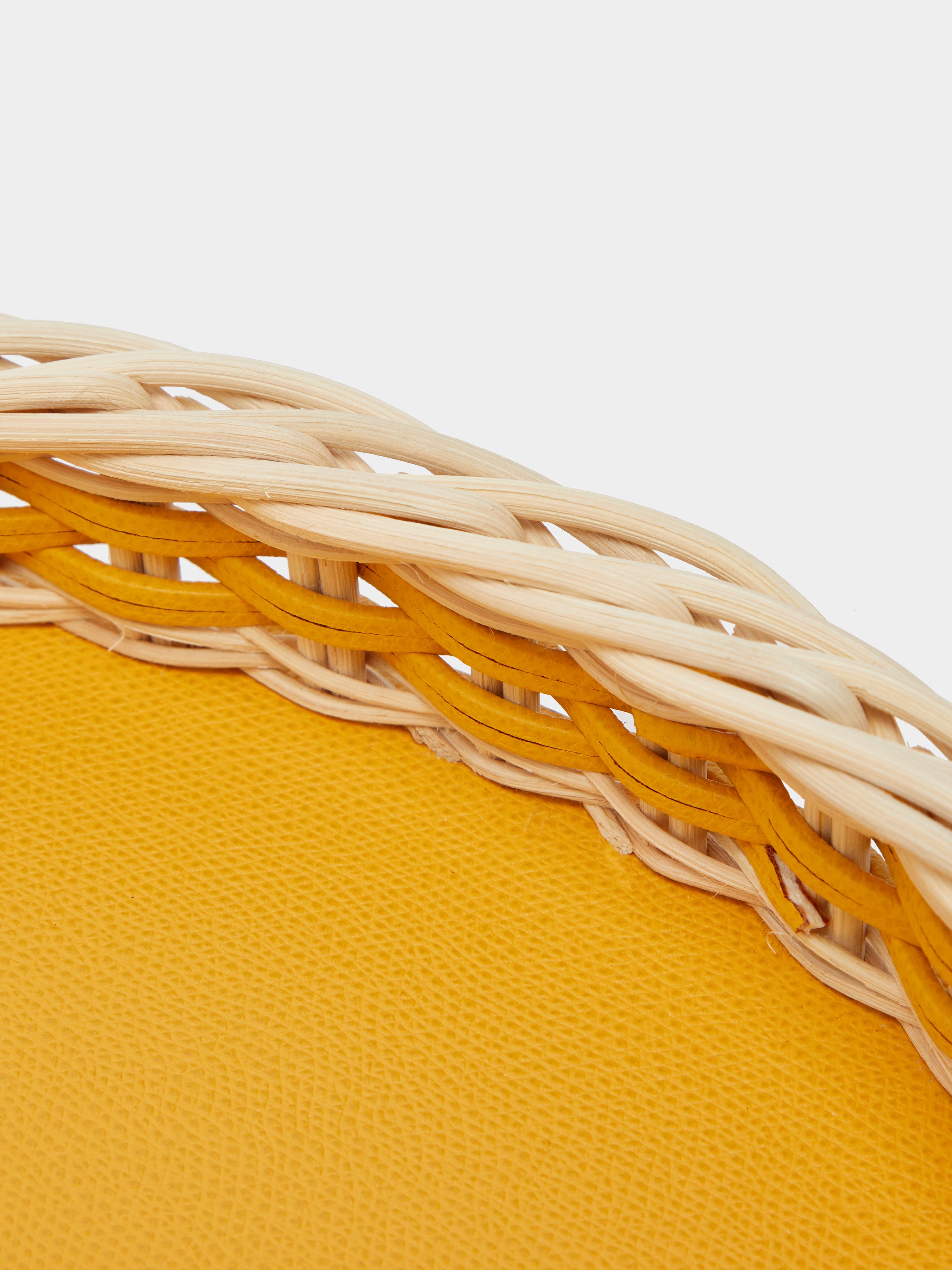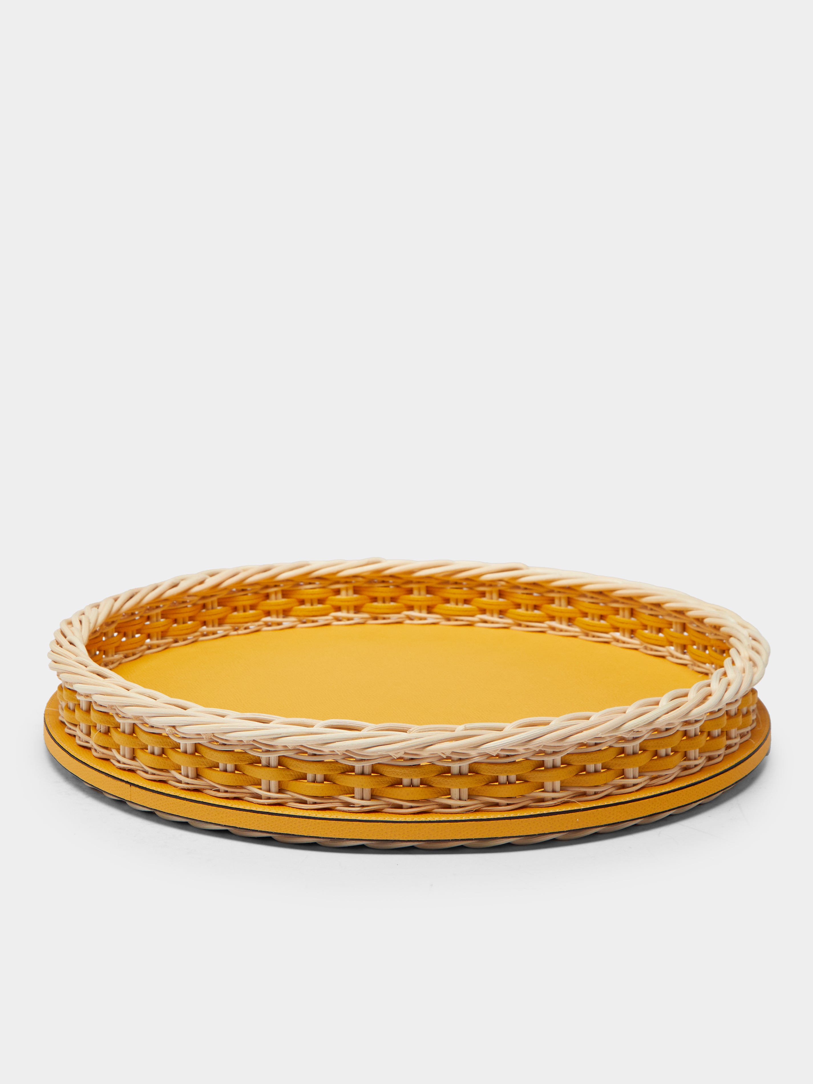 Pigment France Orsay Leather and Rattan Round Tray (14.5in/37cm)