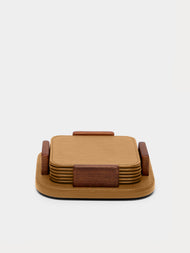 Giobagnara Leather and Walnut Coasters with Holder (Set of 6)