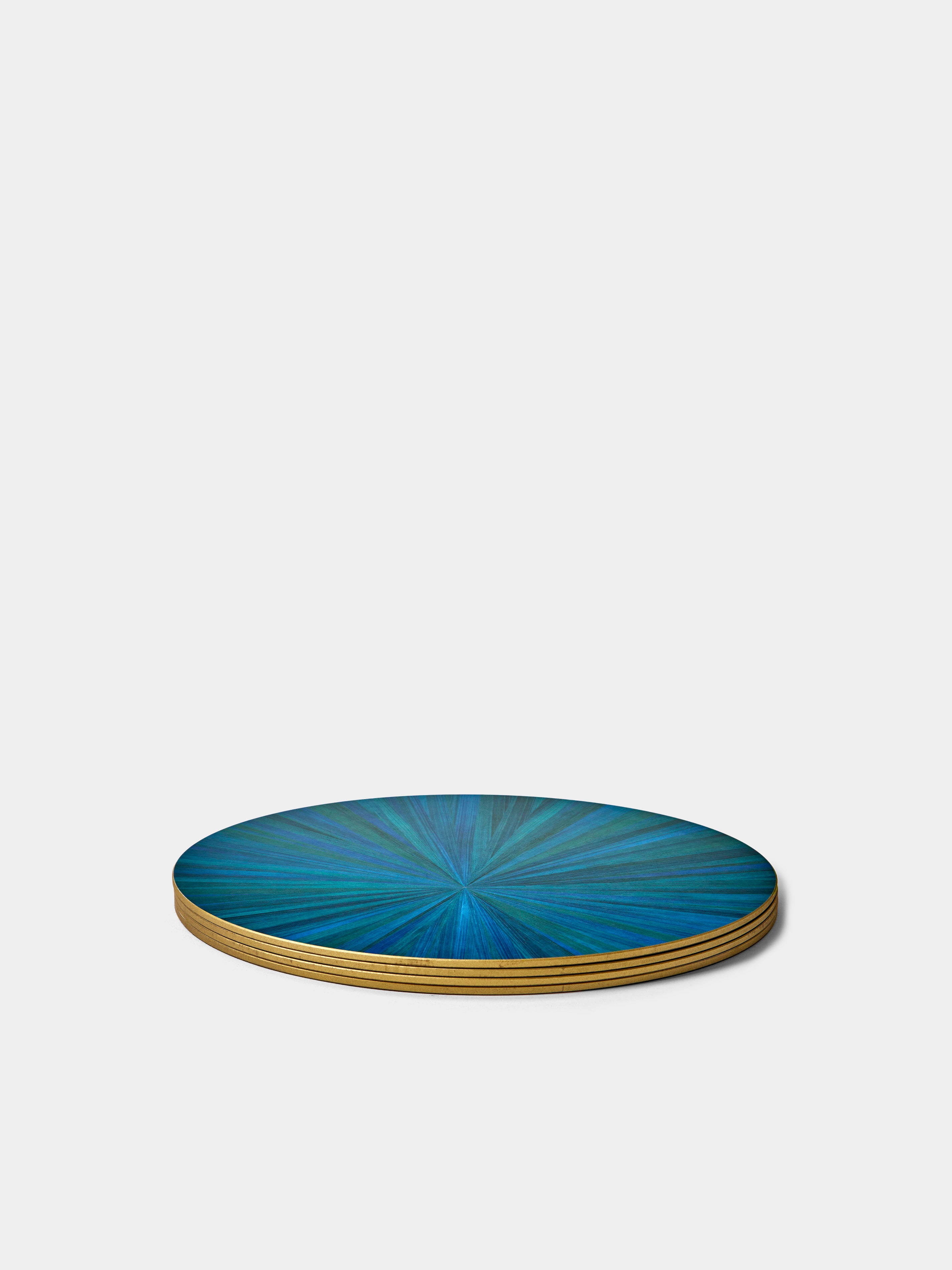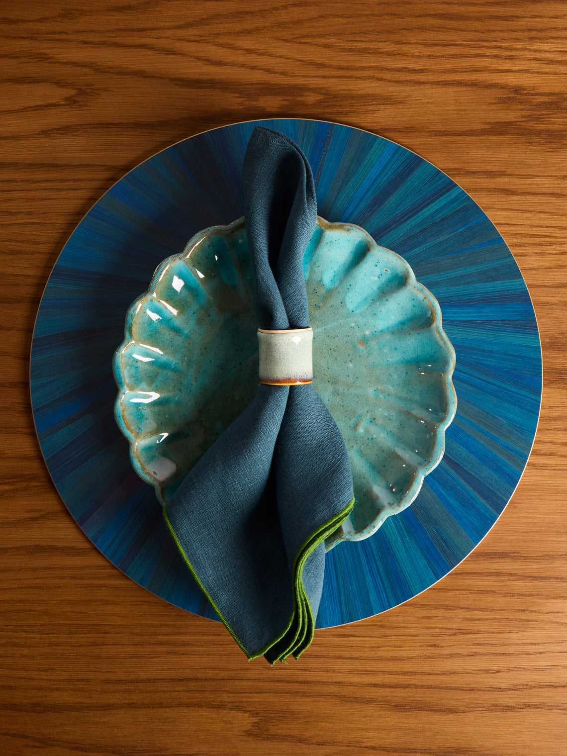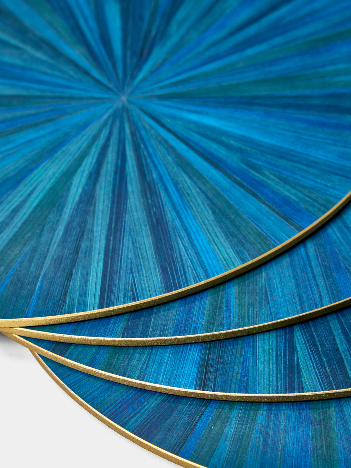 Named for the Greek goddess of hearth and home, UK-based HestiaLiving conjures collections inspired by Ateliers Lison de Caunes’ storied straw marquetry. Age-old techniques are given a modern spell—digitally woven onto wood in kaleidoscopic bursts of color. Set the stage with the Soleil placemats, a luminous sunburst designed to make your table glow.