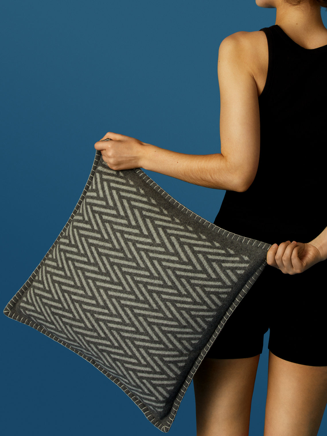 Johnstons of Elgin Herringbone Jacquard Wool Cushion (19.5in/50cm)