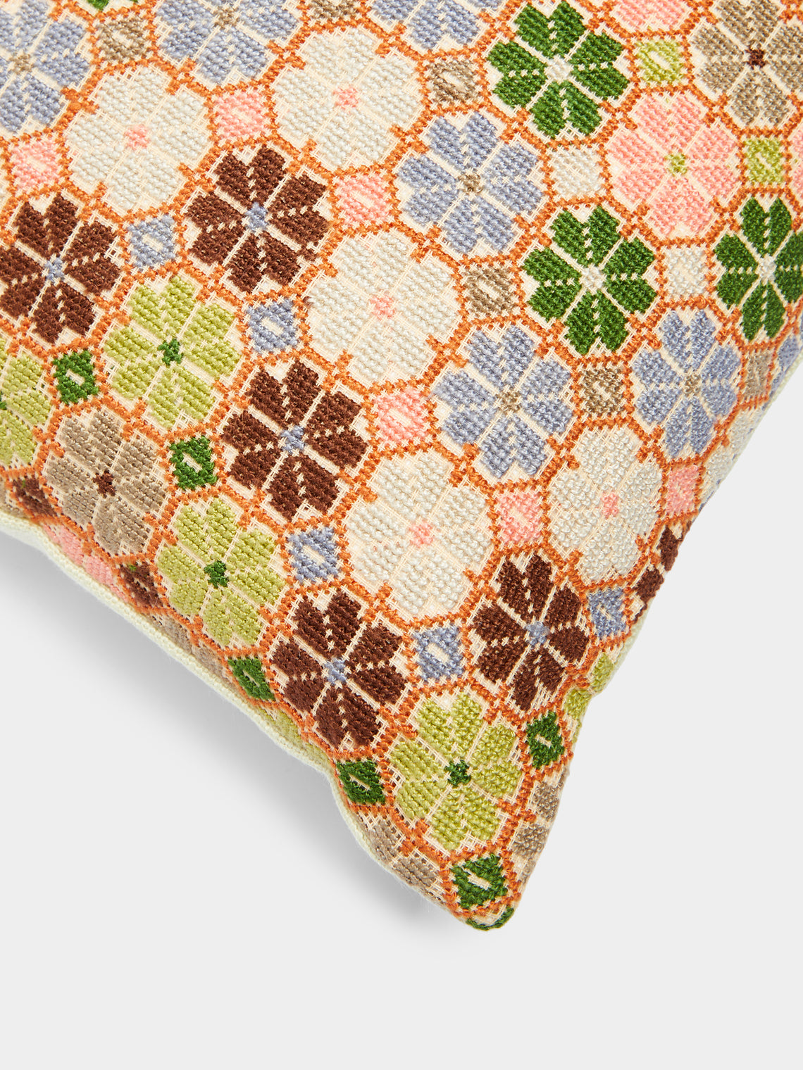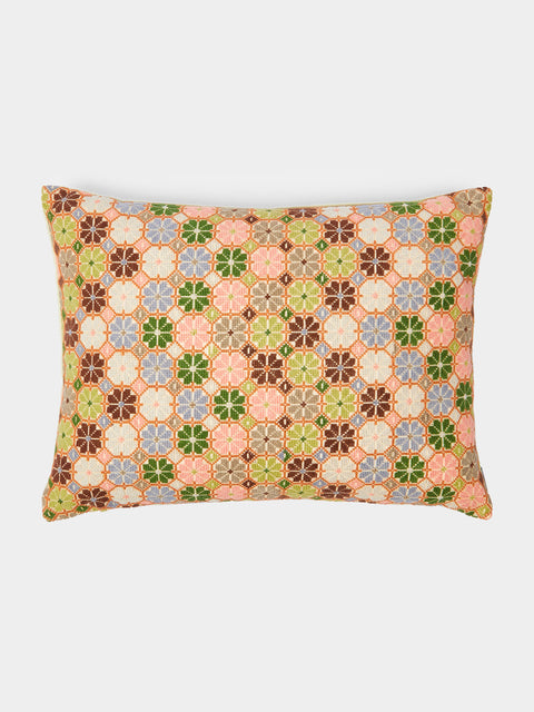 Kissweh Damask Rose Hand-Embroidered Cotton Cushion (15.5in/40cm)