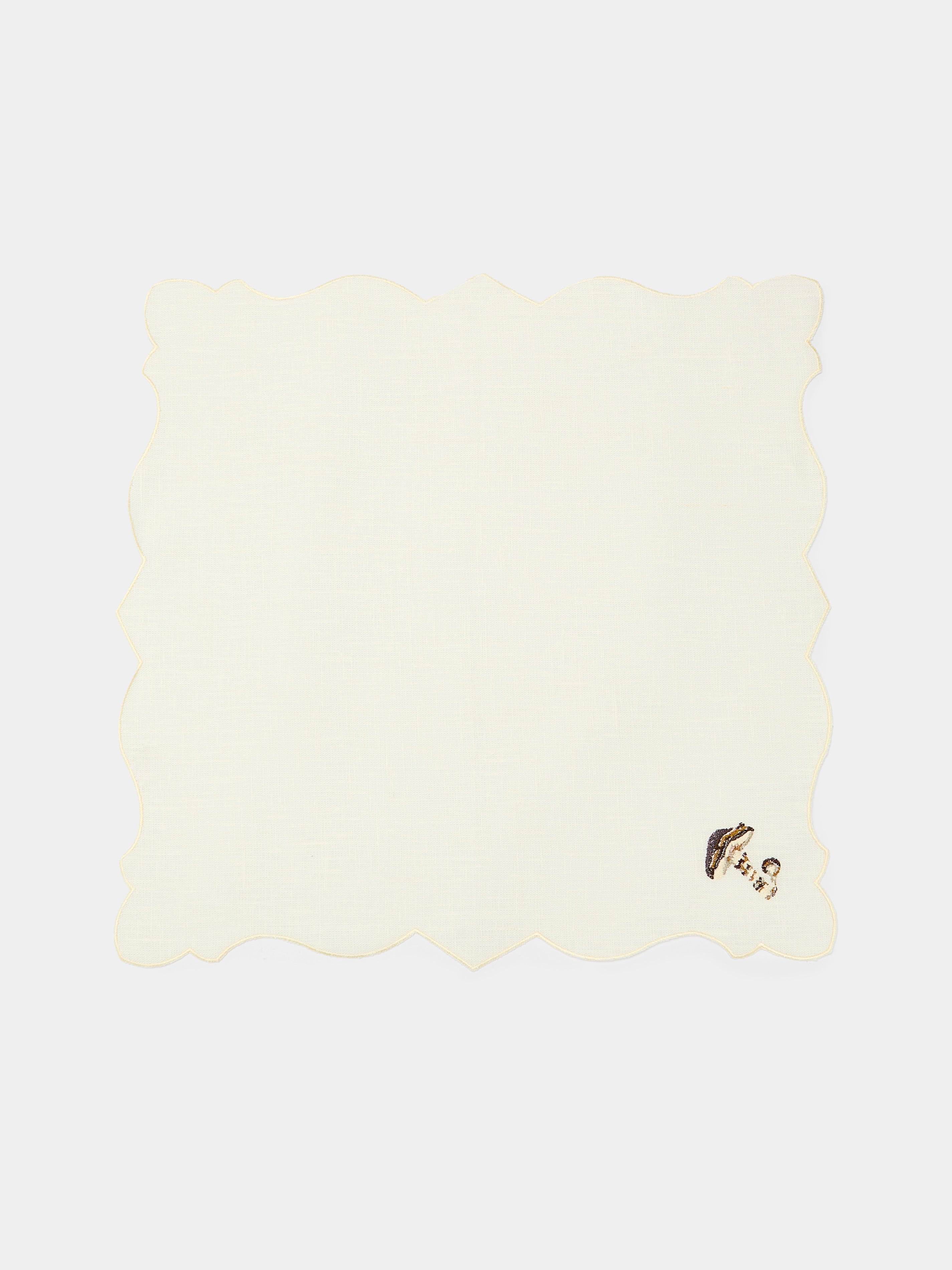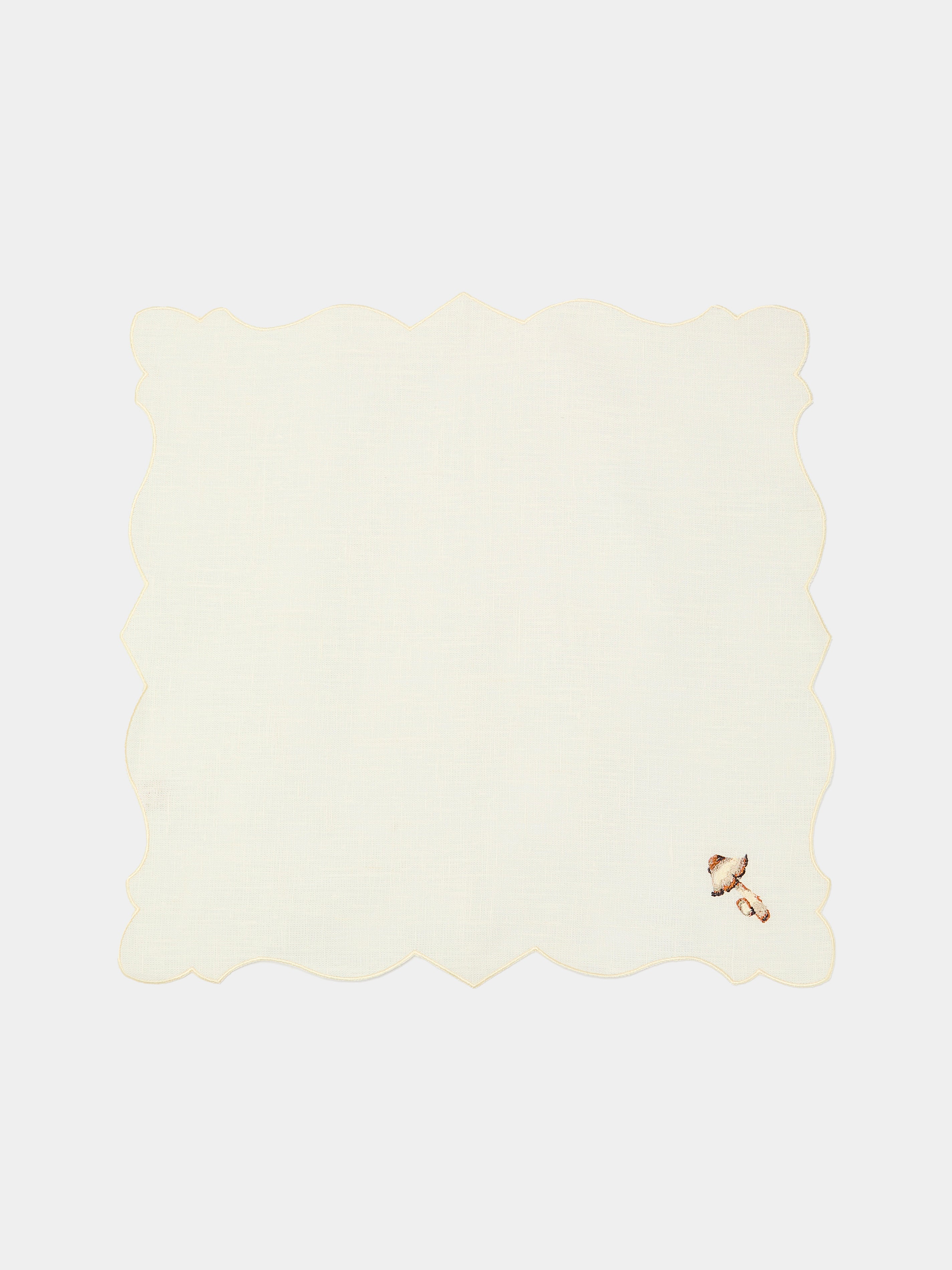 Angelina Mushrooms Embroidered Linen Cocktail Napkins (Set of 4)16cm (w) x 16cm (l) / 6.3" (w) x 6.3" (l)