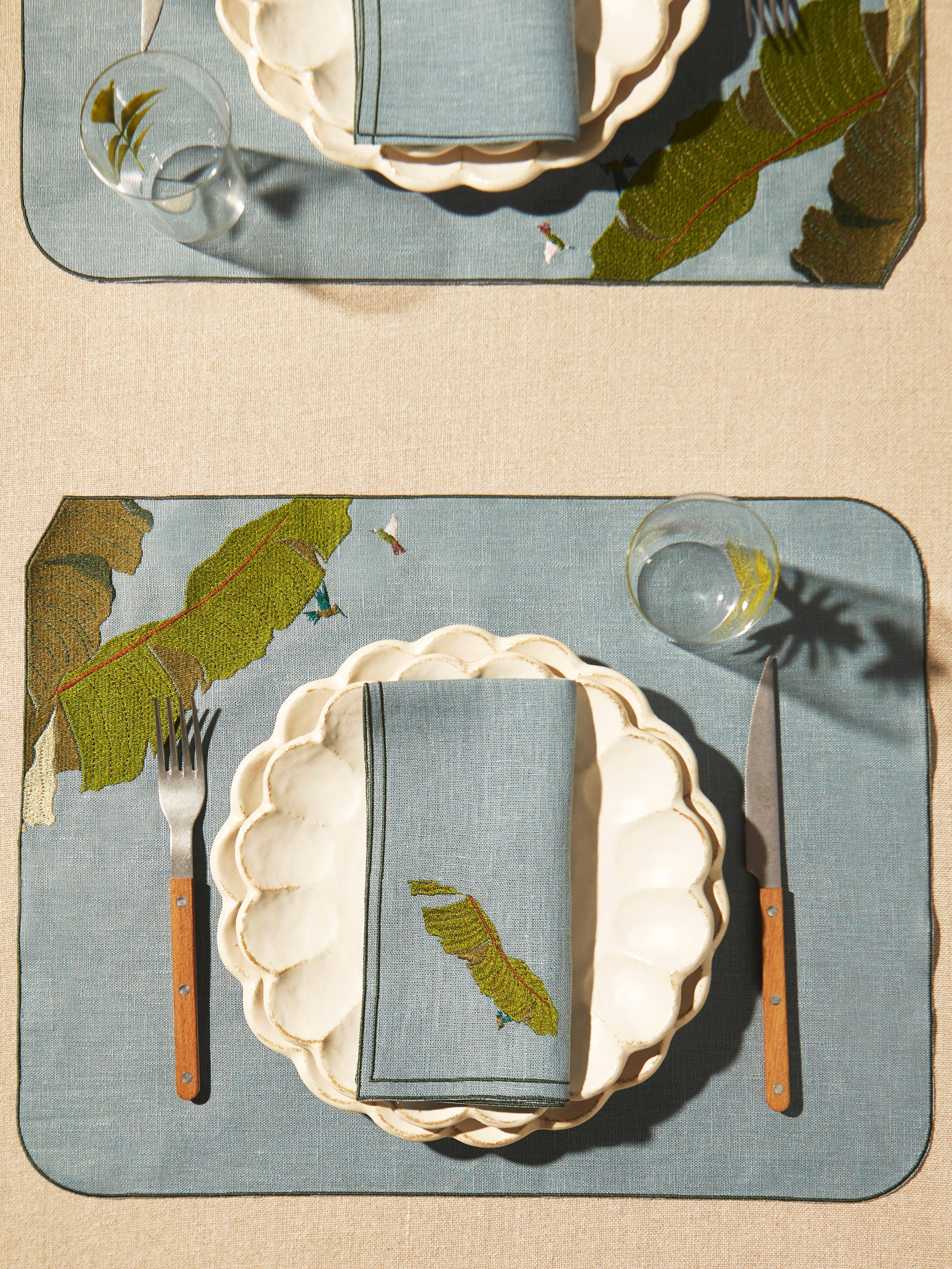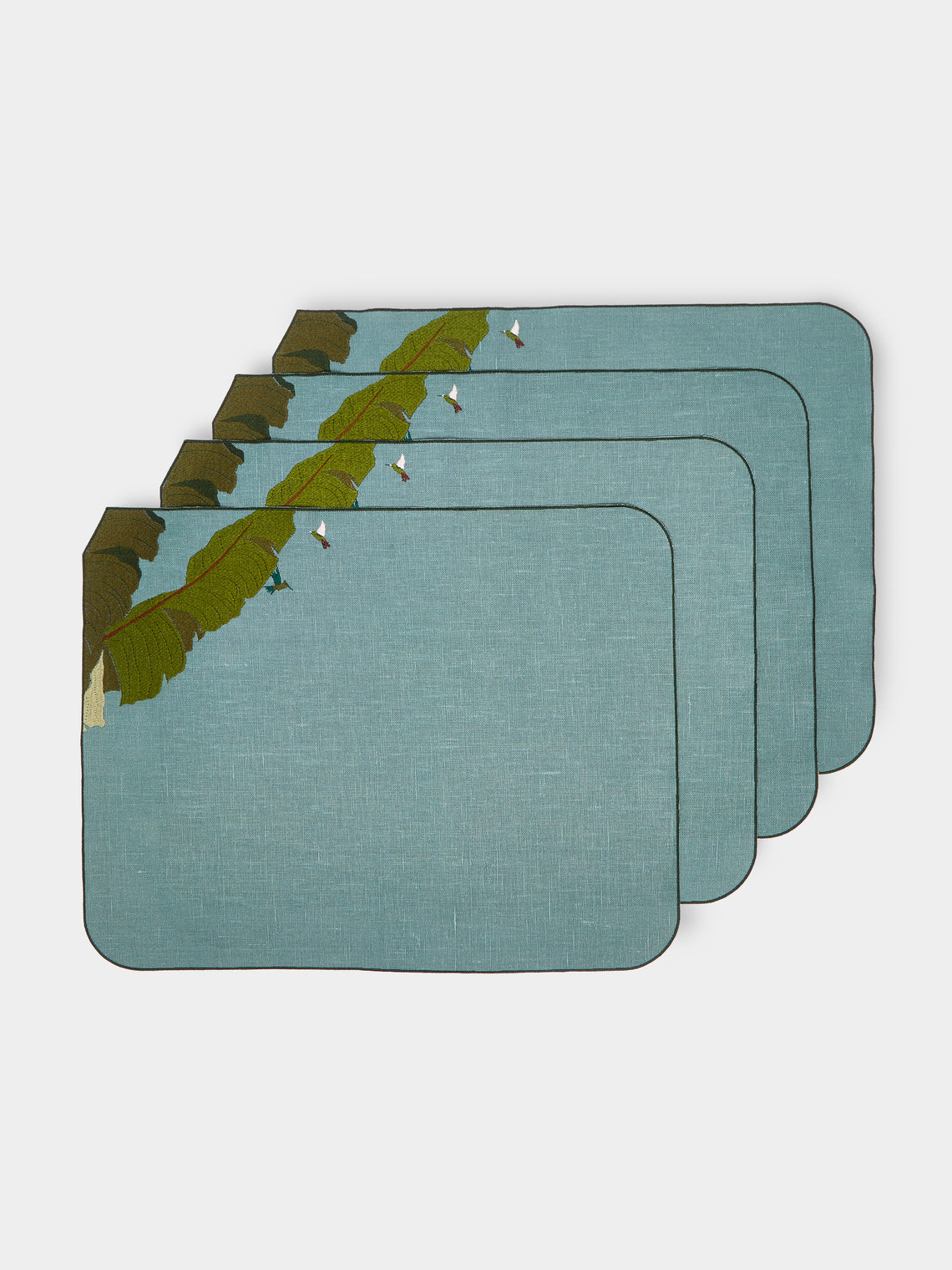 La Gallina Matta Banana Embroidered Linen Placemats (Set of 4)