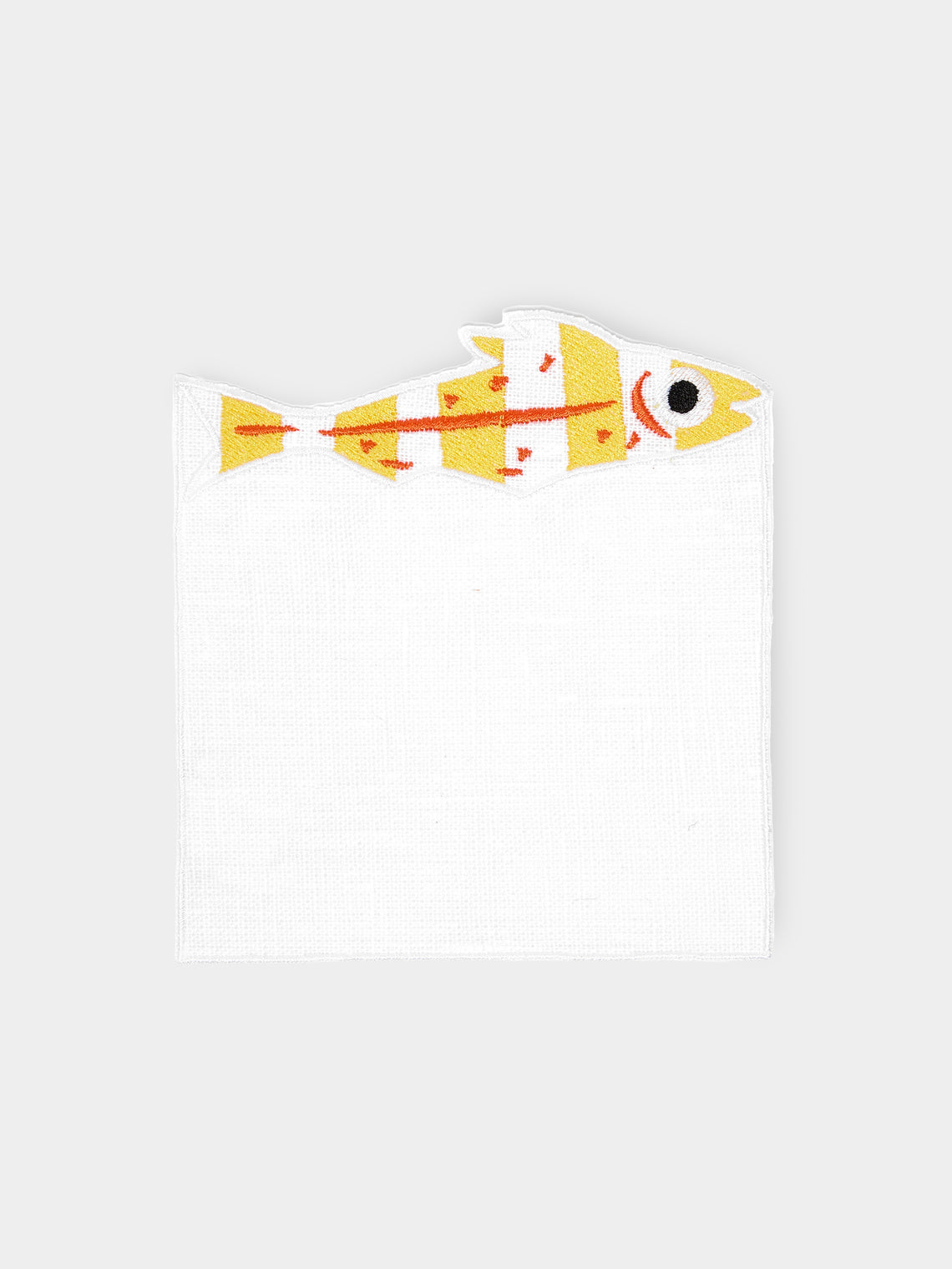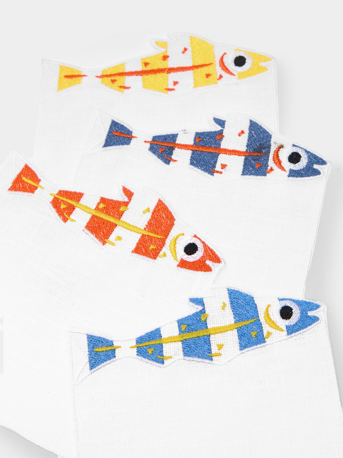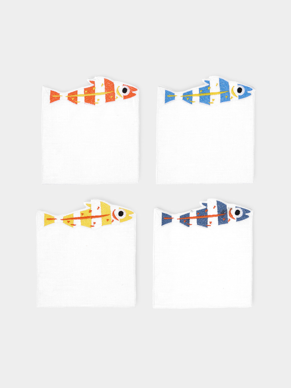 La Gallina Matta Sardines Embroidered Linen Cocktail Napkins (Set of 4)