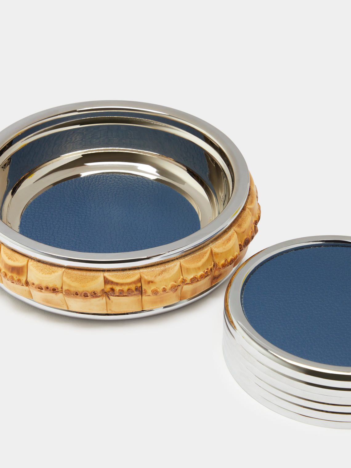 Lorenzi Milano Leather Coasters with Bamboo Holder (Set of 6)
