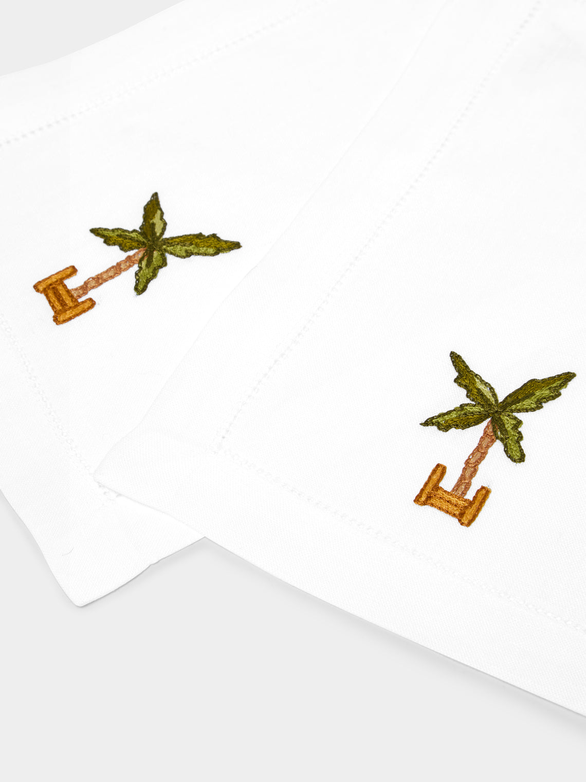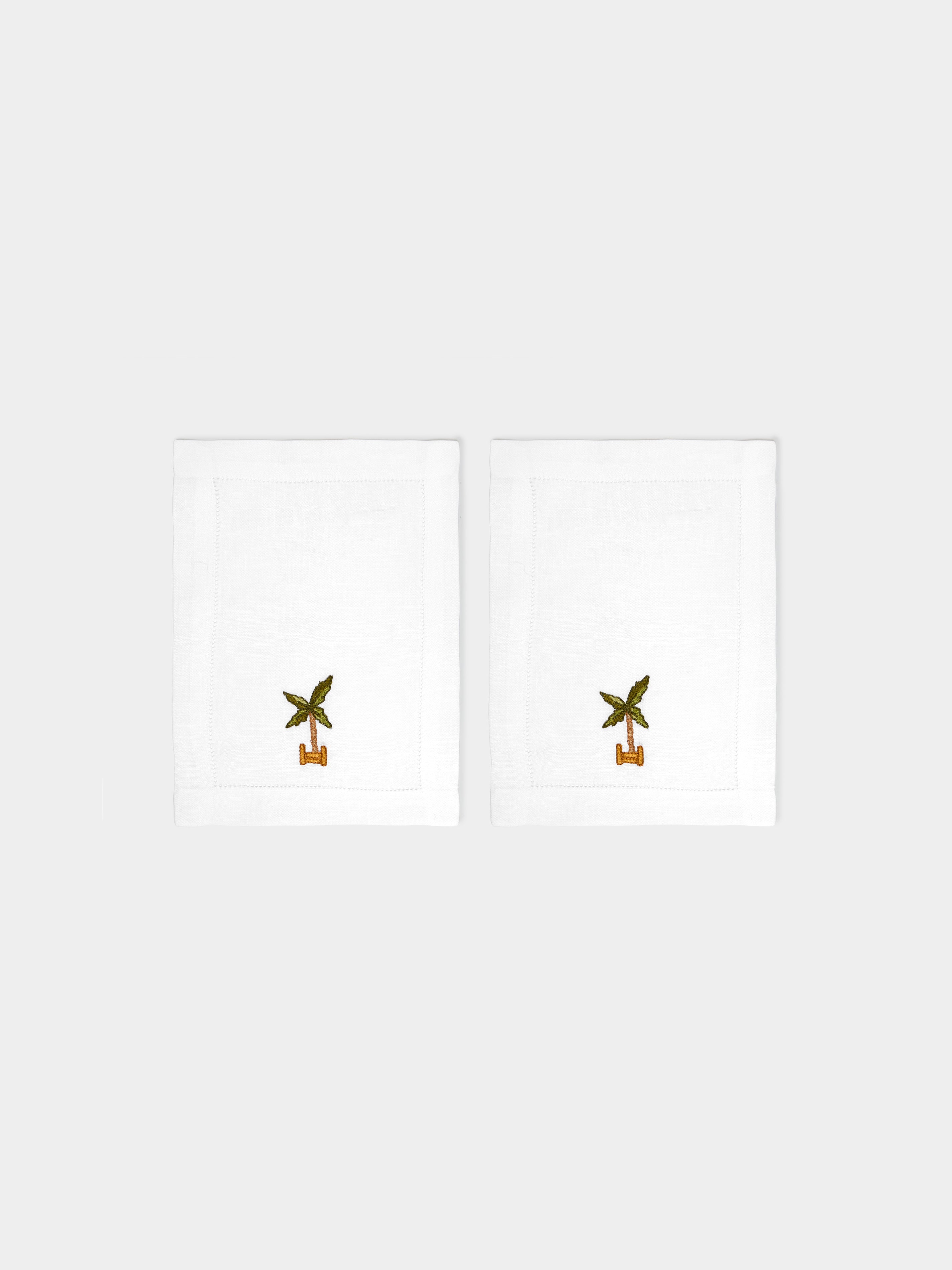 Loretta Caponi Palm Tree Hand-Embroidered Linen Cocktail Napkins (Set of 6)