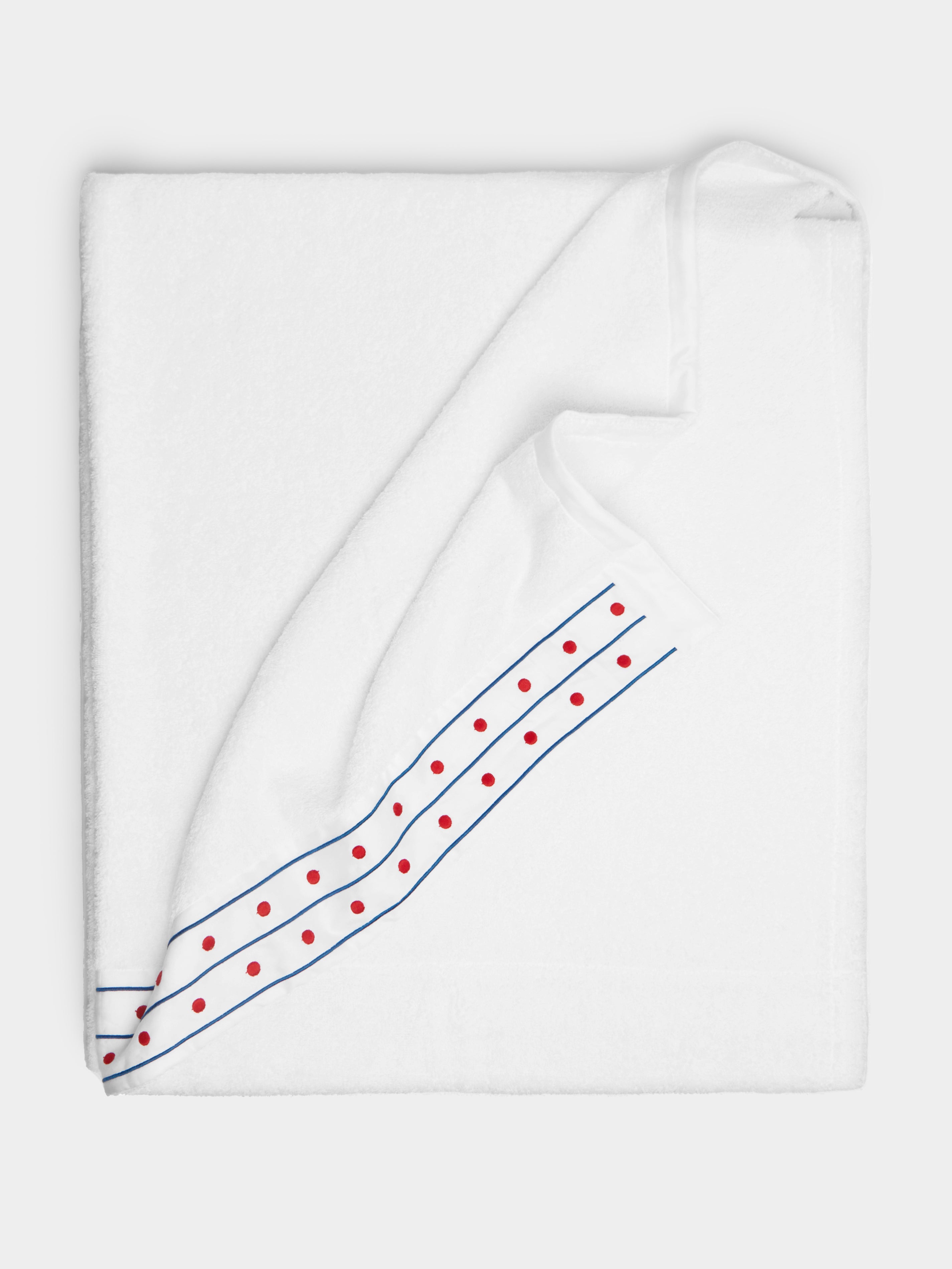Stripes & Dots Hand-Embroidered Cotton Bath Towel75cm (l) x 148cm (w) / 29.3" (l) x 57.8" (w)