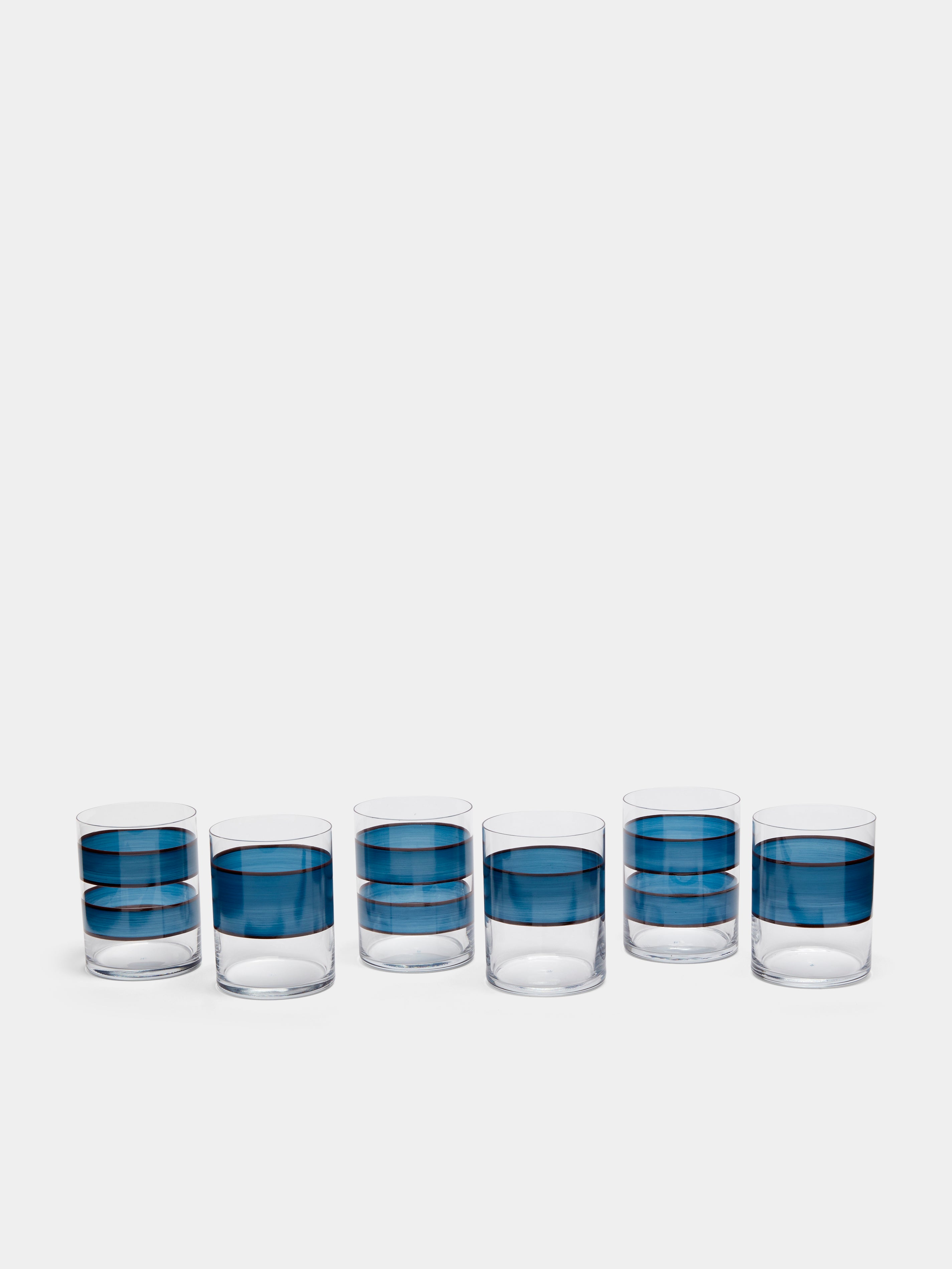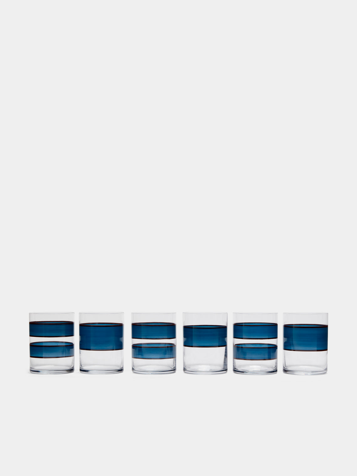 Los Vasos De Agua Clara Wahaka Stripe Hand-Painted Glass Tumblers (Set of 6)